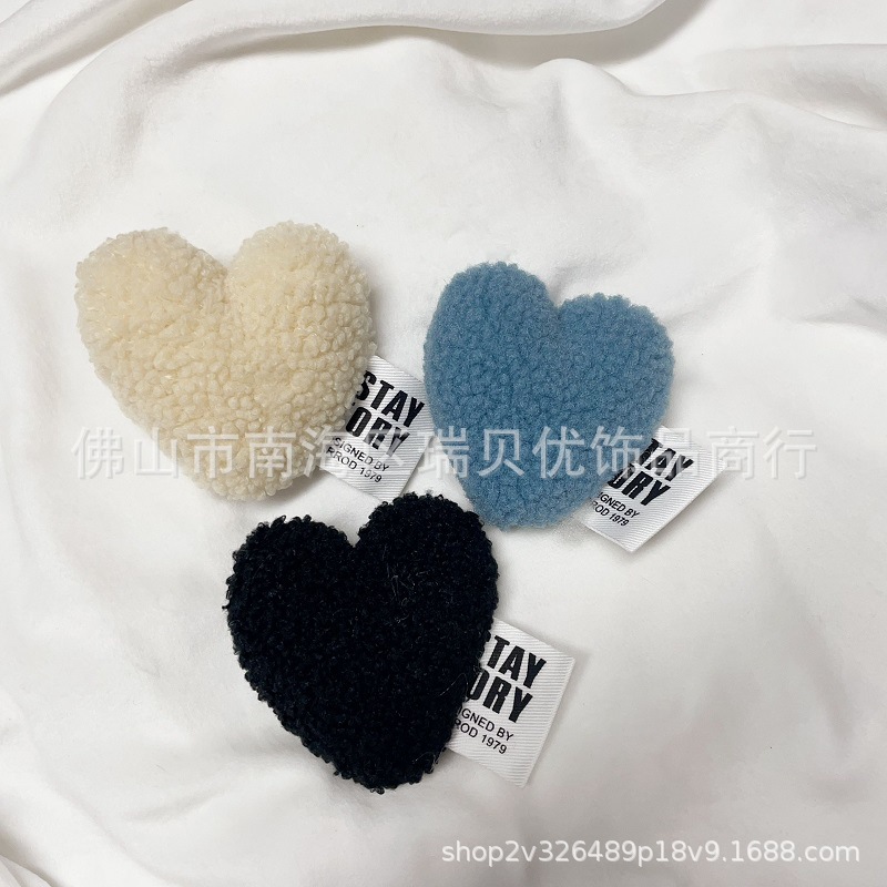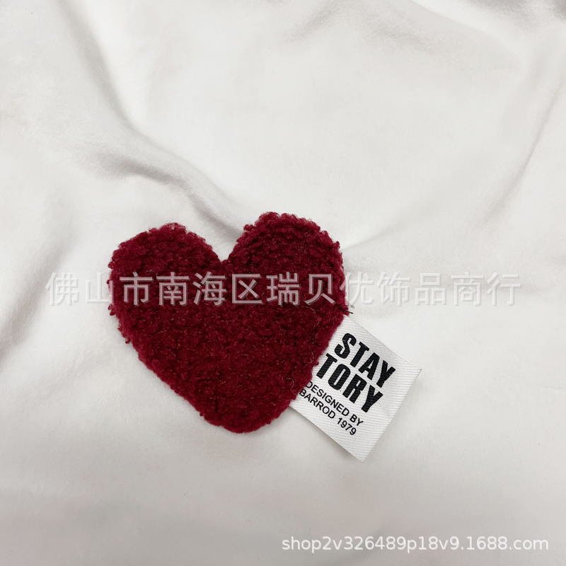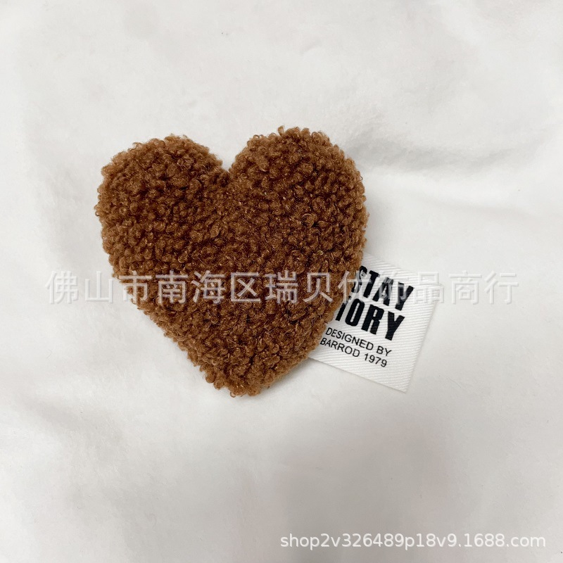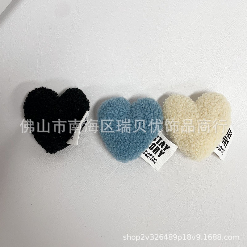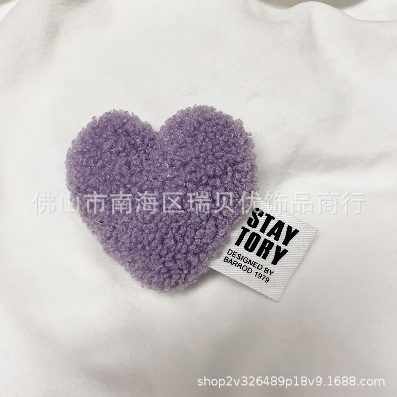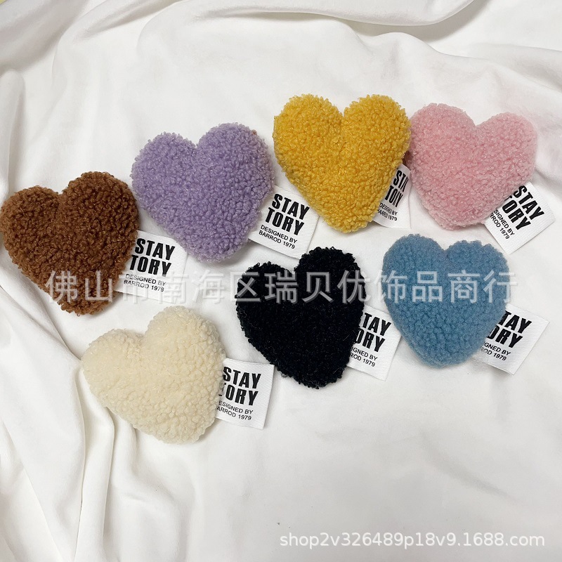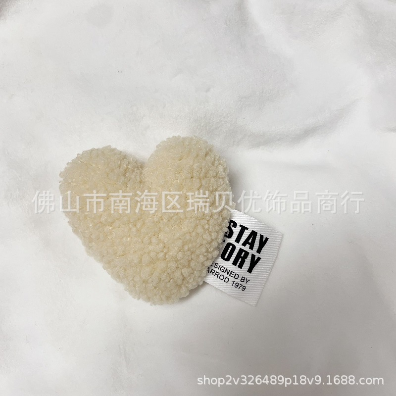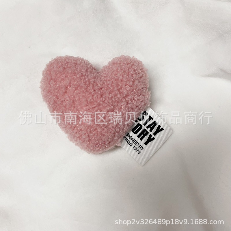 新款秋冬羊羔毛毛绒配件商标桃心饰品配饰潮鞋潮包潮袜潮毛爱心形