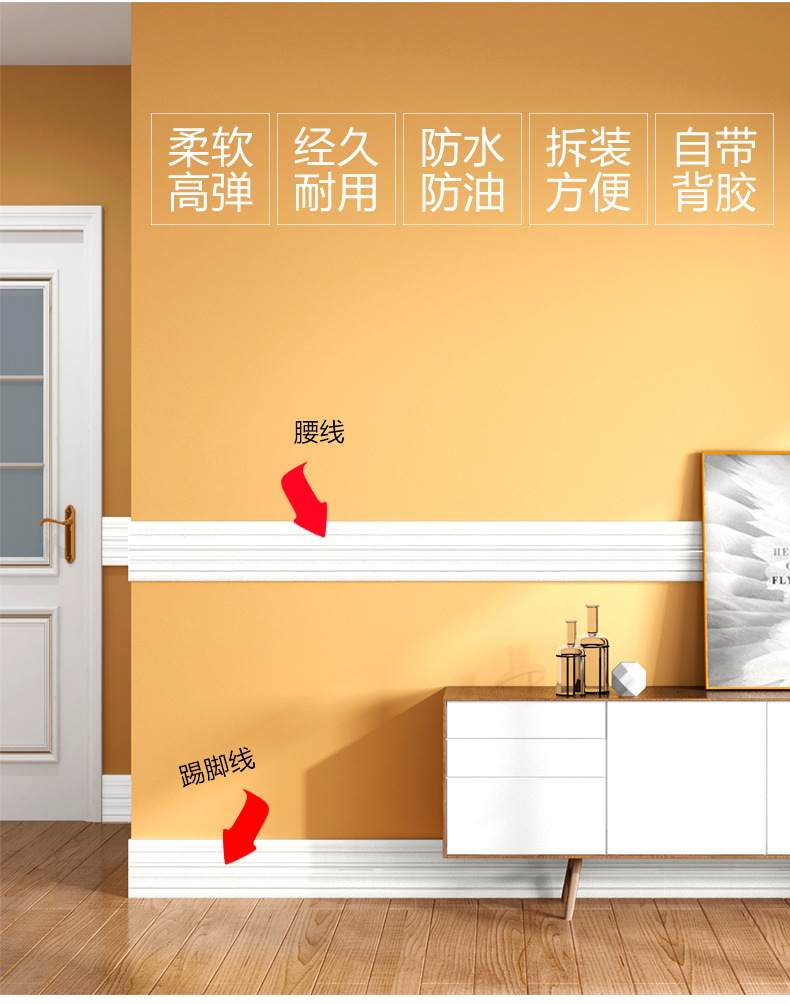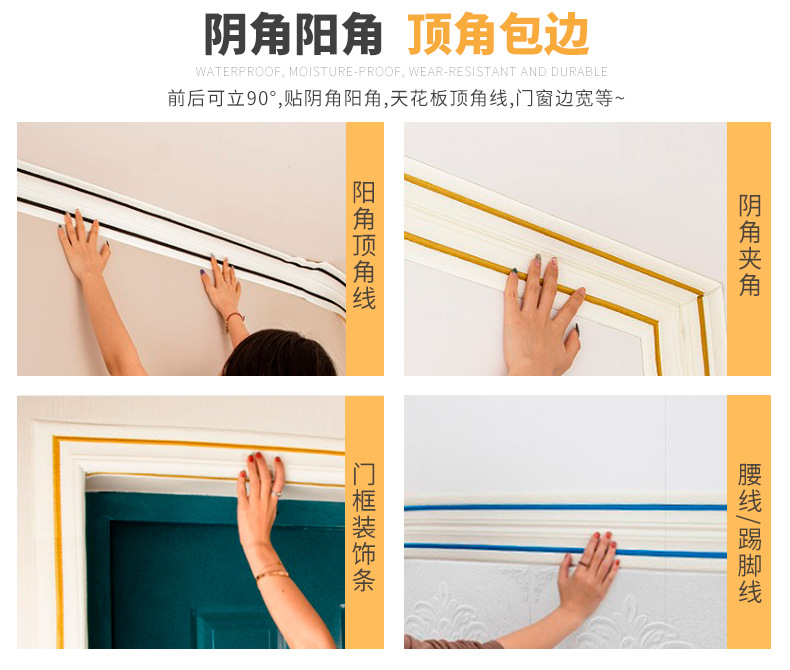 跨境自粘墙纸顶角线墙贴围边框踢脚线装饰贴纸防水阴阳角线防撞条