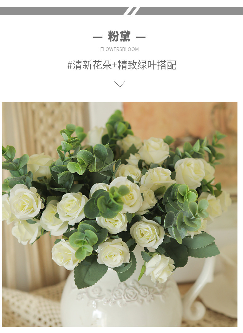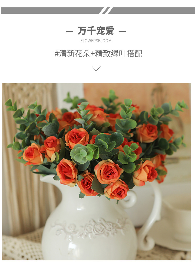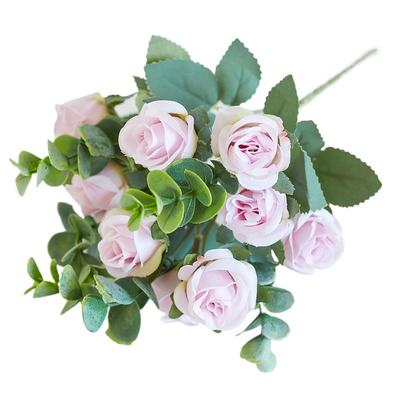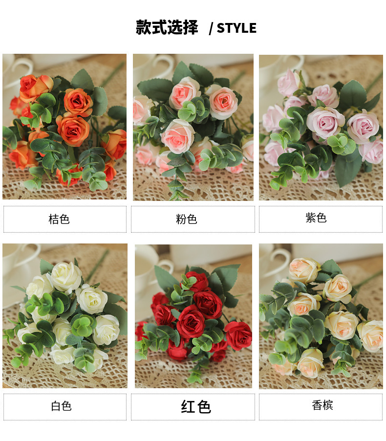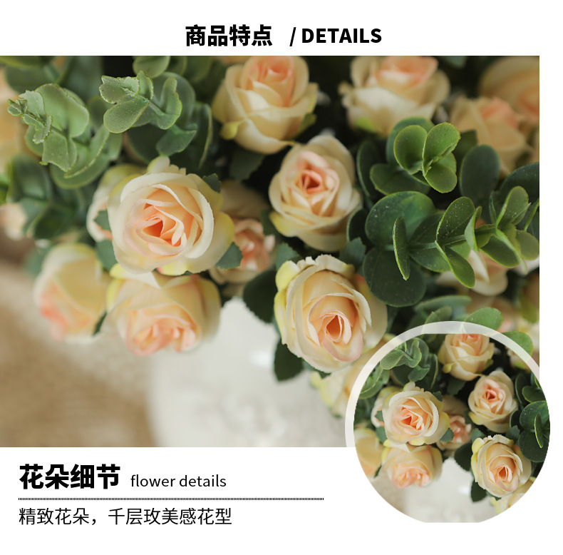 仿真花尤加利玲珑玫假花餐桌小玫瑰绢花小把蔷薇酒店装饰花批发