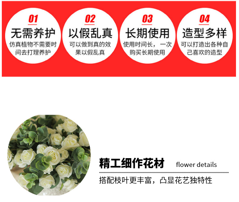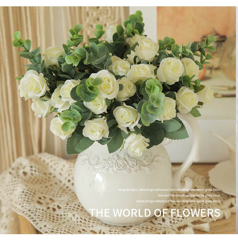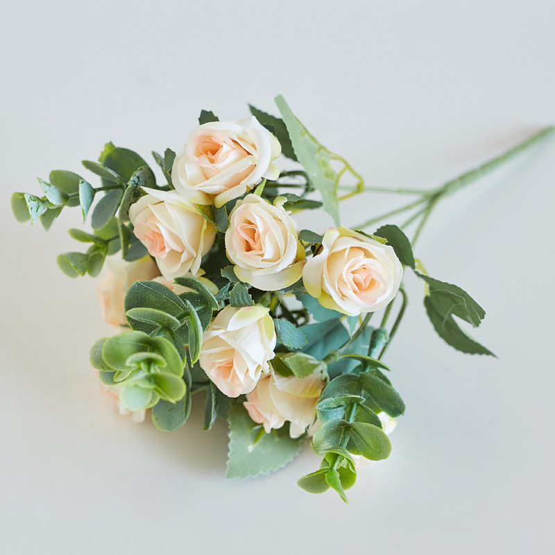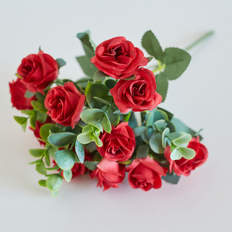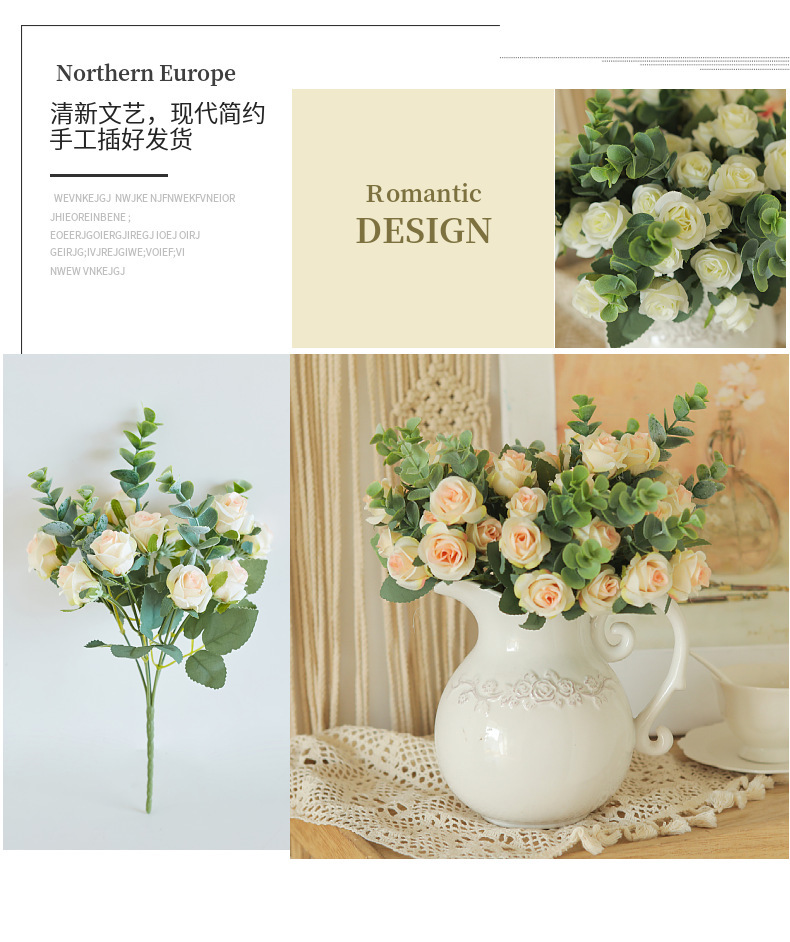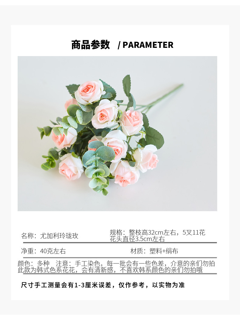仿真花尤加利玲珑玫假花餐桌小玫瑰绢花小把蔷薇酒店装饰花批发