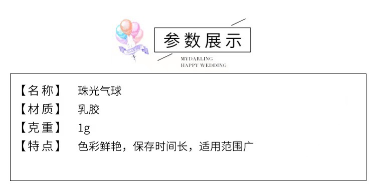 5寸1克珠光气球结婚装饰生日派对混色小气球地爆网格用加厚小气球