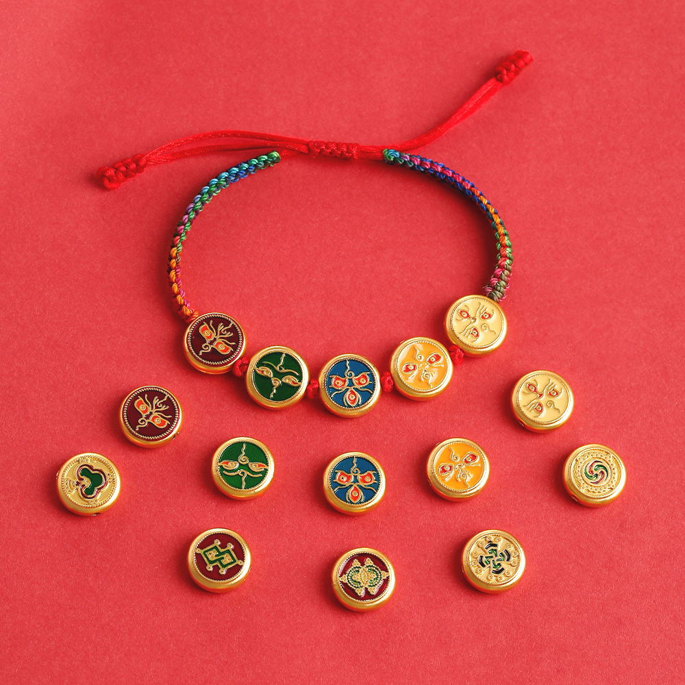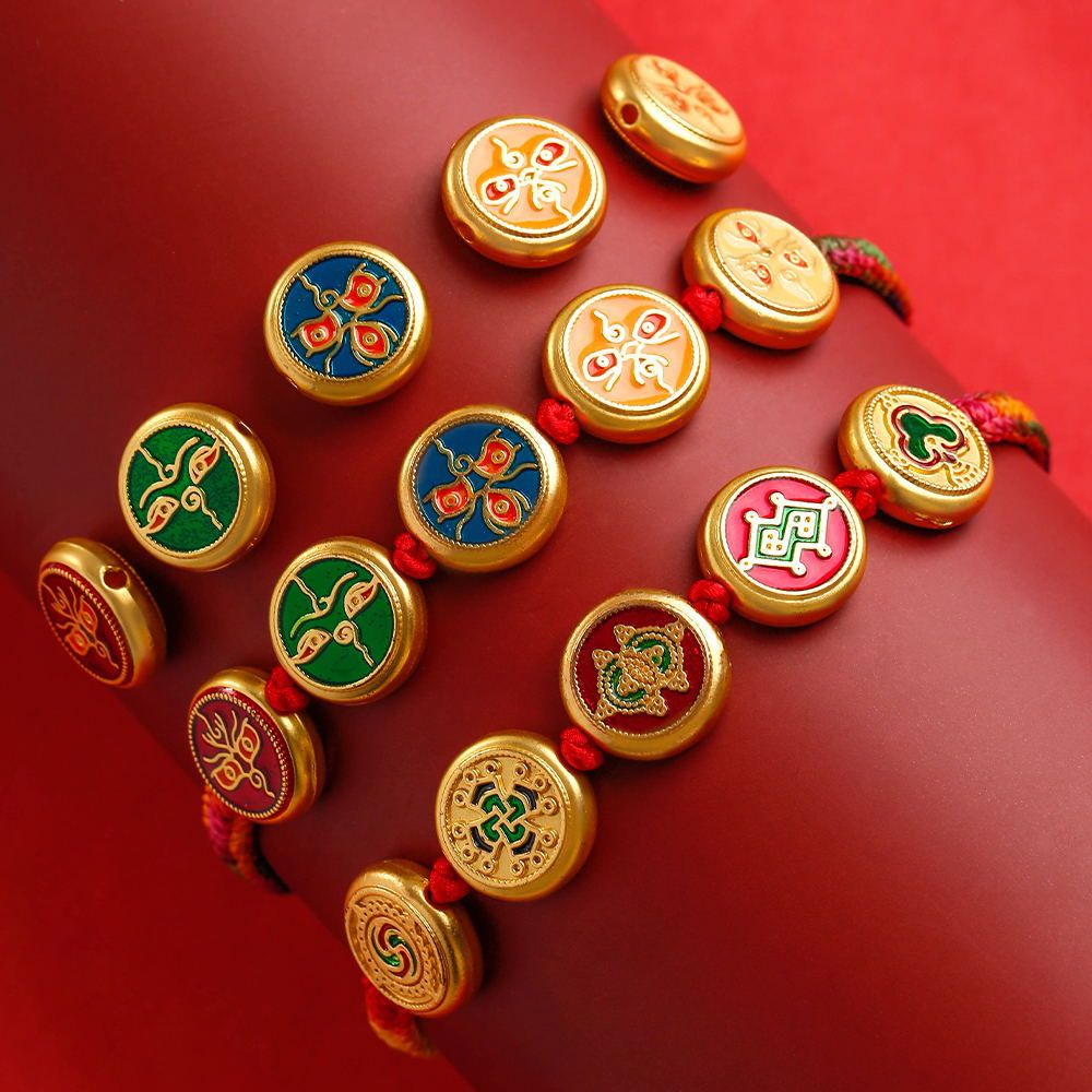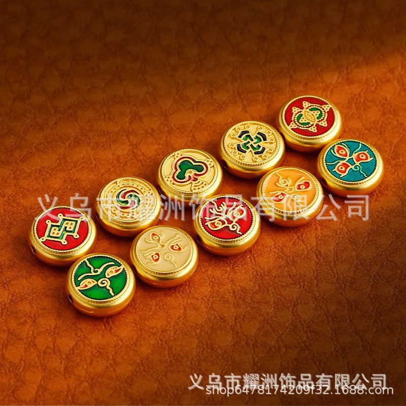 古法保色金五路财神隔珠配饰手工编织diy唐卡扎基拉姆手串配件