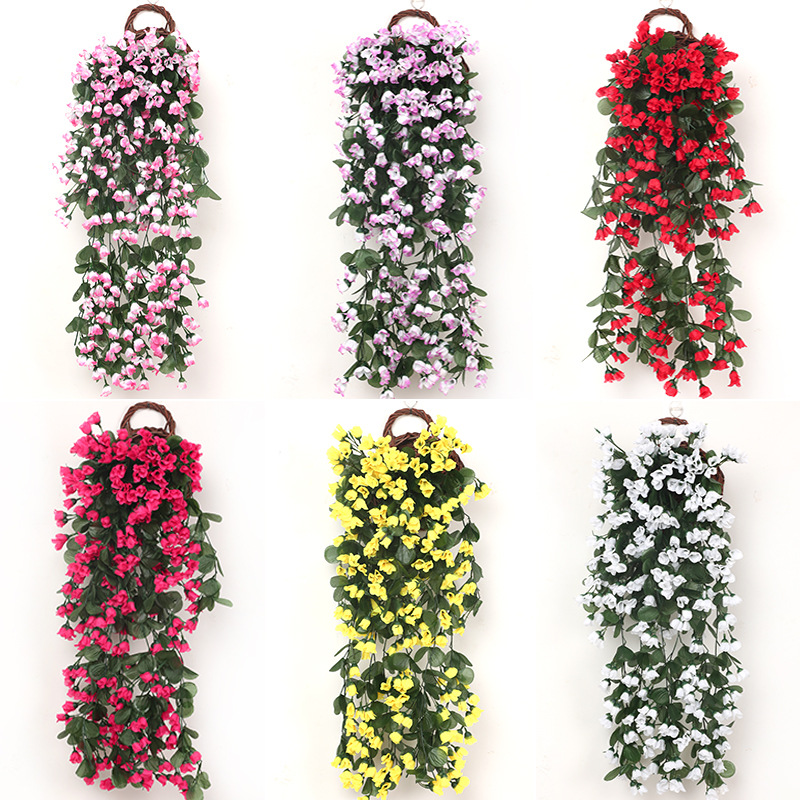 仿真花紫罗兰 挂花藤布置 墙壁挂 吊篮花客厅阳台家居装饰壁挂花