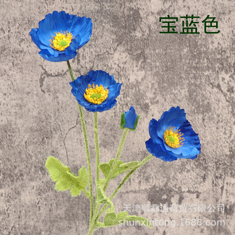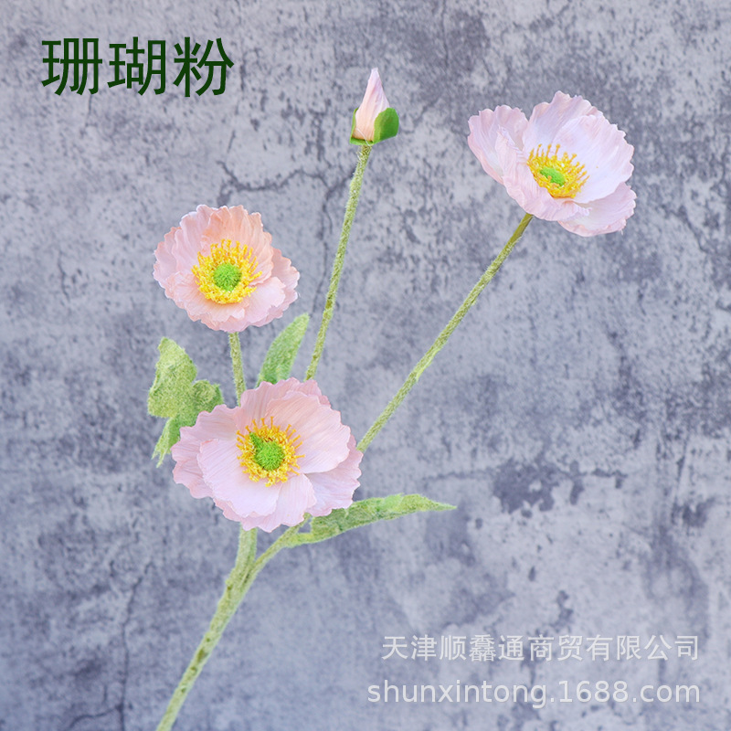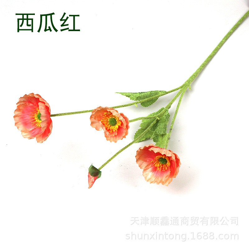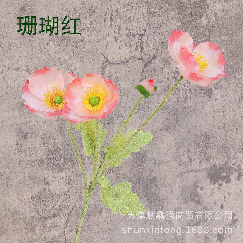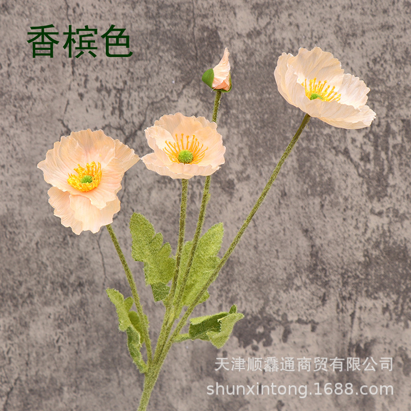 仿真植绒虞美人绢花婚礼会场装饰路引花店插花小罂粟春色清新花艺