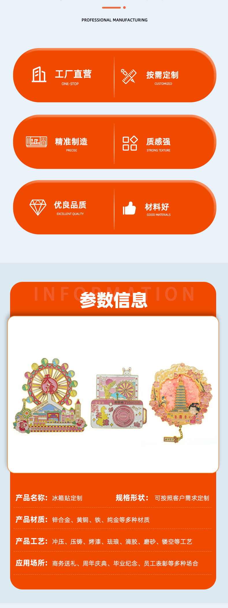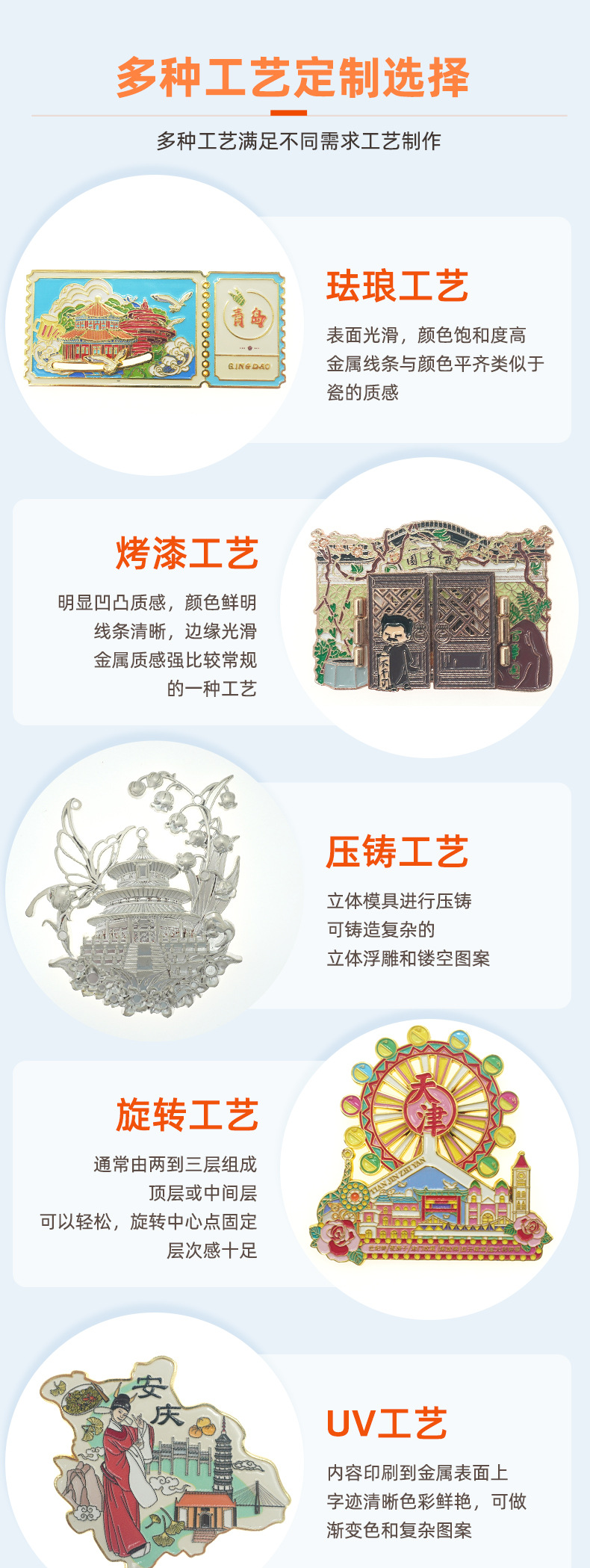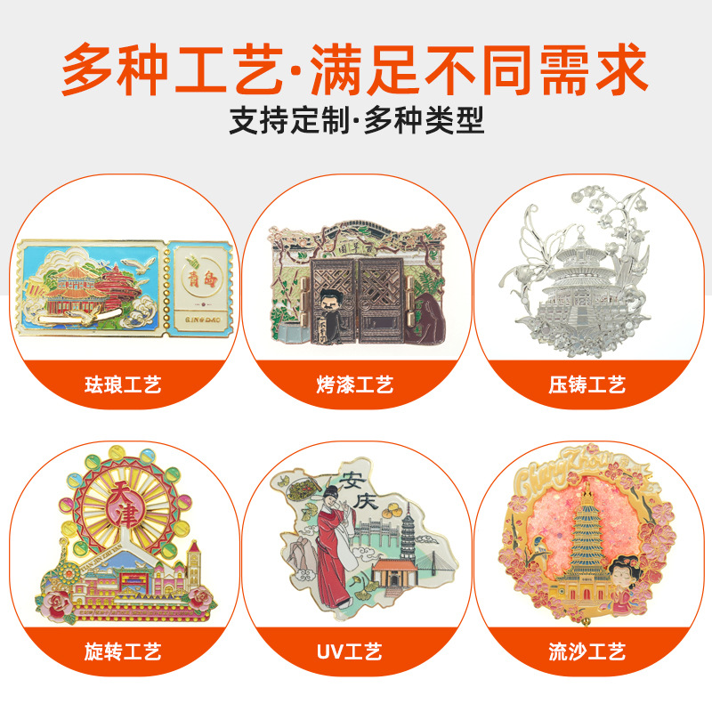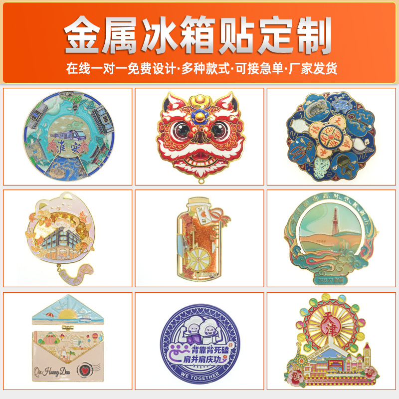 金属冰箱贴定制文创纪念品电镀包挂复古礼品高级烤漆创意批发定做