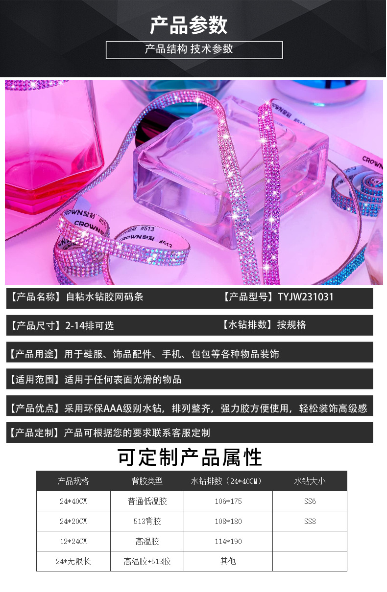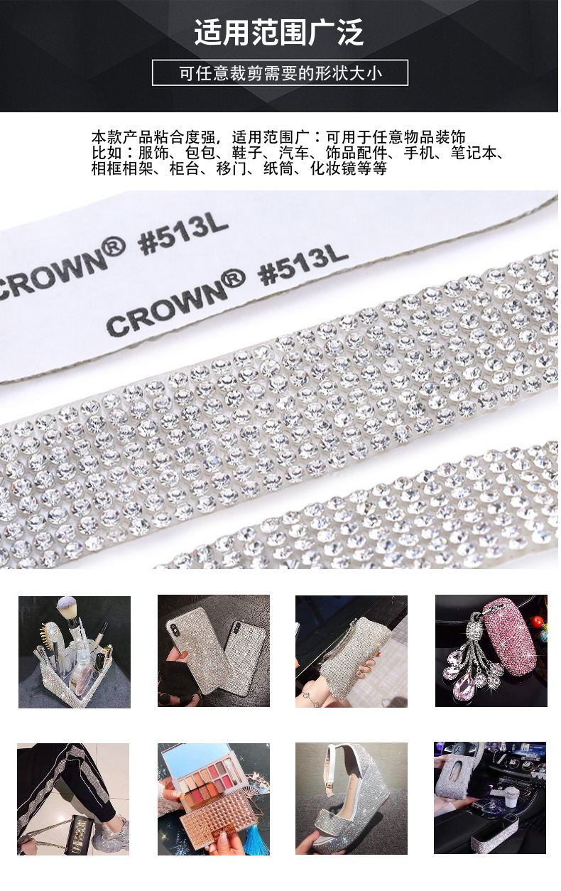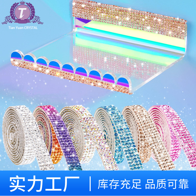跨境热销水晶钻石背胶码条水钻自粘钻条装饰带服装辅料配件钻带