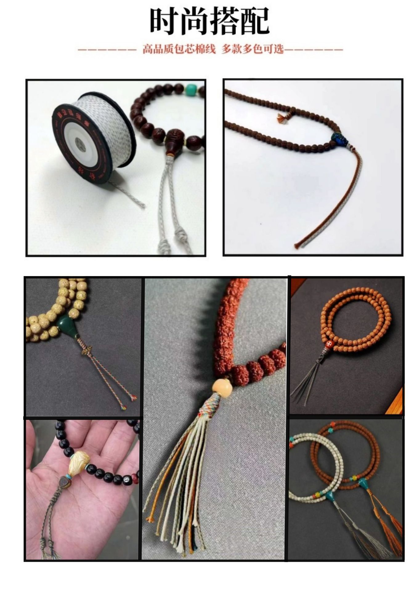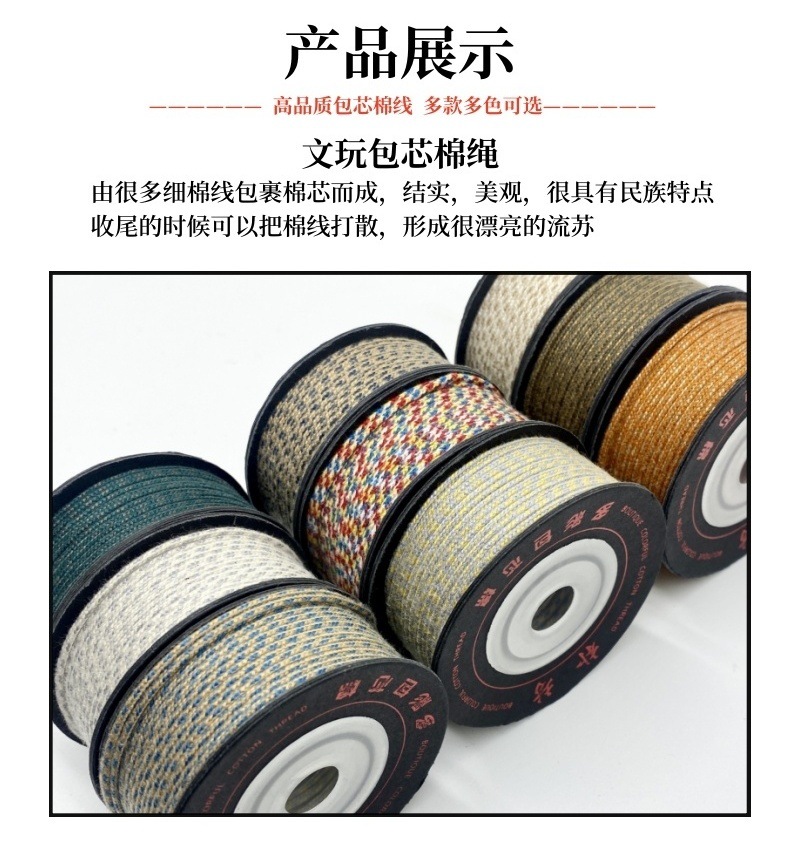 文玩包芯棉线可拉丝棉线手工编织棉线藏式编绳三通文玩配饰串珠