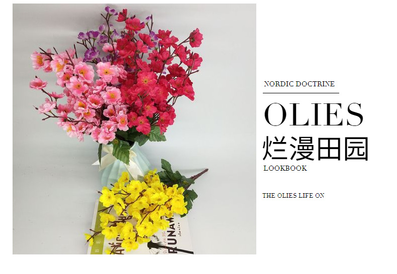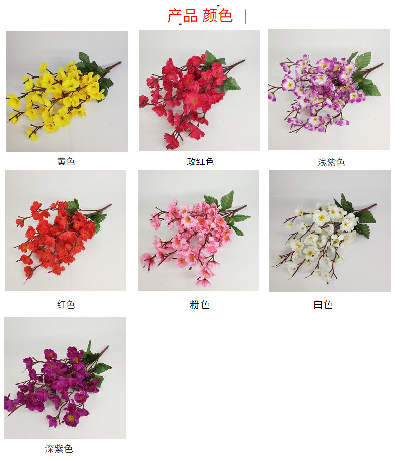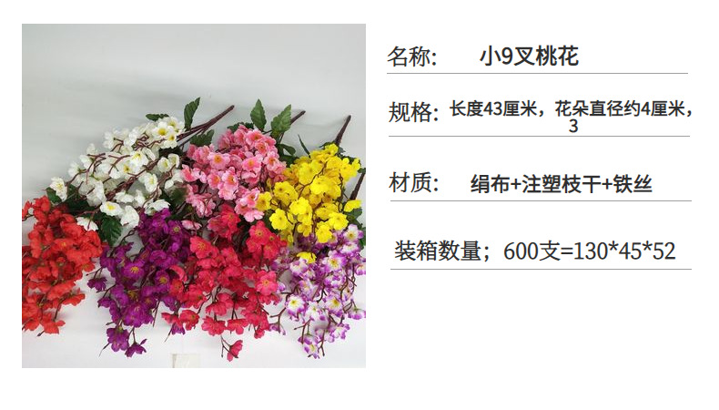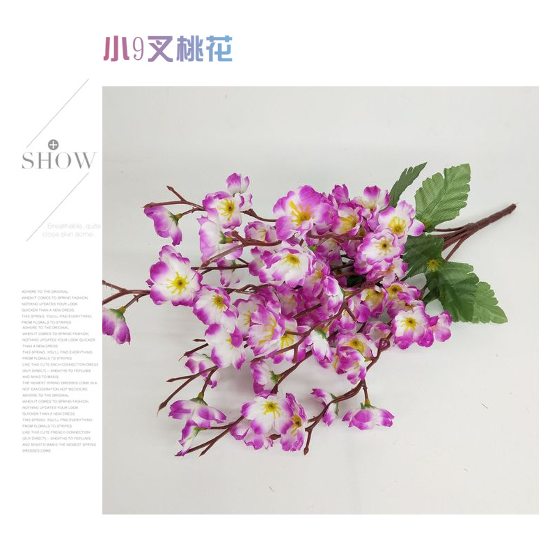 厂家供应仿真花9叉桃花 梅花 仿真花束工程装饰花批发
