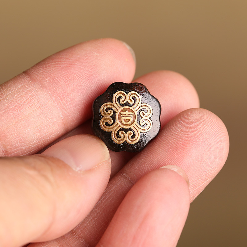 黑檀木镶嵌铜片紫檀木镶黄铜饰品背云钥匙扣DIY配件手工配饰吊坠