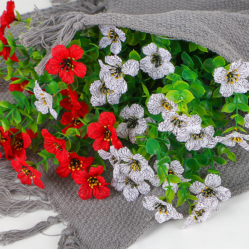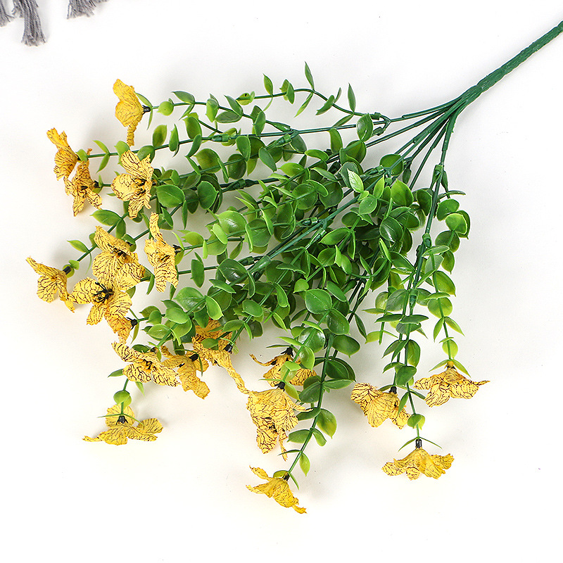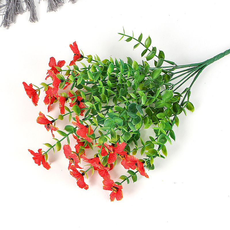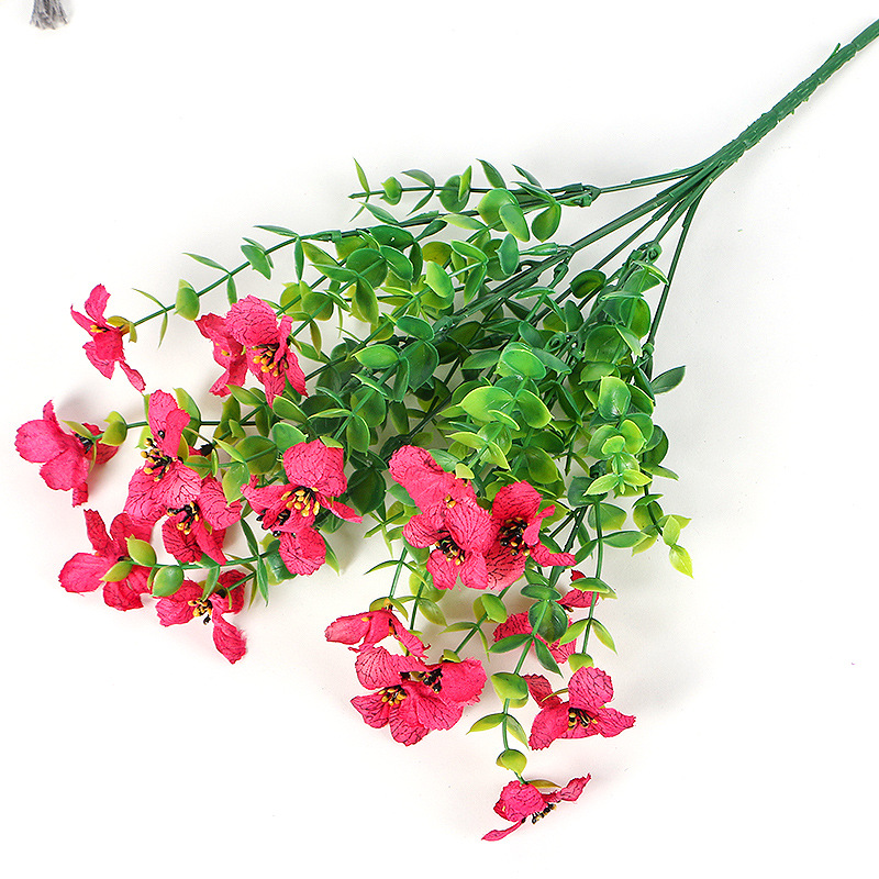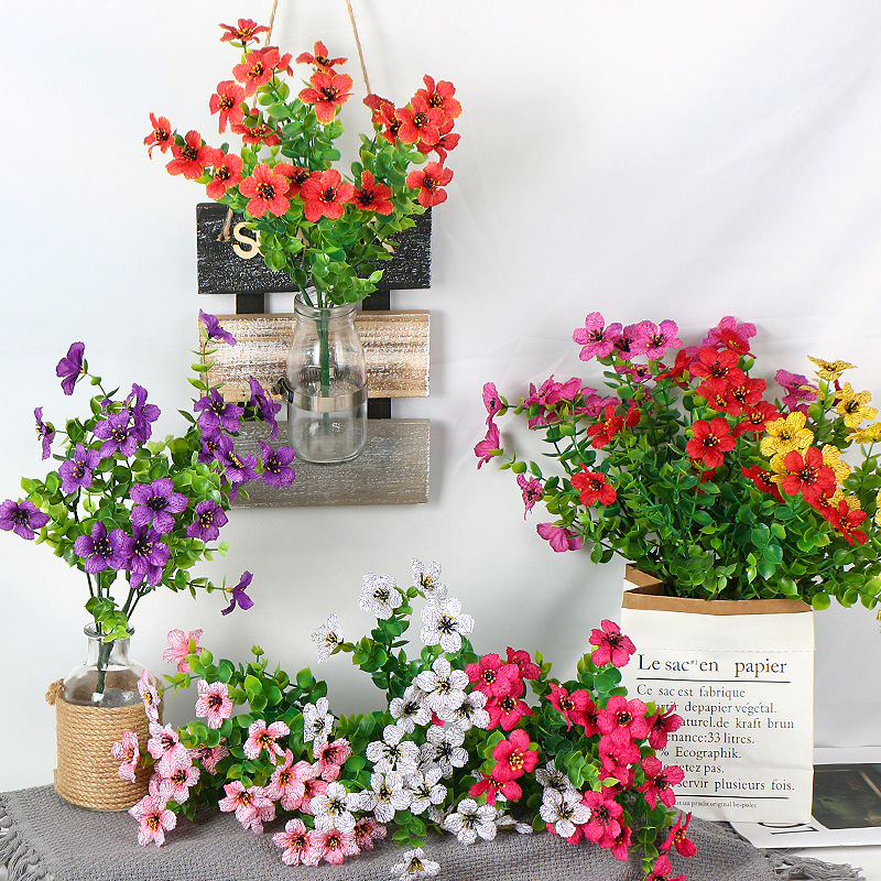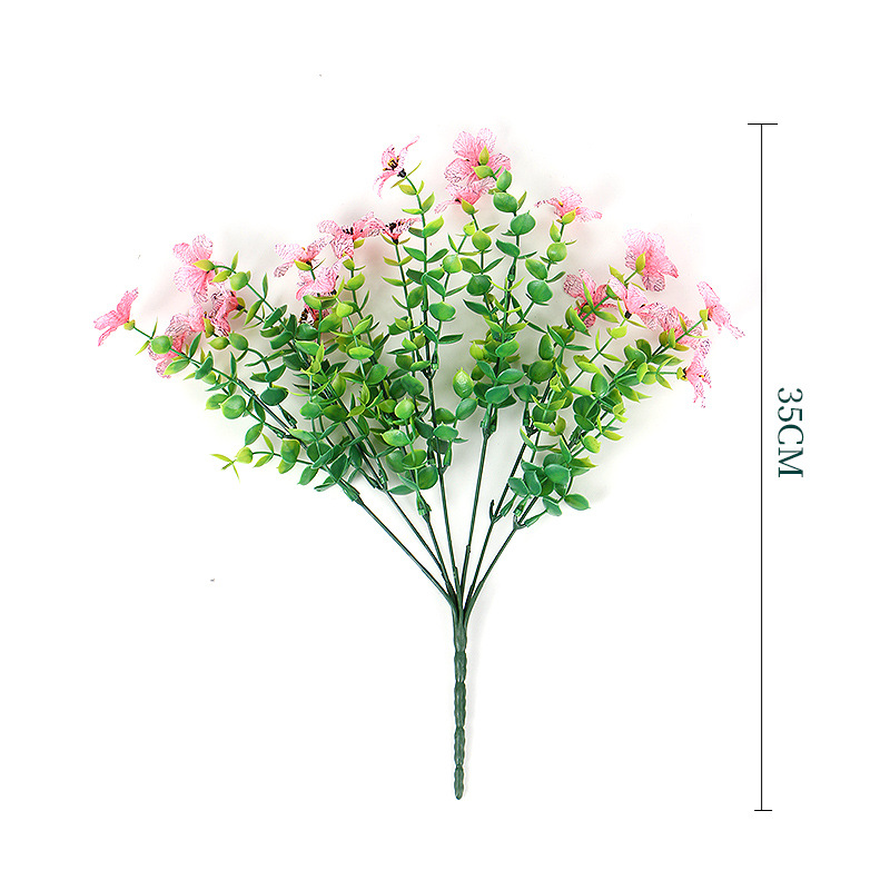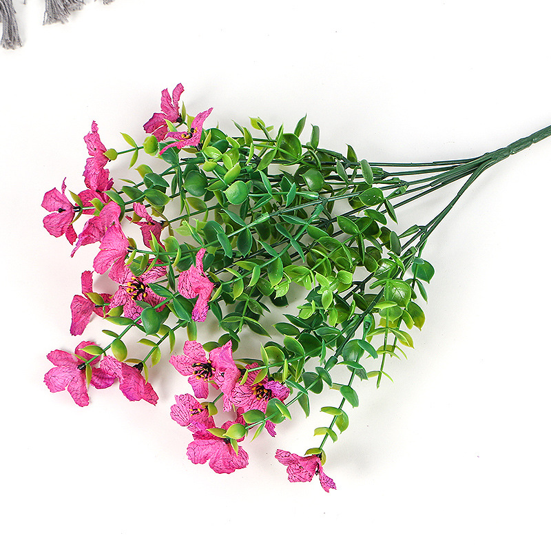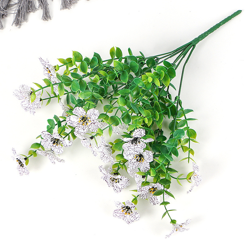 亚马逊仿真花 尤加利紫罗兰 7叉尤加利花 栅栏人造桉树叶小兰花