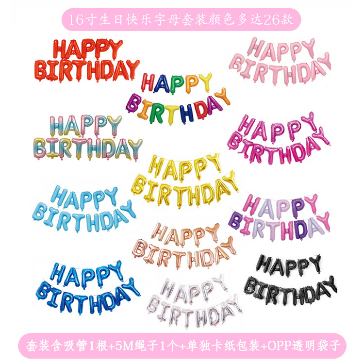 16寸美版生日字母气球百天套装铝膜气球婚庆装饰布置铝箔气球批发