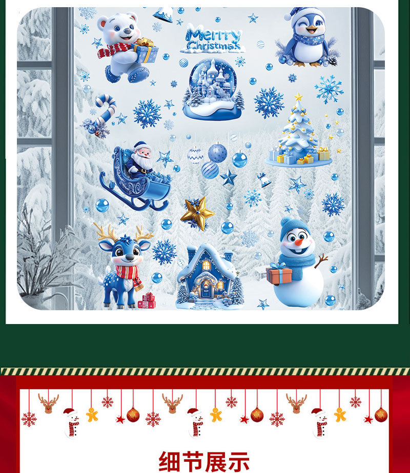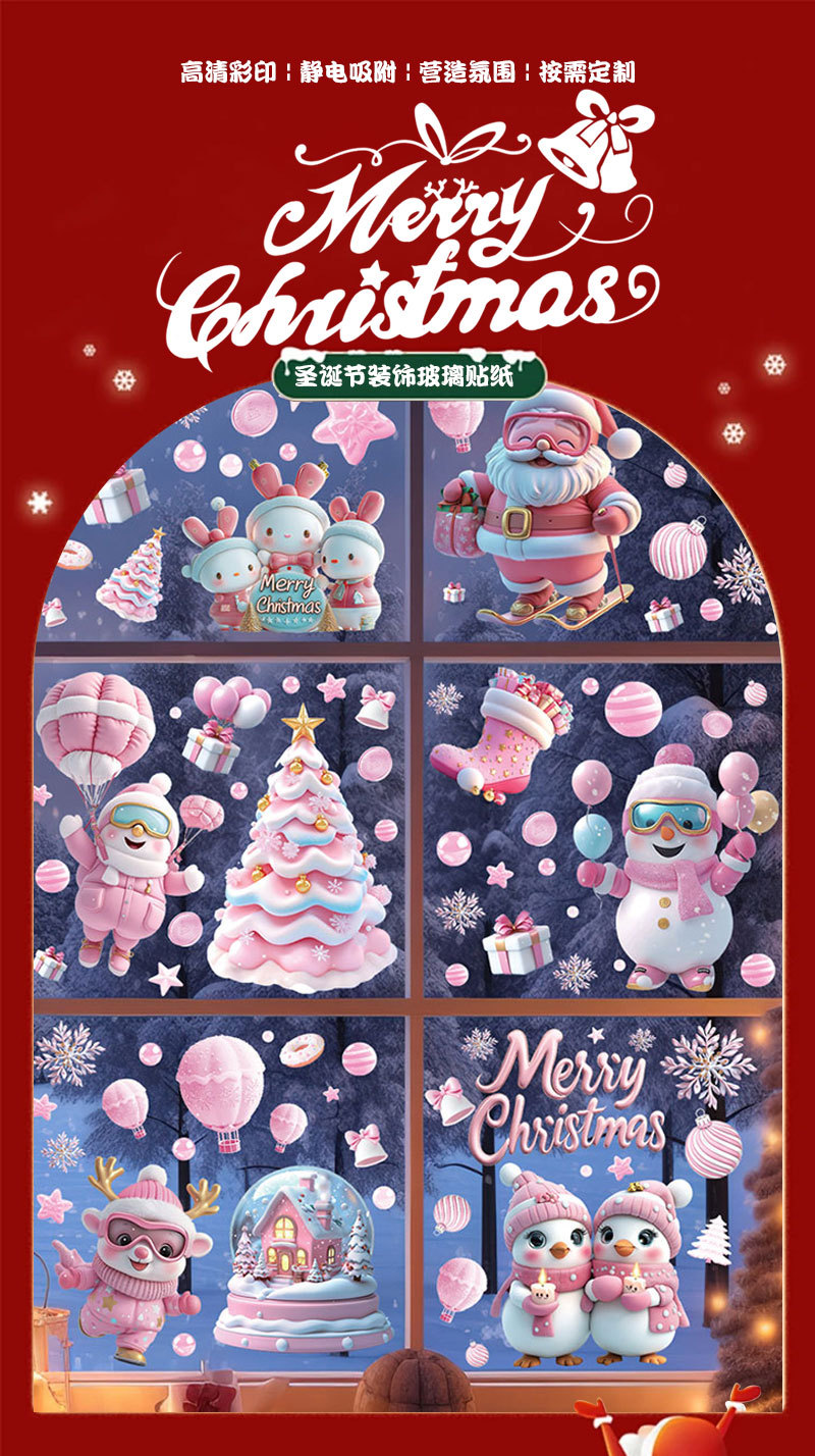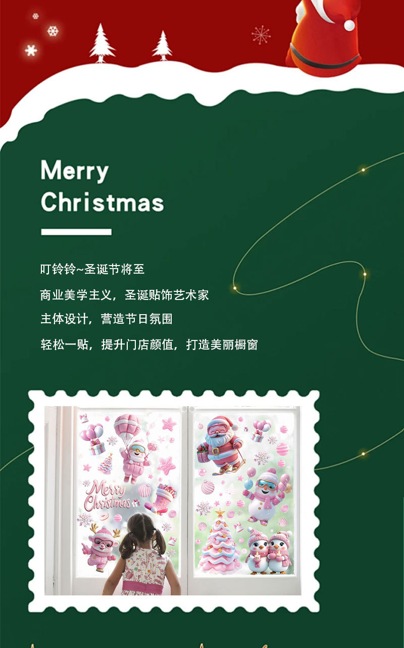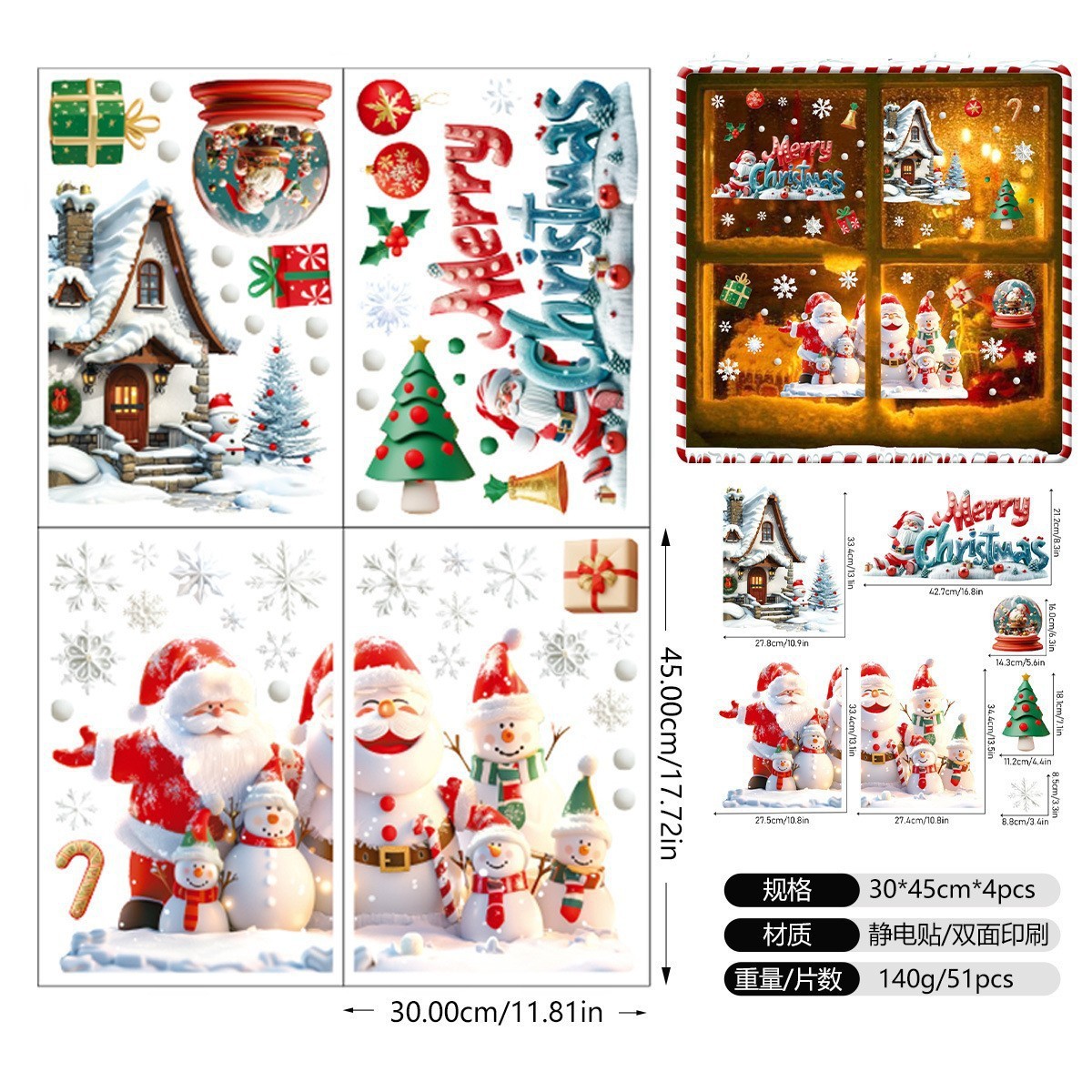 新款跨境圣诞节装饰布置玻璃静电贴纸圣诞老人雪花窗贴雪人玻璃贴