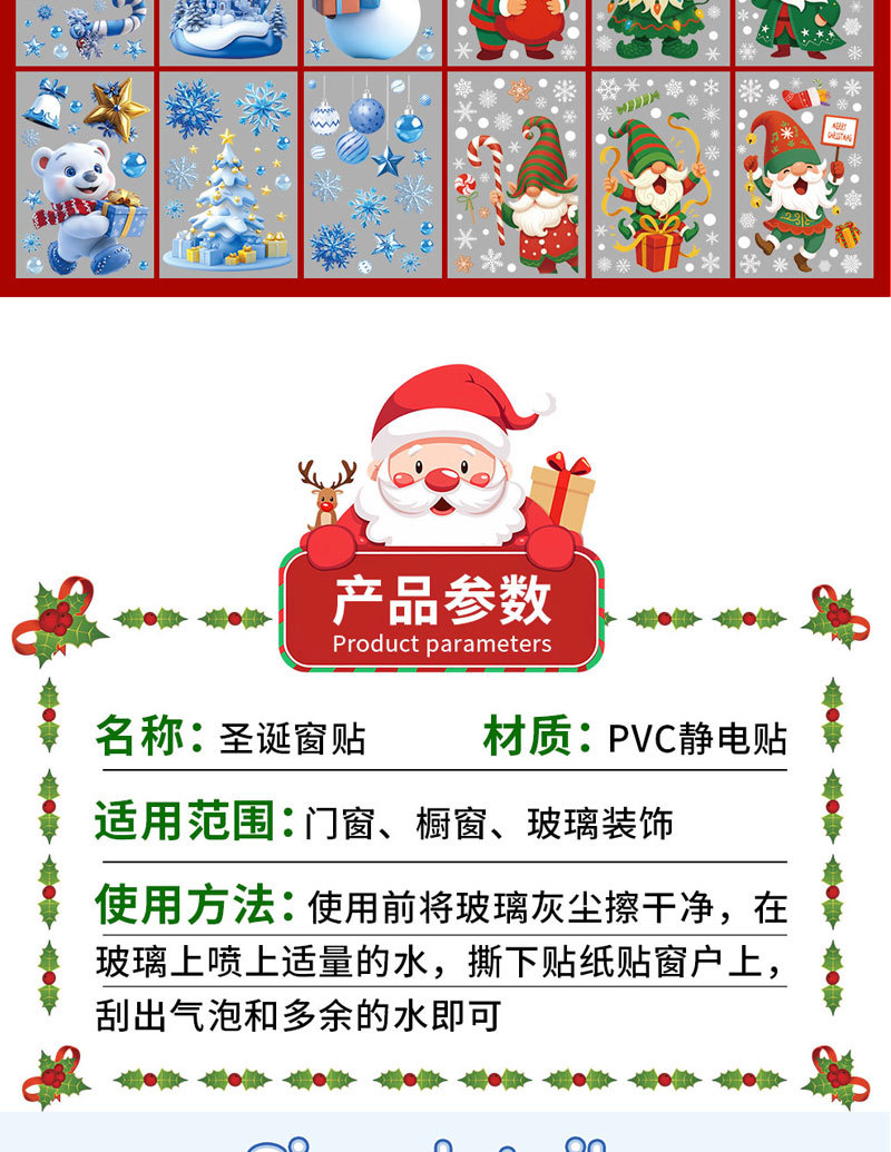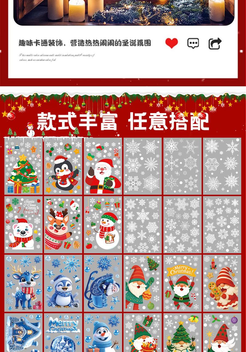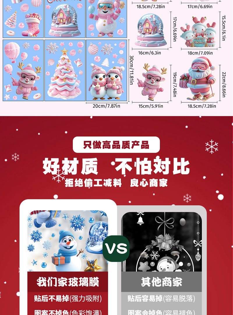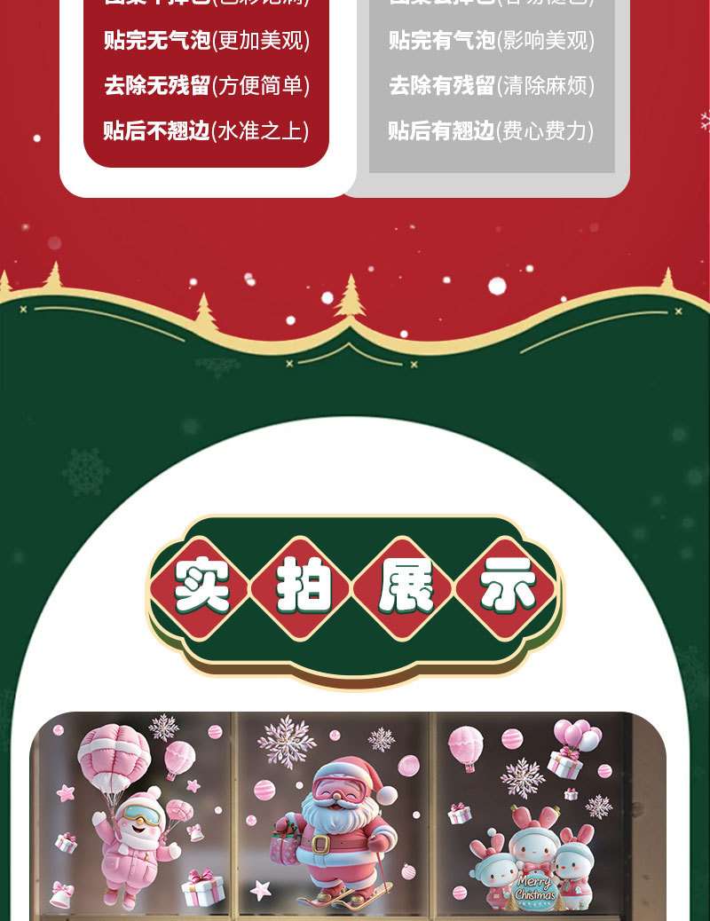 新款跨境圣诞节装饰布置玻璃静电贴纸圣诞老人雪花窗贴雪人玻璃贴