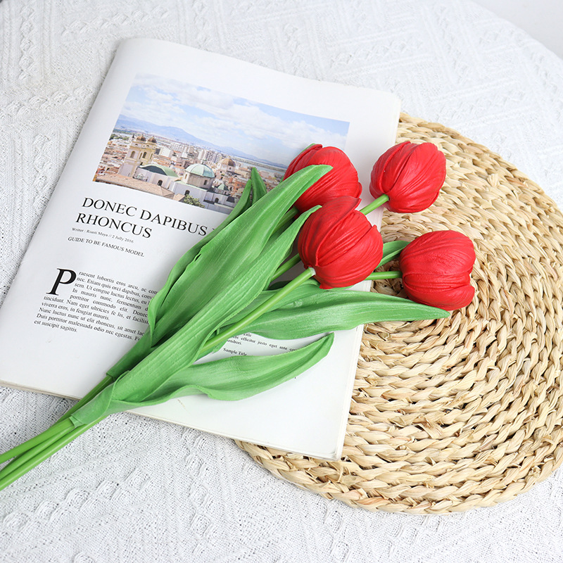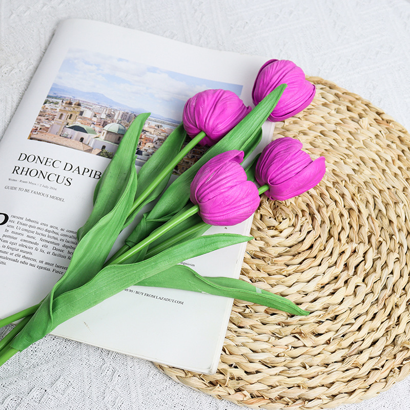 郁金香假花家居装饰PU手感仿真花拍照仿真假花厂家批发婚庆手捧花