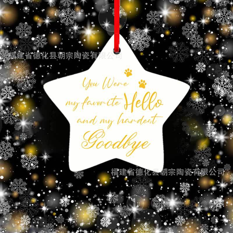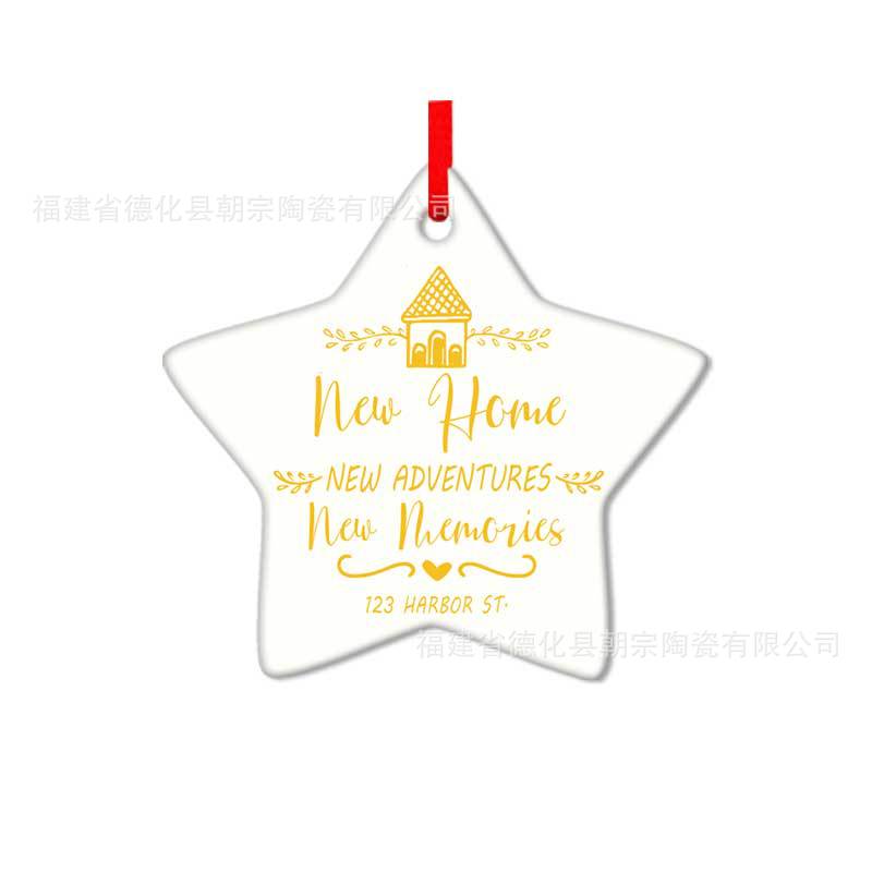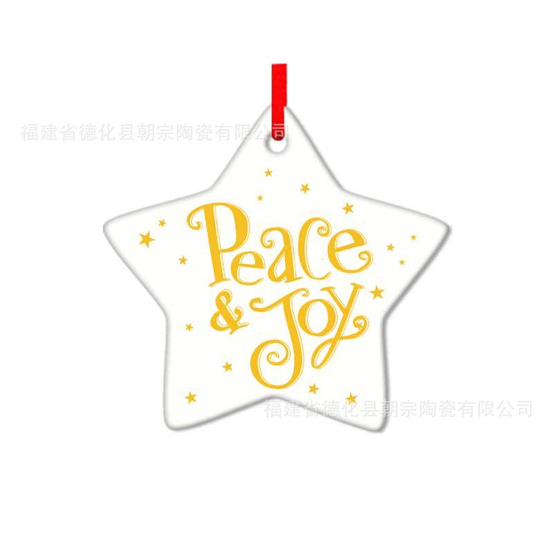 厂家直供 跨境五角星陶瓷挂件 单双面印刷 圣诞纪念装饰品 可制定