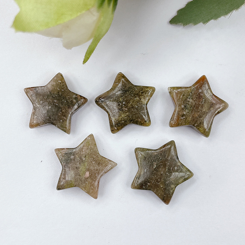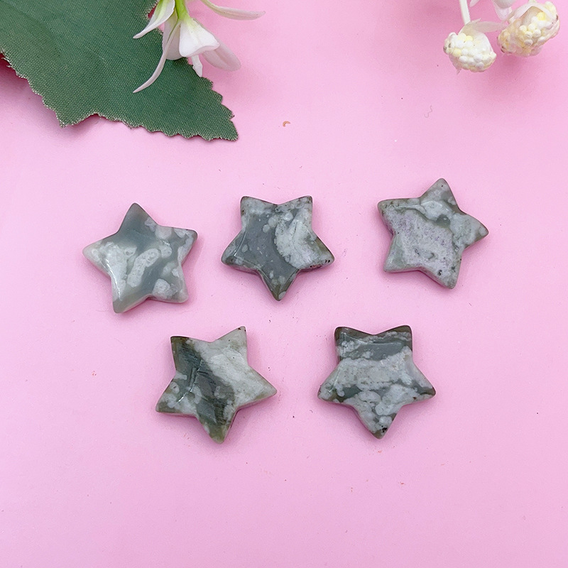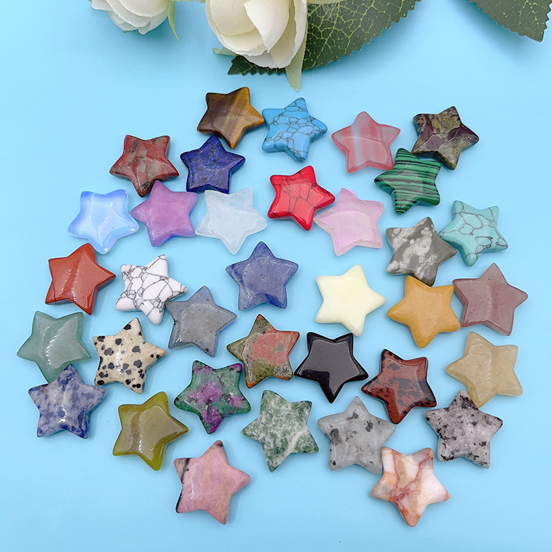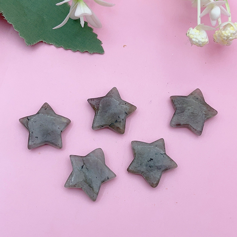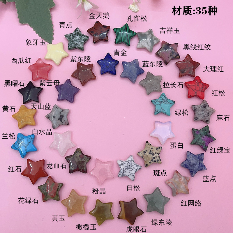 亚马逊天然石水晶20mm五角星无孔吊坠星星月亮饰品小星星摆件配件