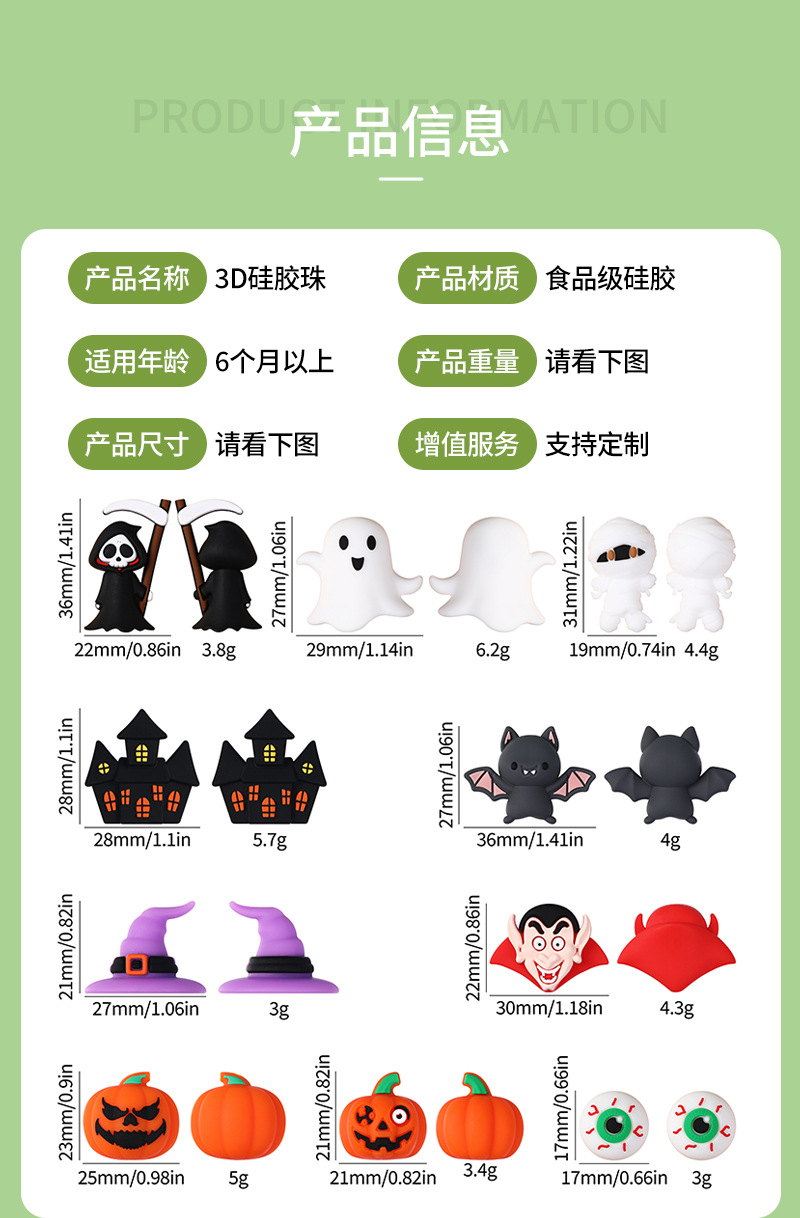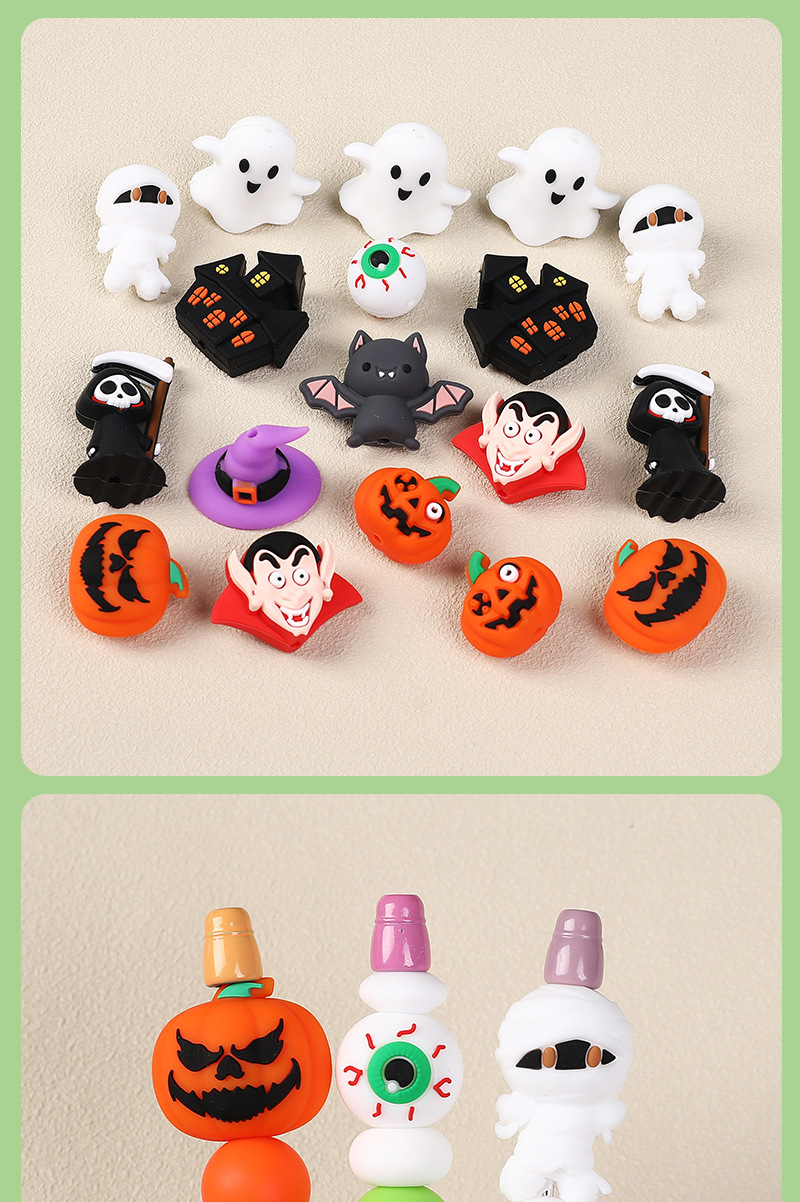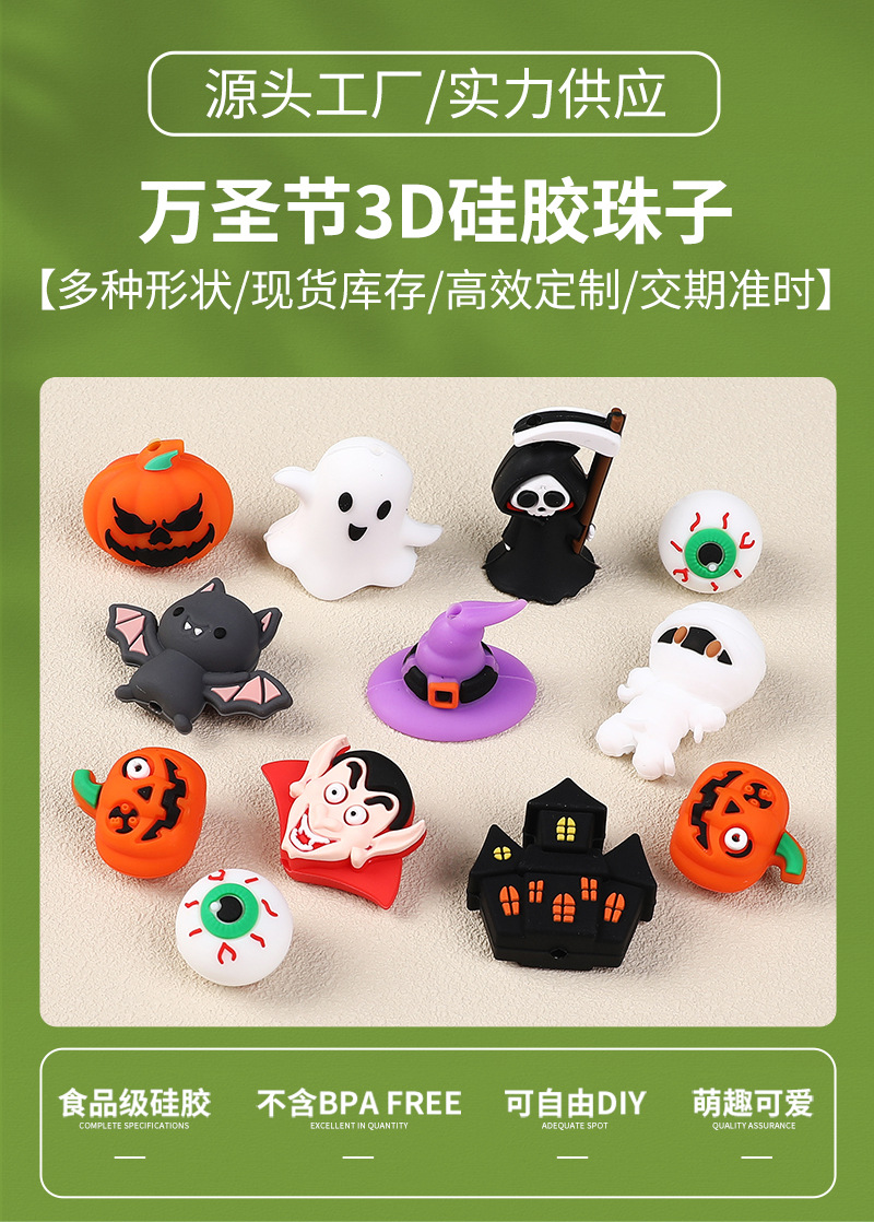 跨境万圣节硅胶珠3D创意南瓜蝙蝠幽灵串珠装饰品diy配件滴胶珠子