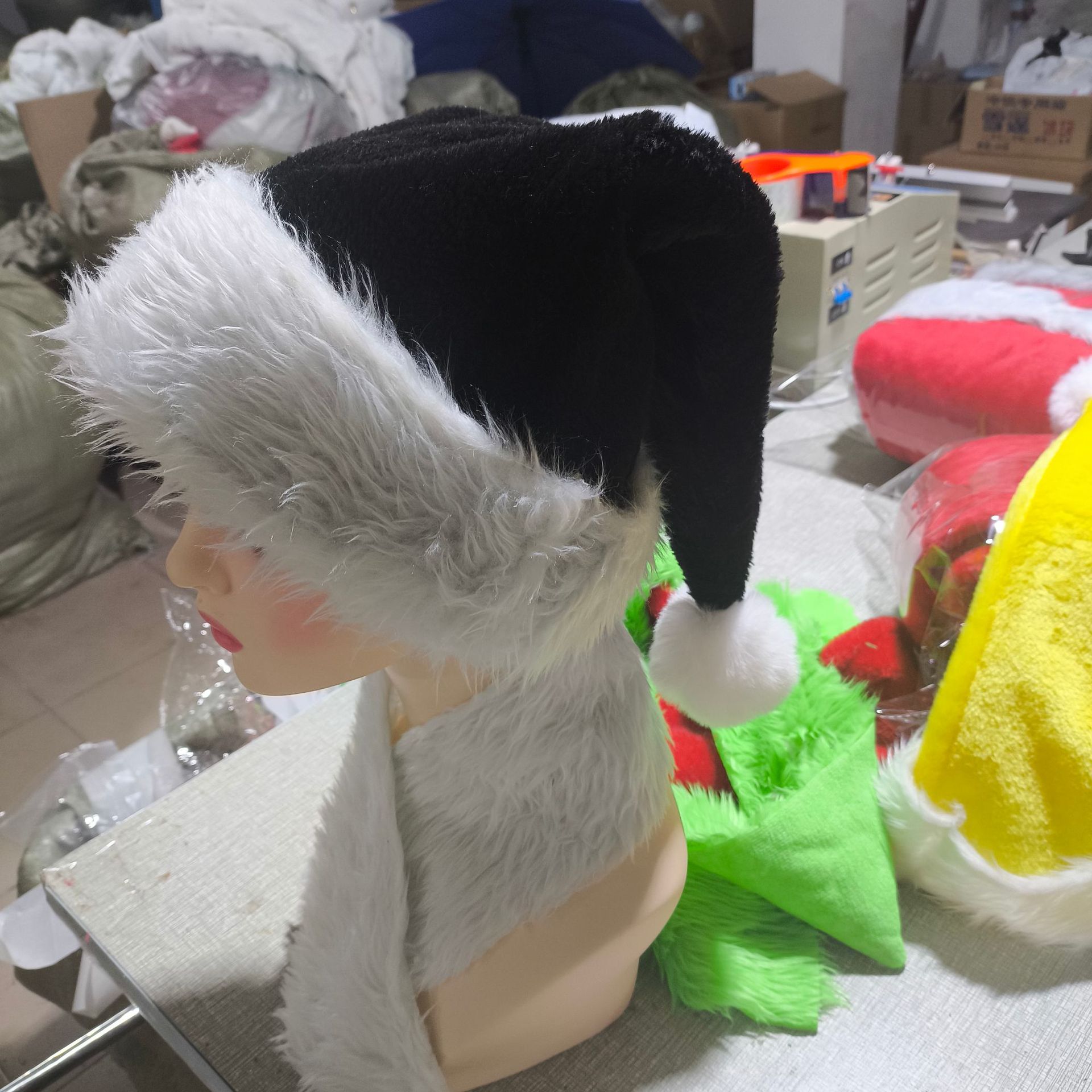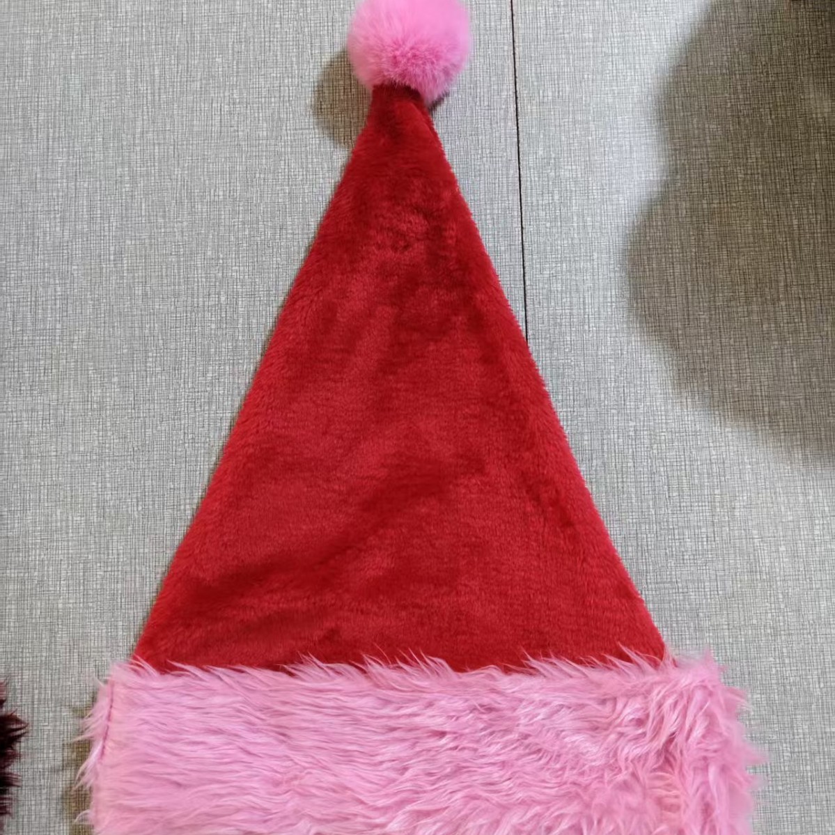 2025热销圣诞节装饰品红色成人儿童加大加厚加密长毛绒圣诞帽批发