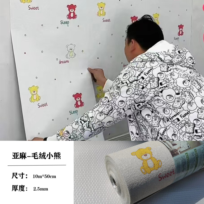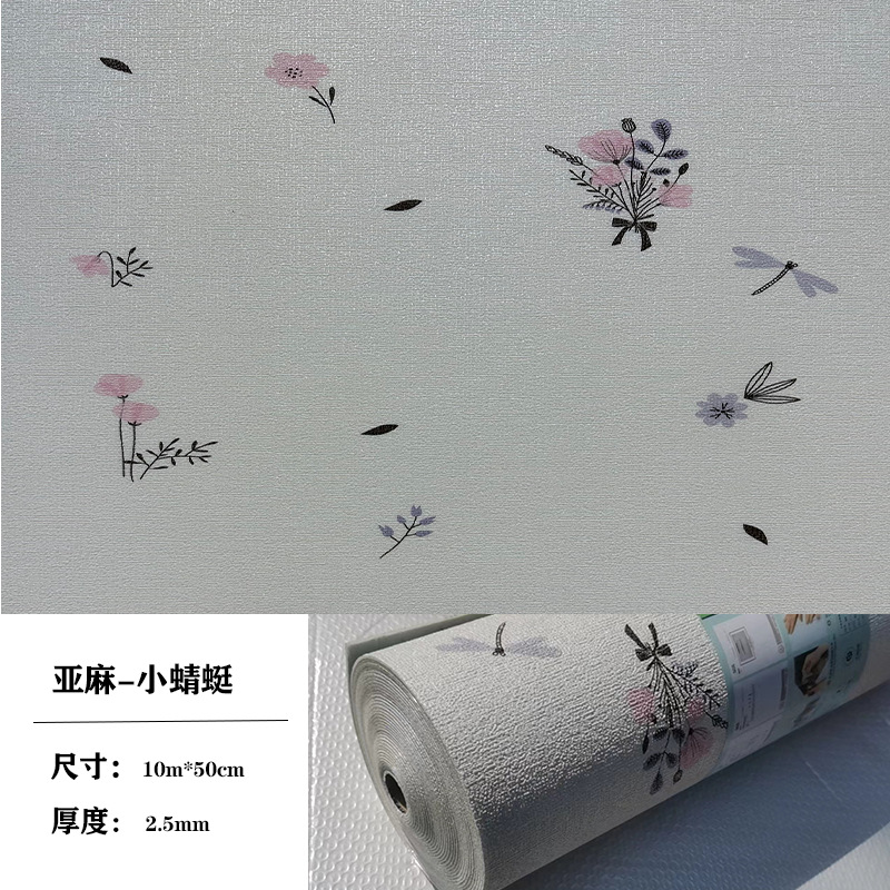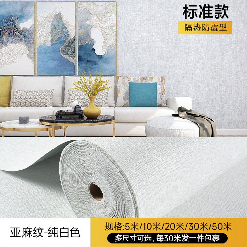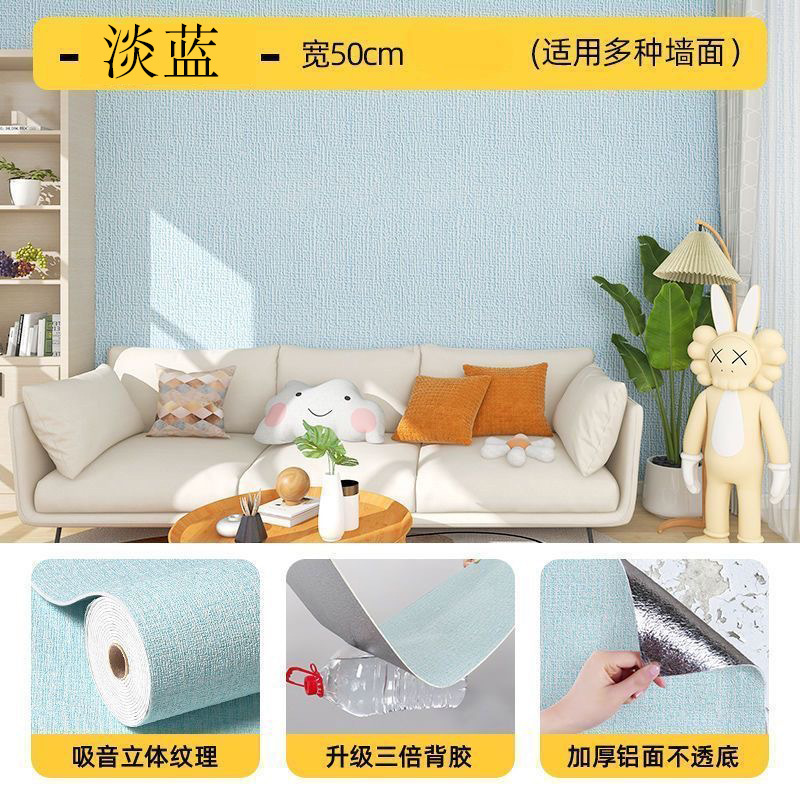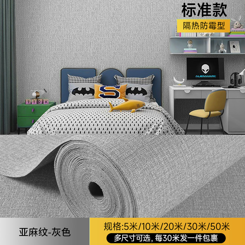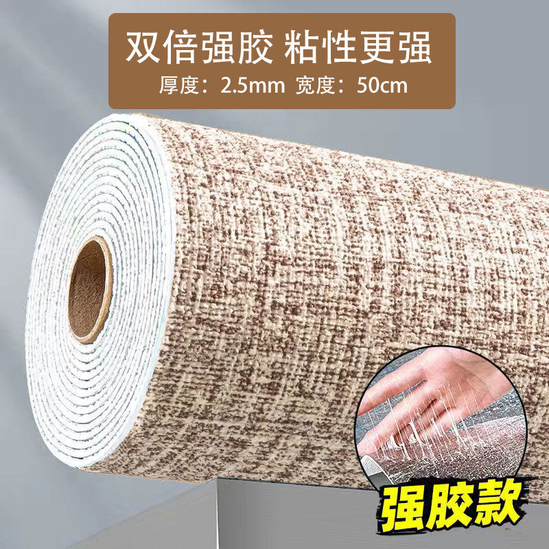 亚麻墙纸自粘防水防潮防霉墙布3d立体墙贴壁纸卧室温馨翻新墙贴纸