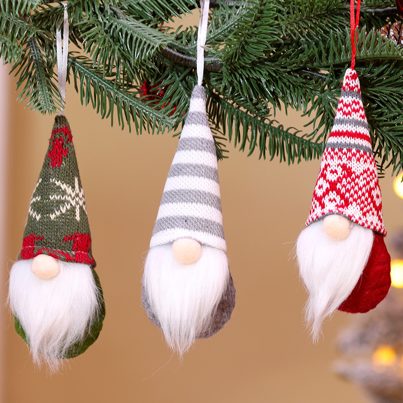 跨境圣诞节小挂件装饰品圣诞针织无脸老人小吊件圣诞树装饰挂件