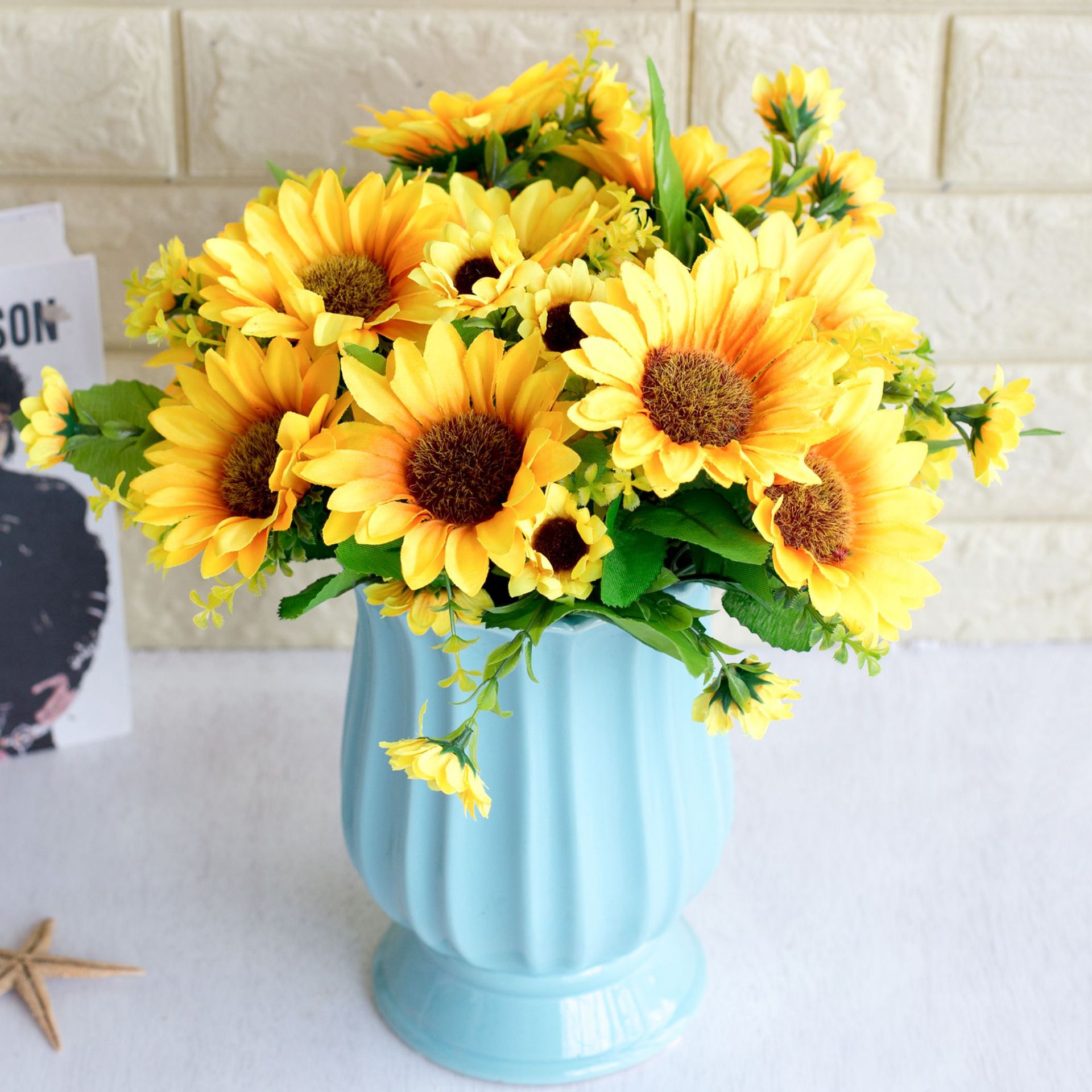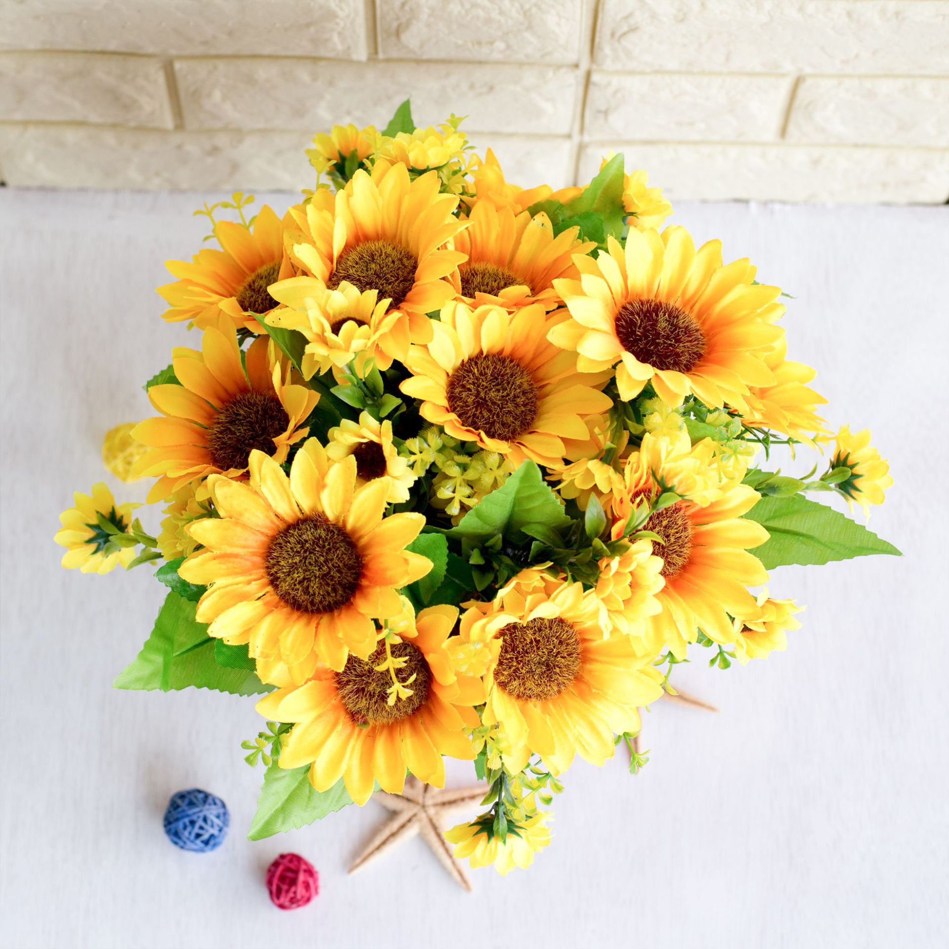 厂家批发DIY仿真花 4头太阳花向日葵绢花布花菊花向阳花假花