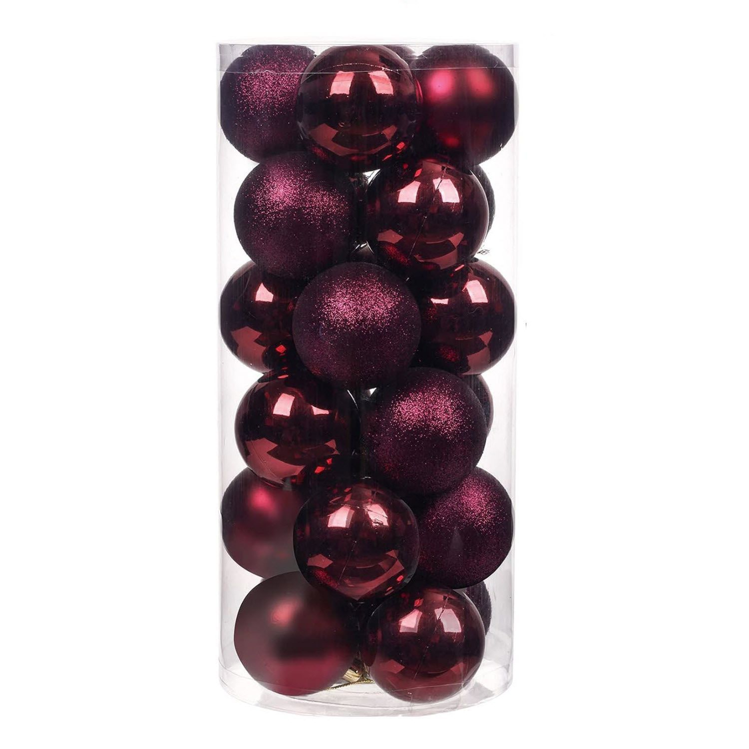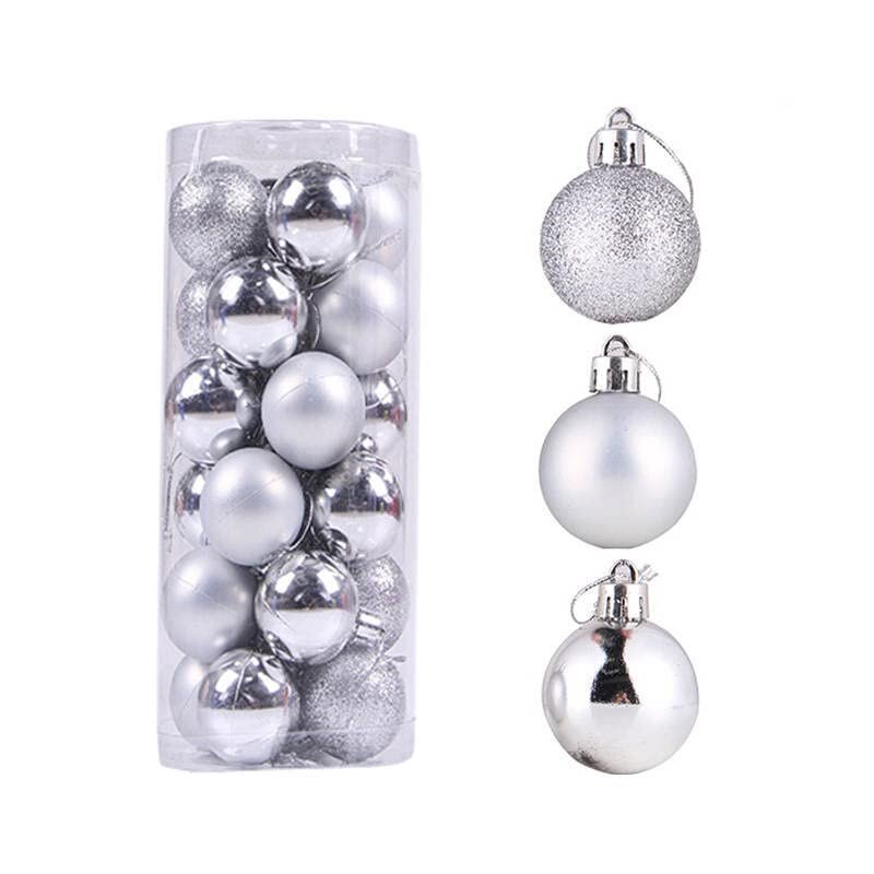 现货24Pcs圣诞节塑料圣诞球桶装商场节日派对圣诞树装饰品小挂件