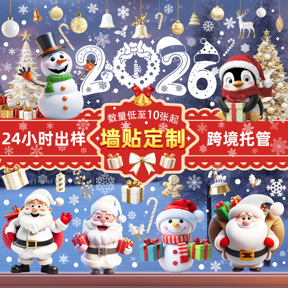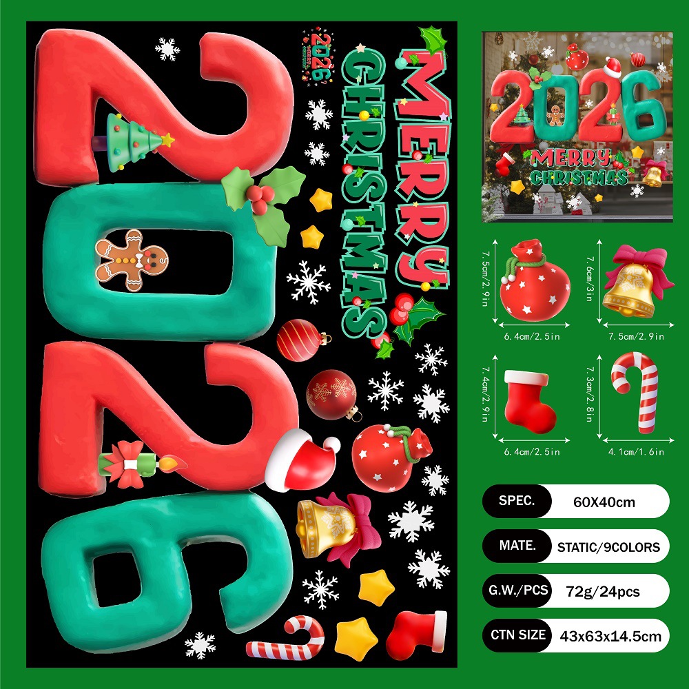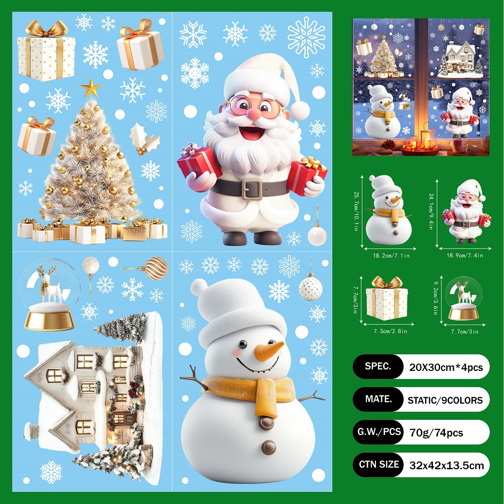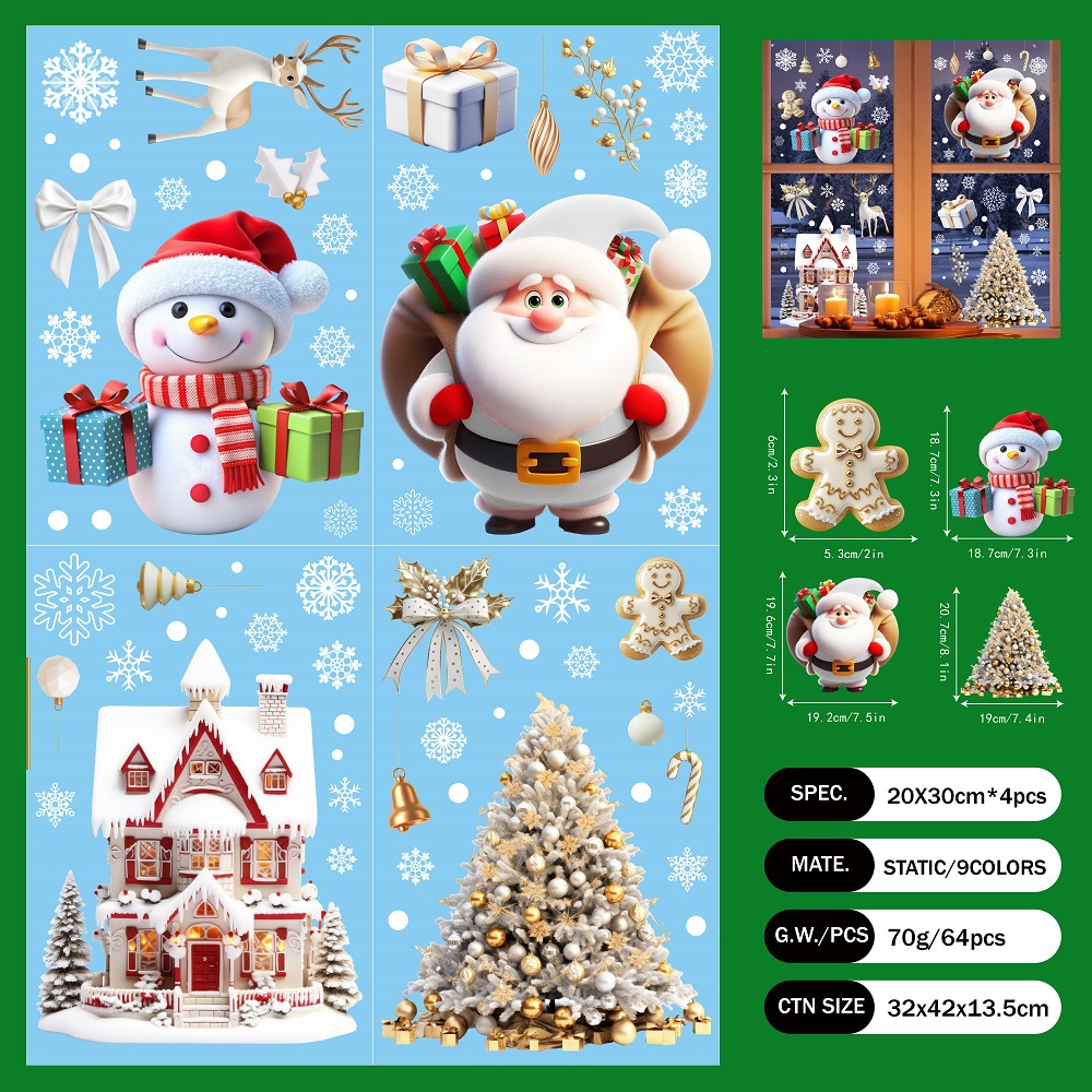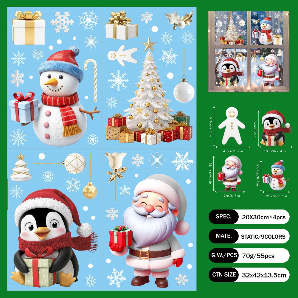 2026新款圣诞节静电贴可移除窗贴 防水墙贴雪人雪花玻璃装饰贴纸