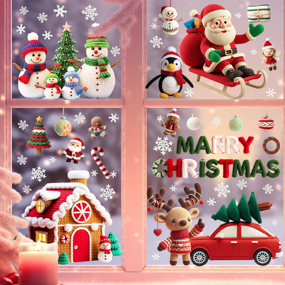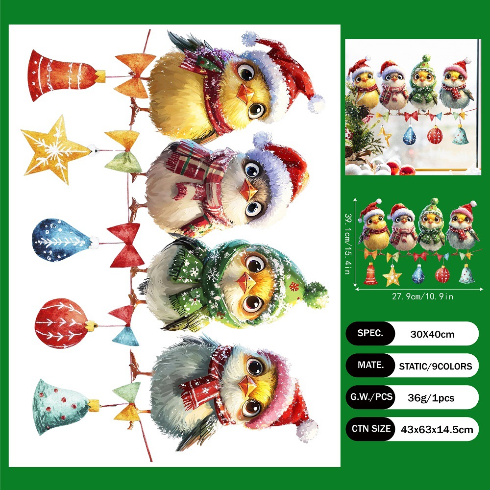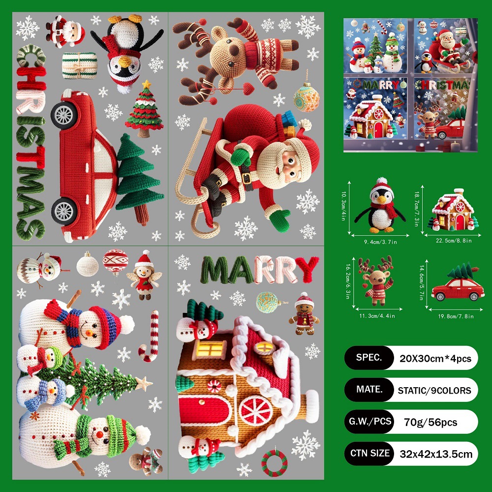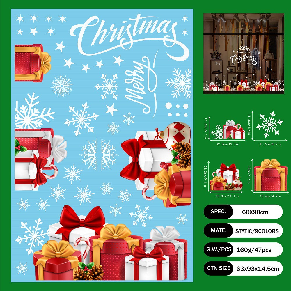 2026新款圣诞节静电贴可移除窗贴 防水墙贴雪人雪花玻璃装饰贴纸