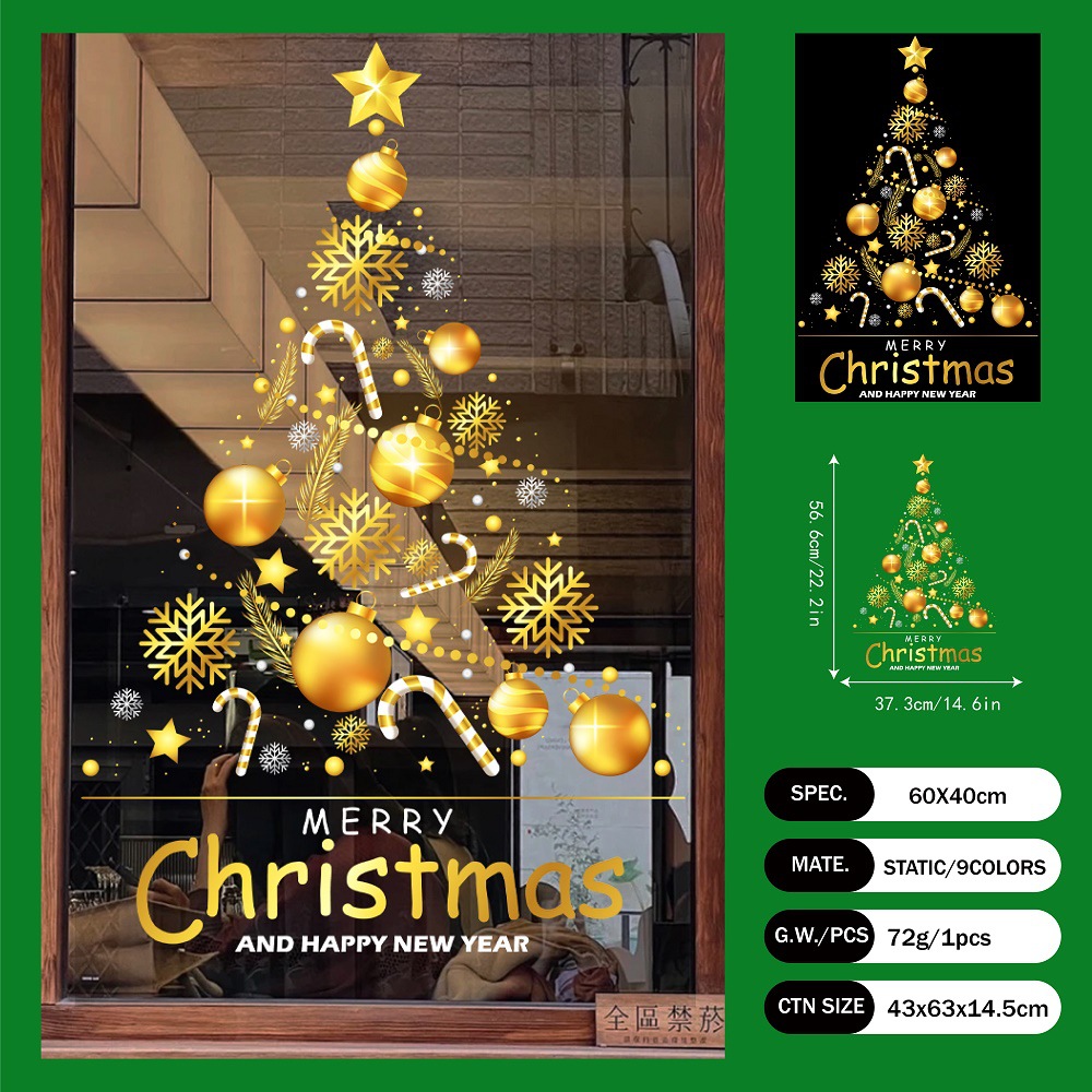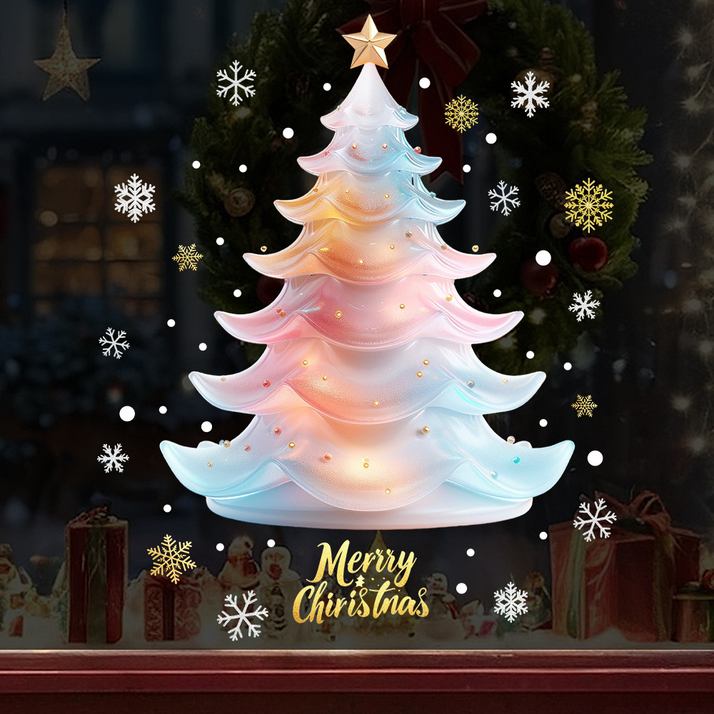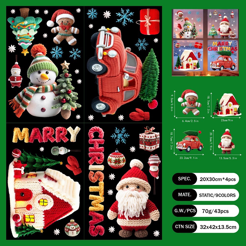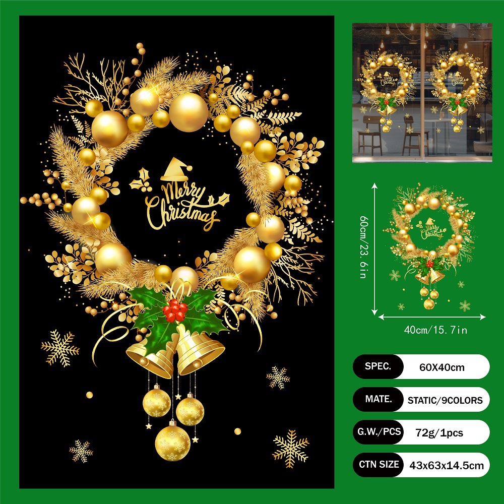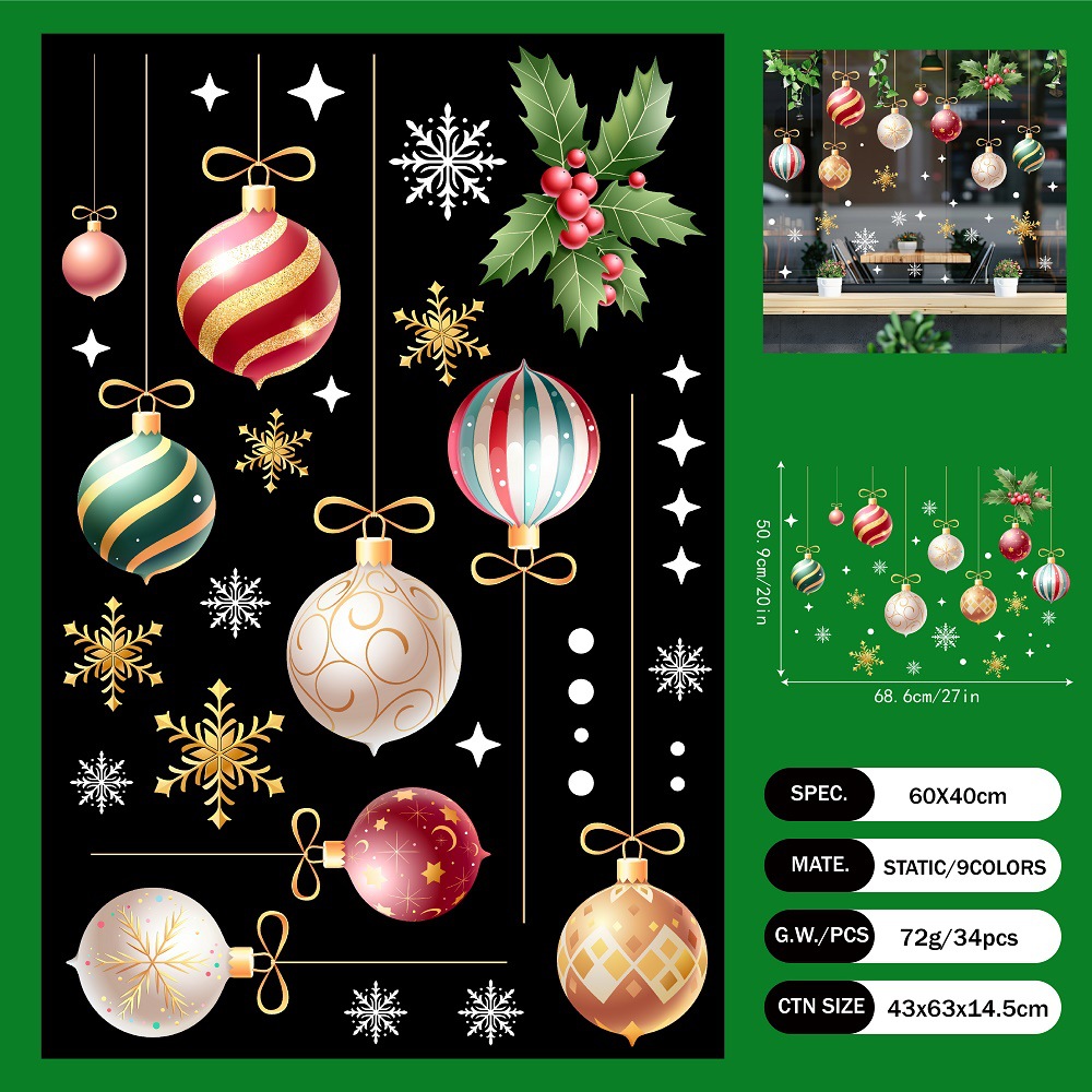 2026新款圣诞节静电贴可移除窗贴 防水墙贴雪人雪花玻璃装饰贴纸