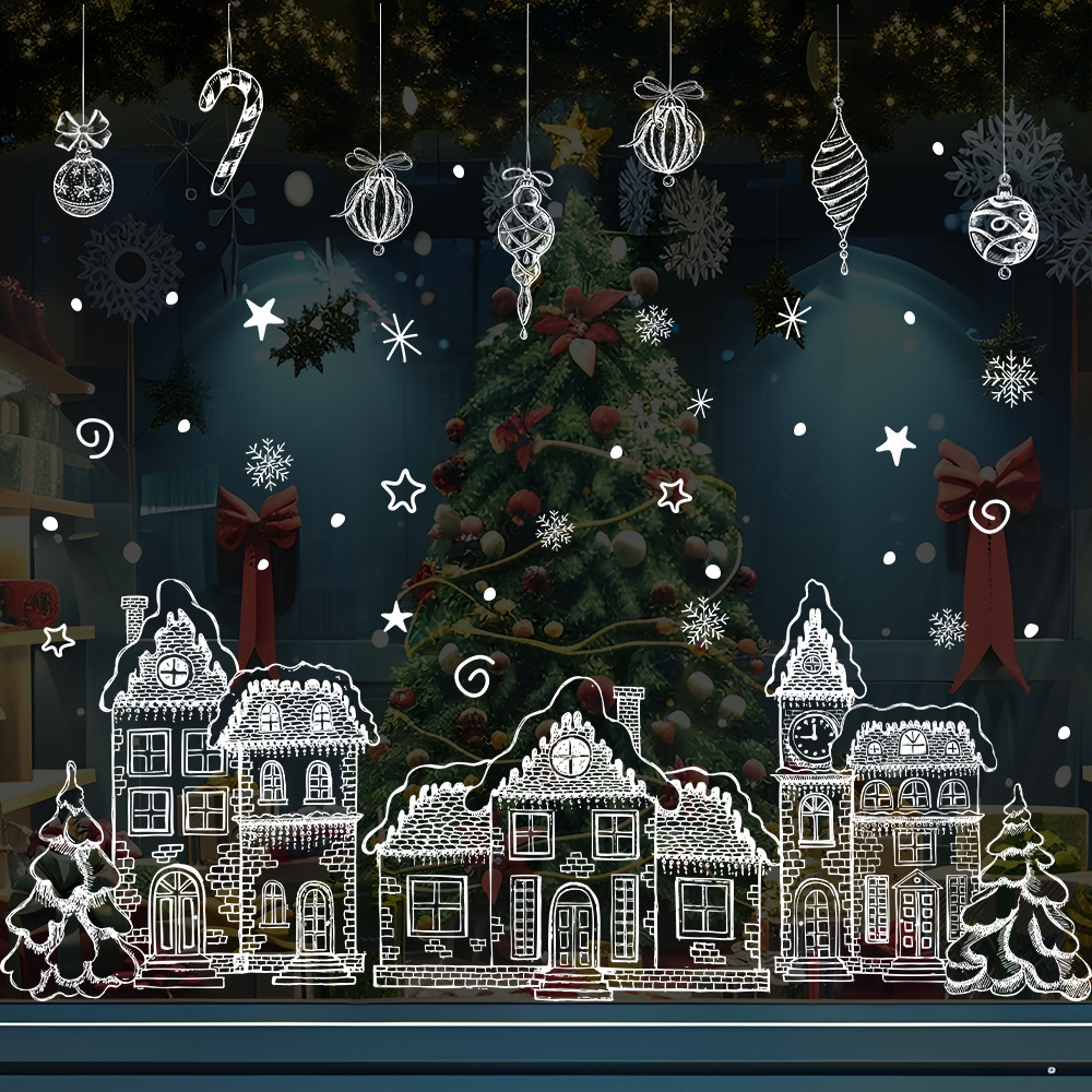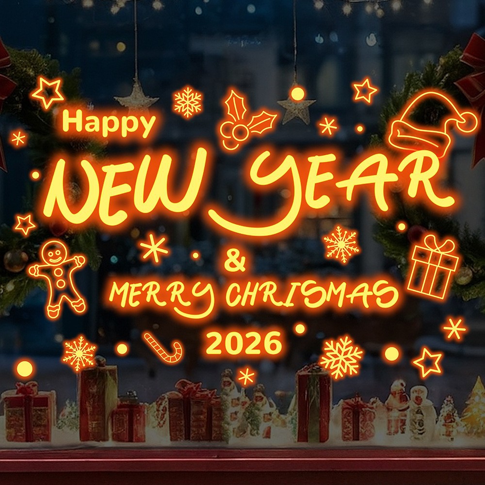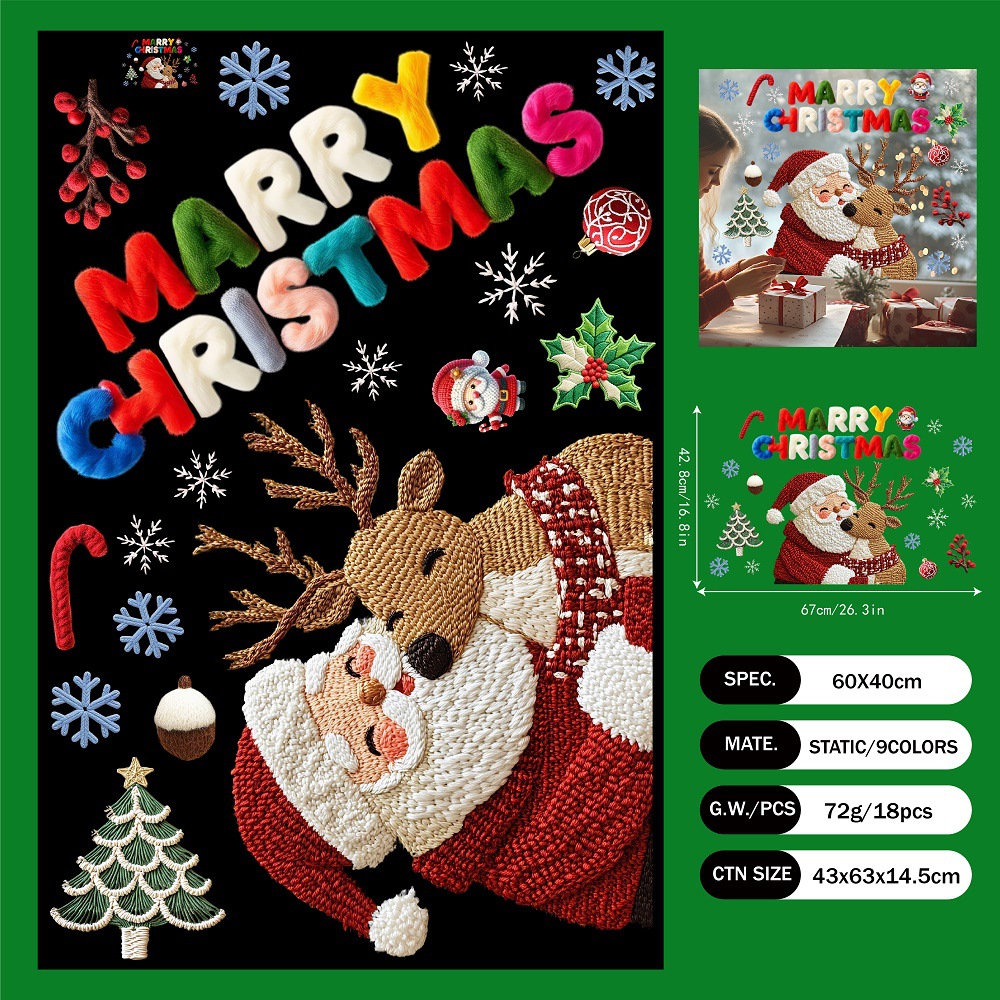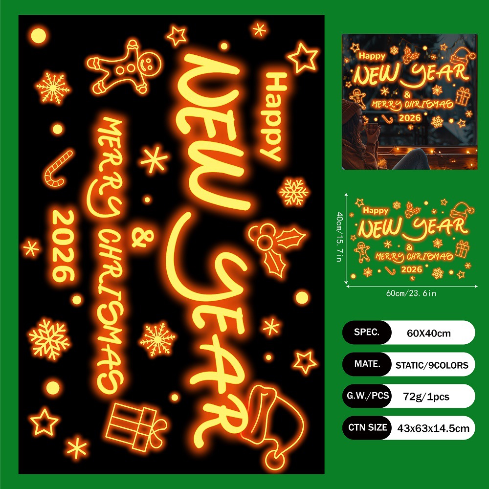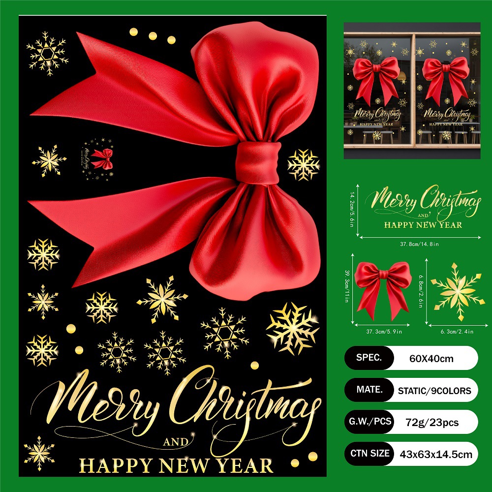 2026新款圣诞节静电贴可移除窗贴 防水墙贴雪人雪花玻璃装饰贴纸