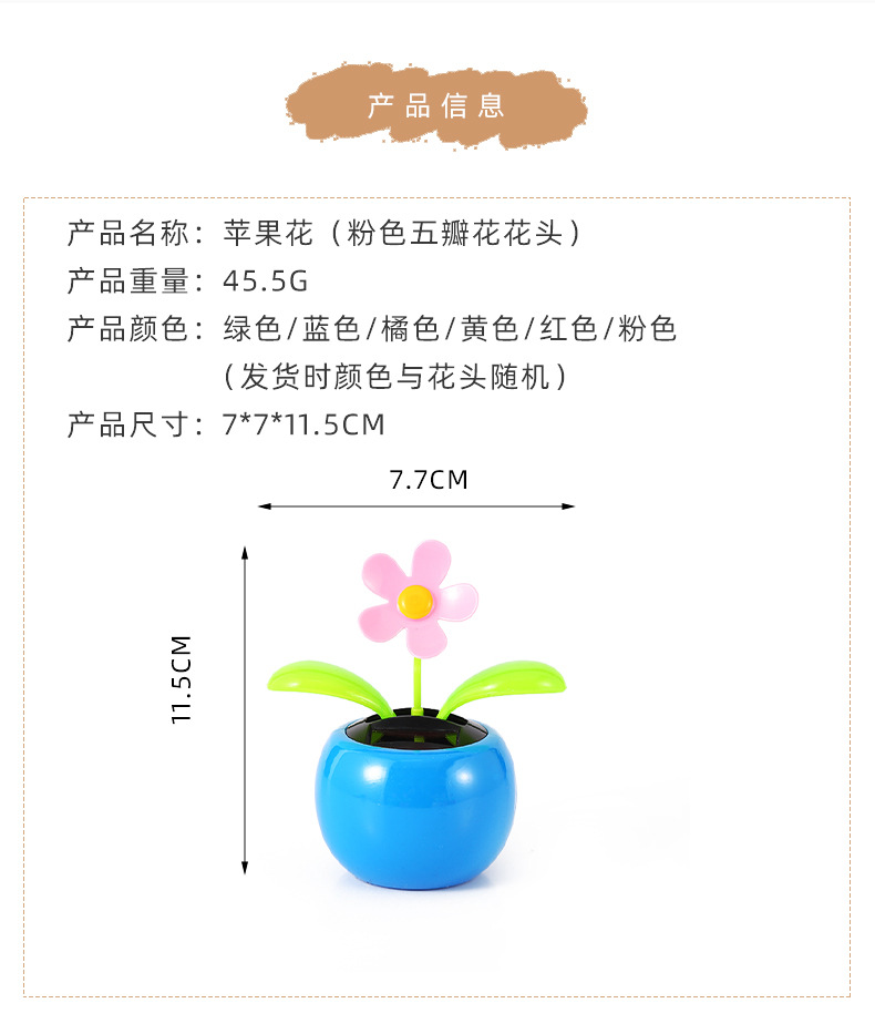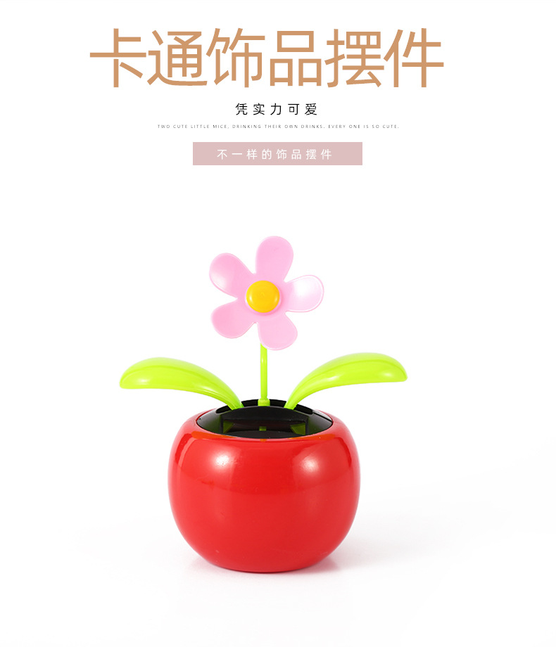 太阳花苹果花汽车摆件新款车内装饰品创意网红太阳能迷你小摆件