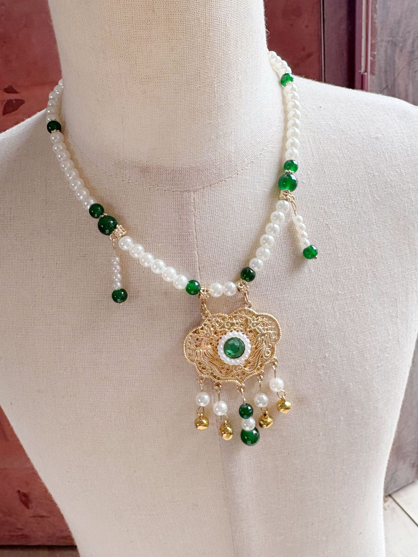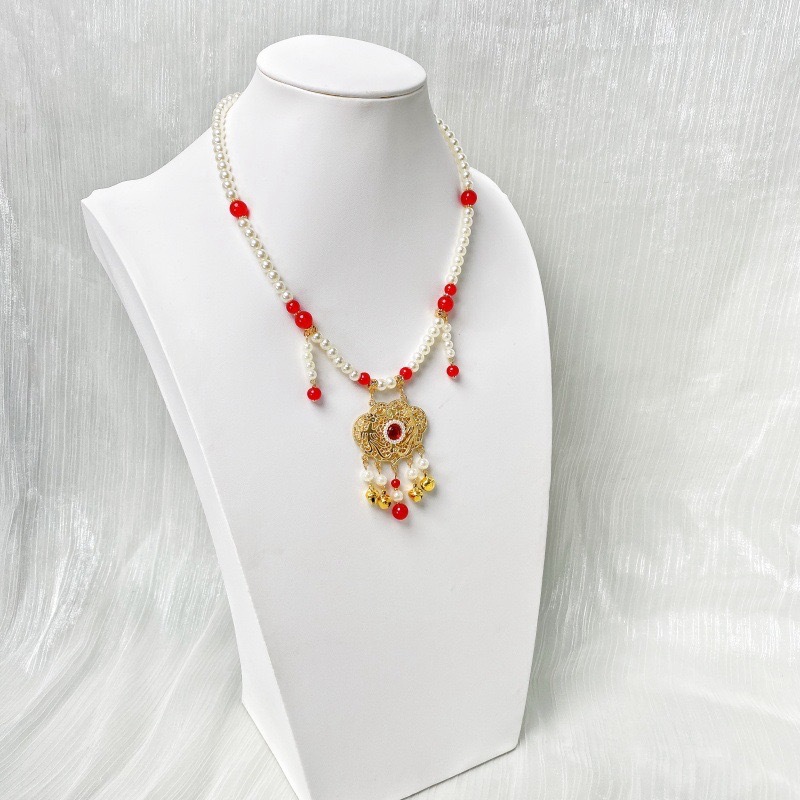 工厂批发新中式简约马面裙配饰儿童国风饰品古风短款软璎珞项链
