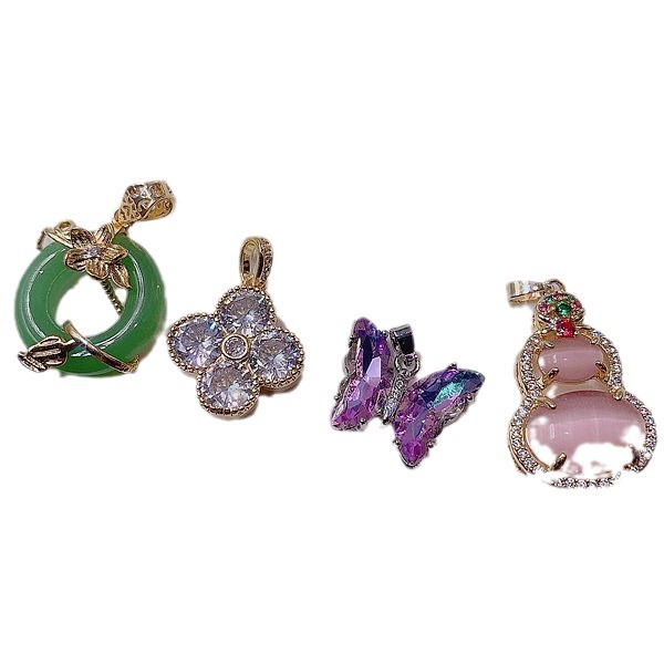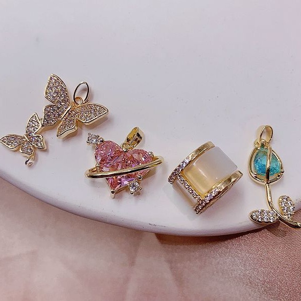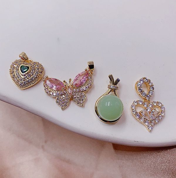 微镶嵌锆石坠子diy饰品配件镀真金贝壳蝴蝶项链手链满锆吊坠挂件