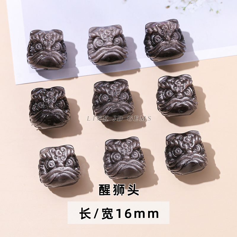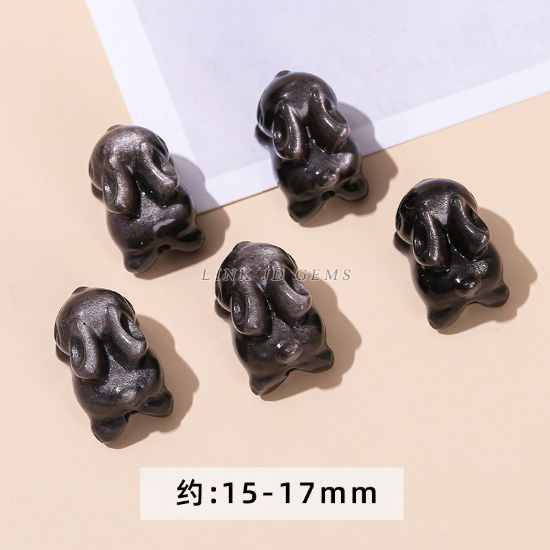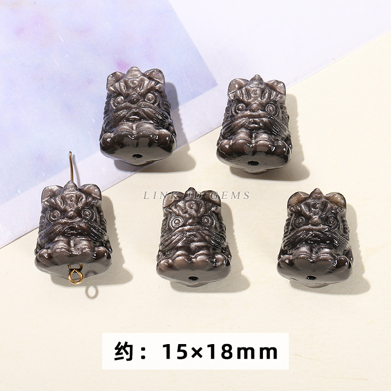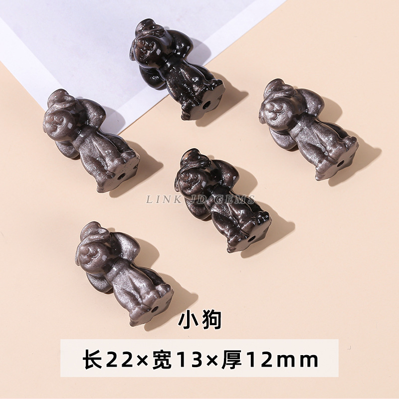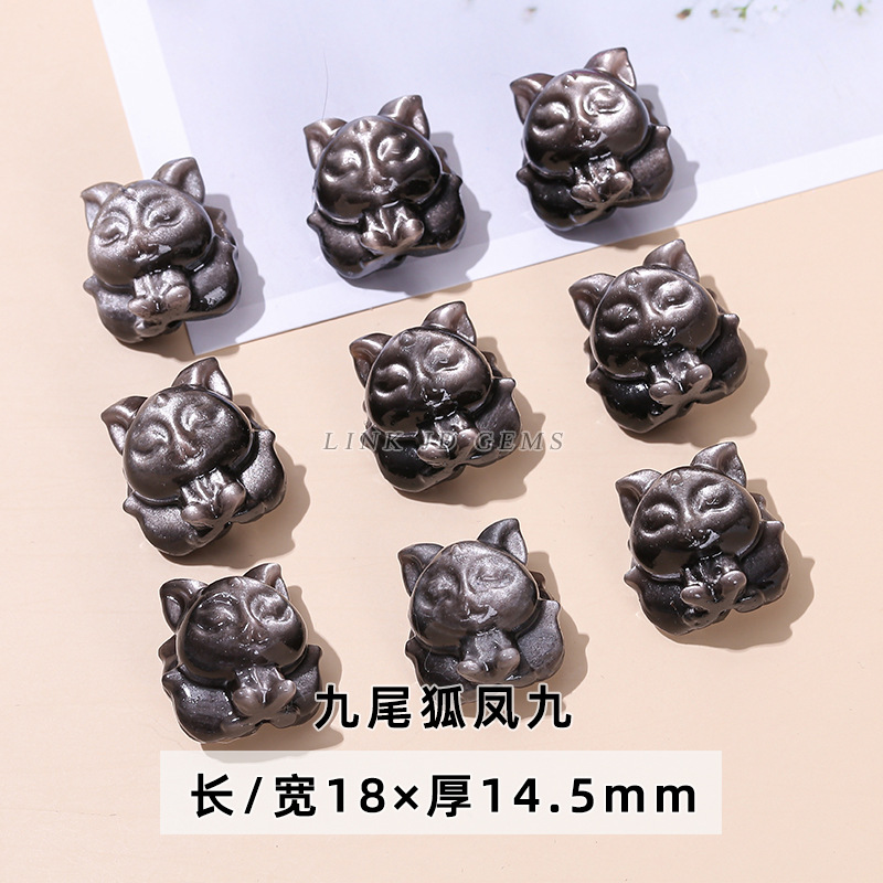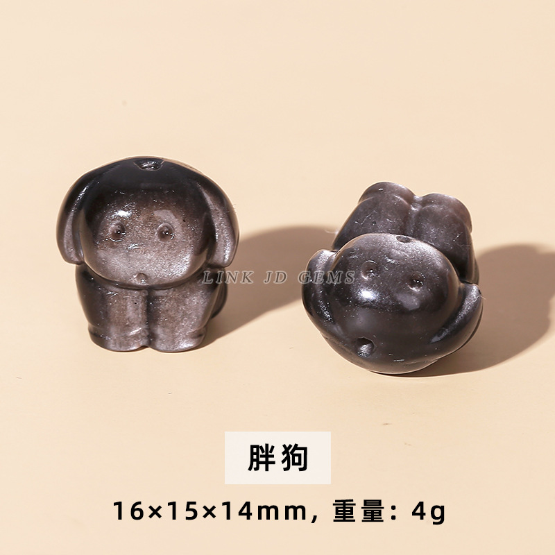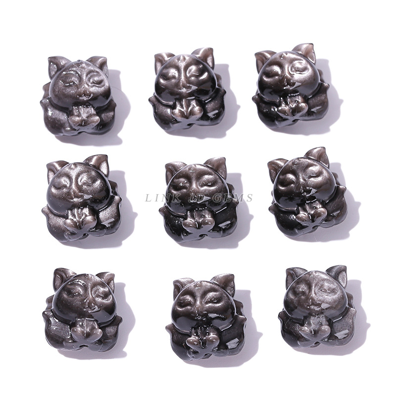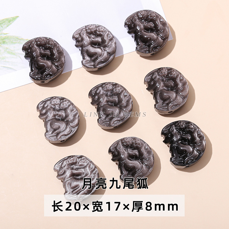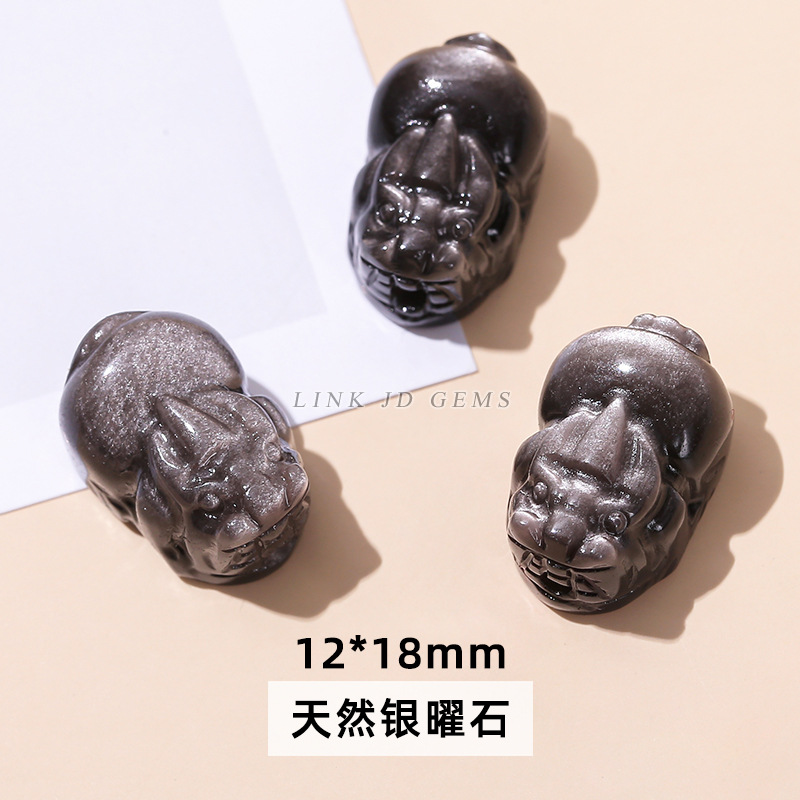 天然银曜石小雕刻件醒狮猫爪九尾狐蝴蝶配件diy饰品配饰吊坠批发