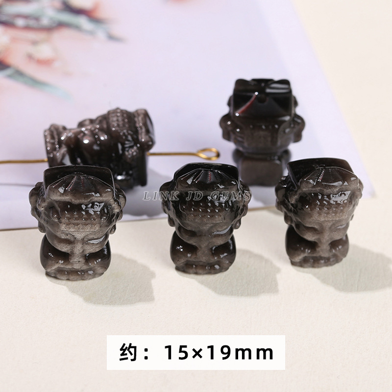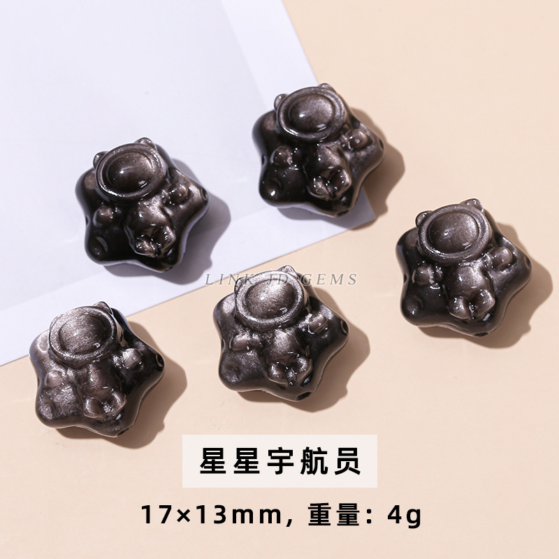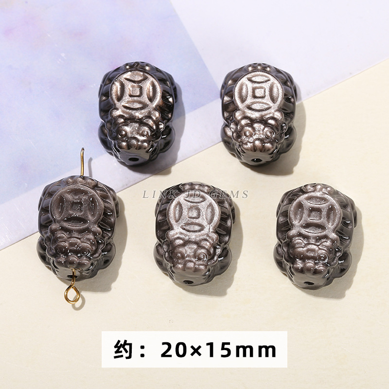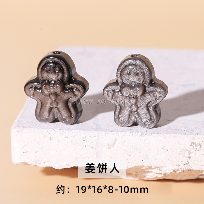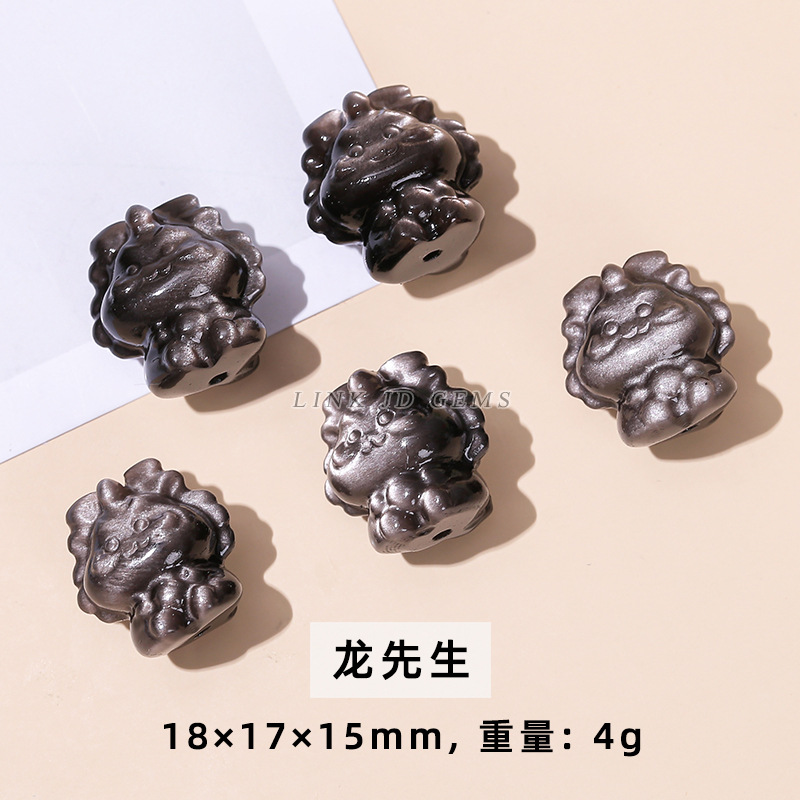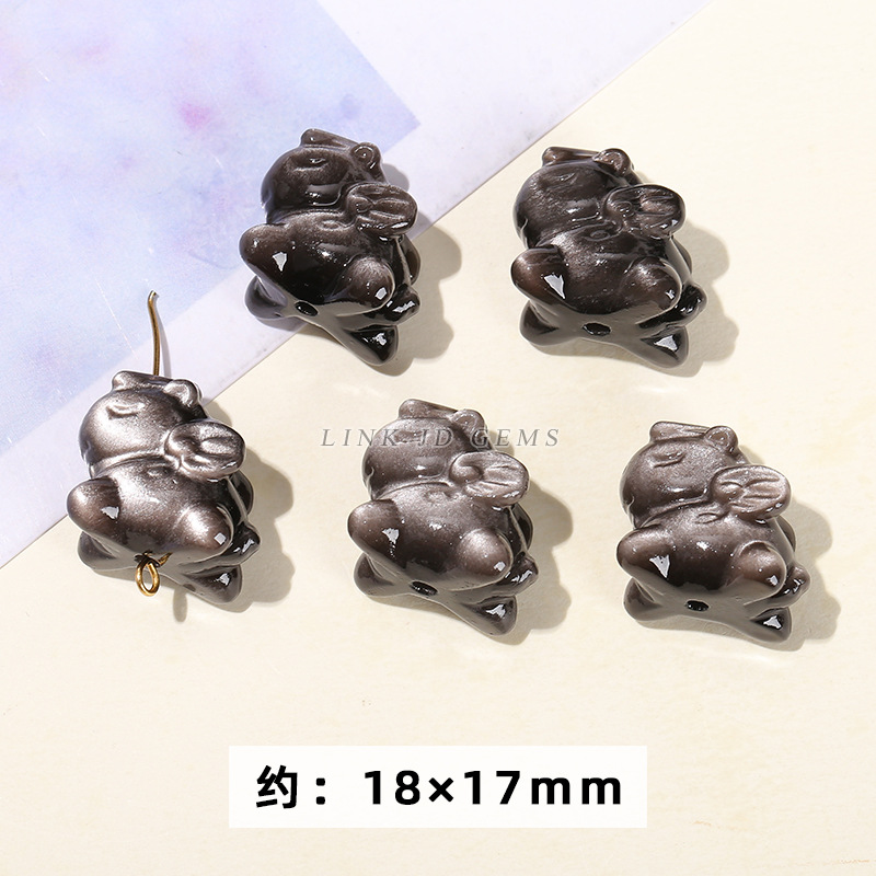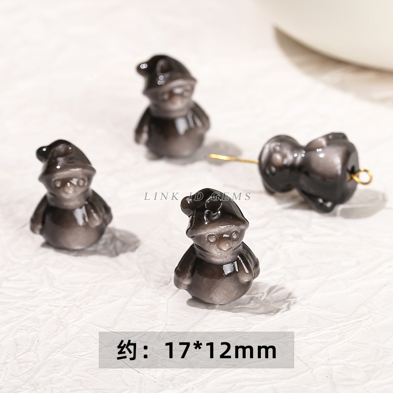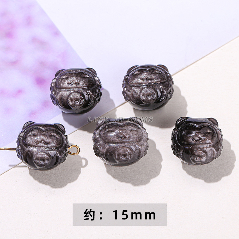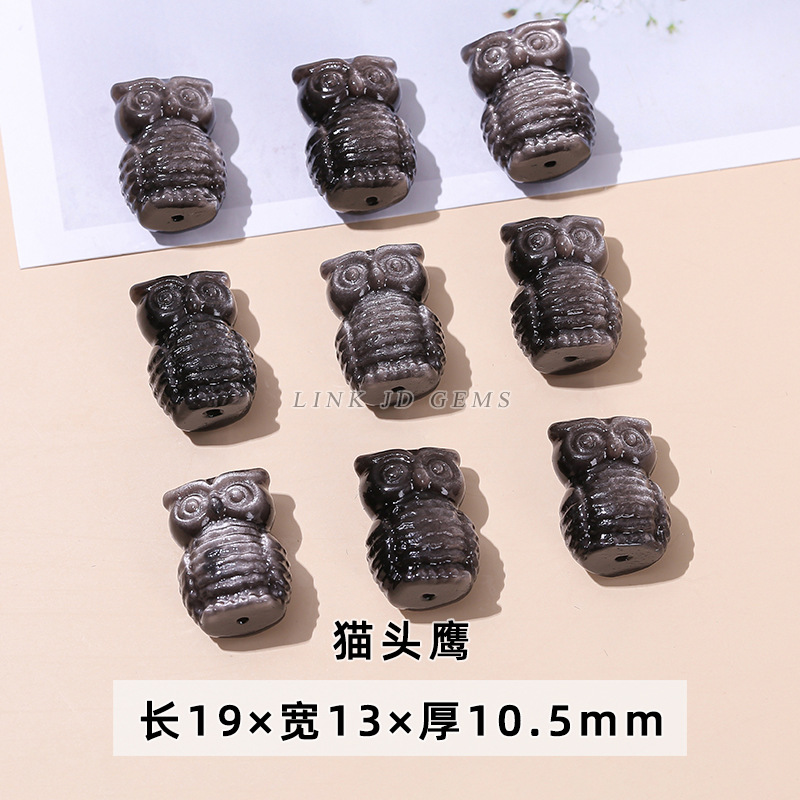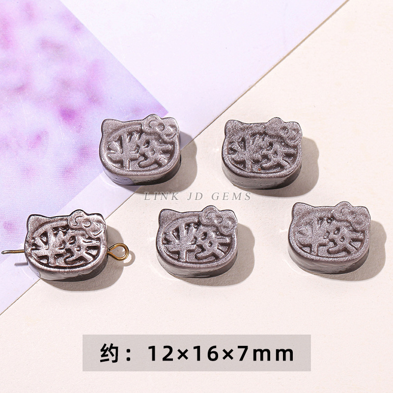 天然银曜石小雕刻件醒狮猫爪九尾狐蝴蝶配件diy饰品配饰吊坠批发