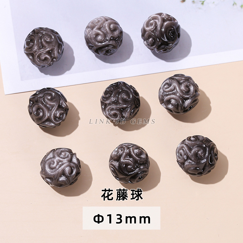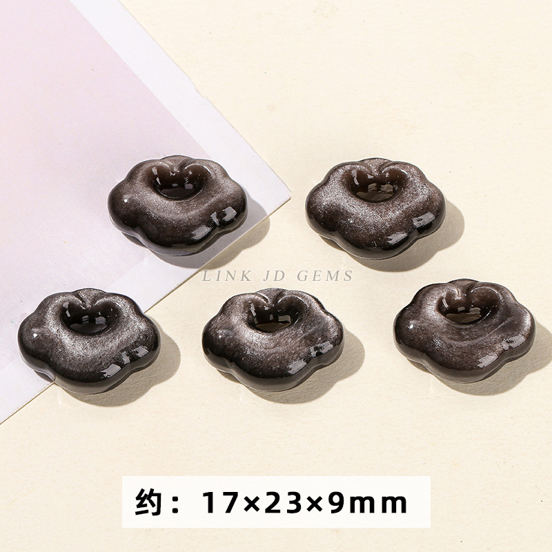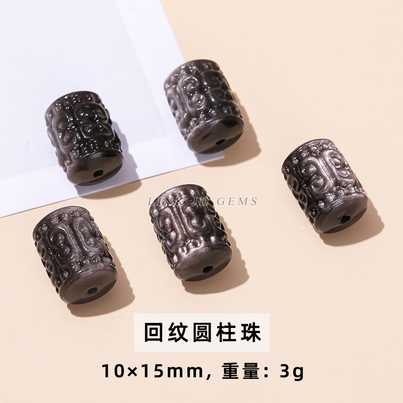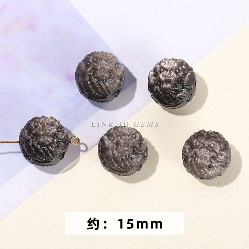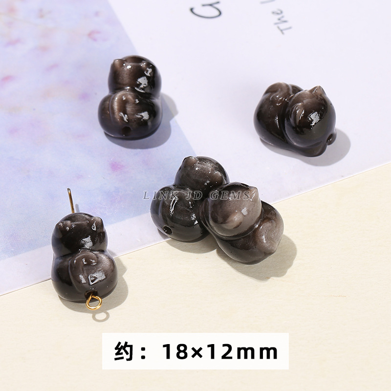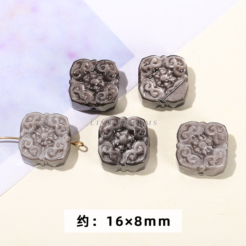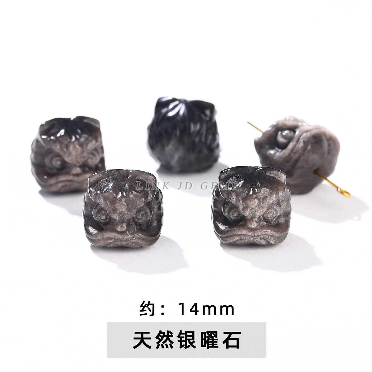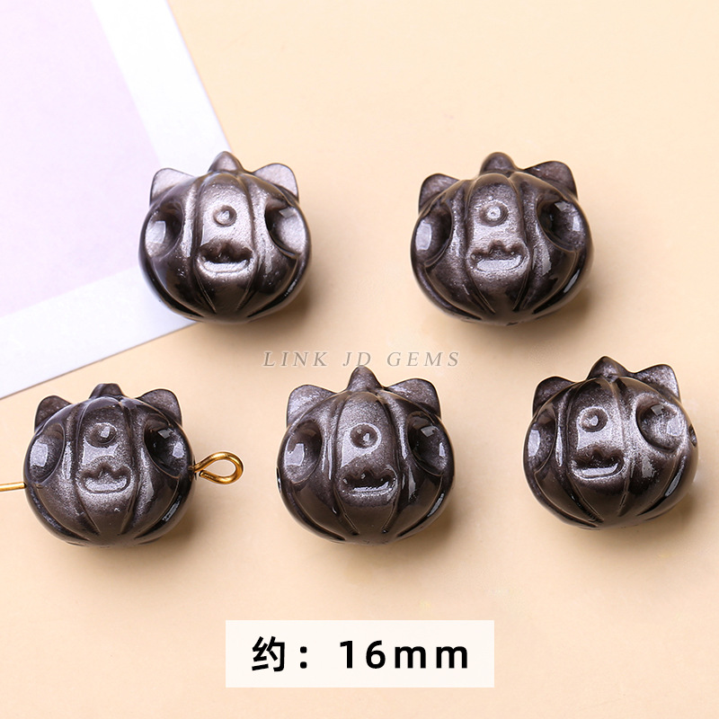 天然银曜石小雕刻件醒狮猫爪九尾狐蝴蝶配件diy饰品配饰吊坠批发
