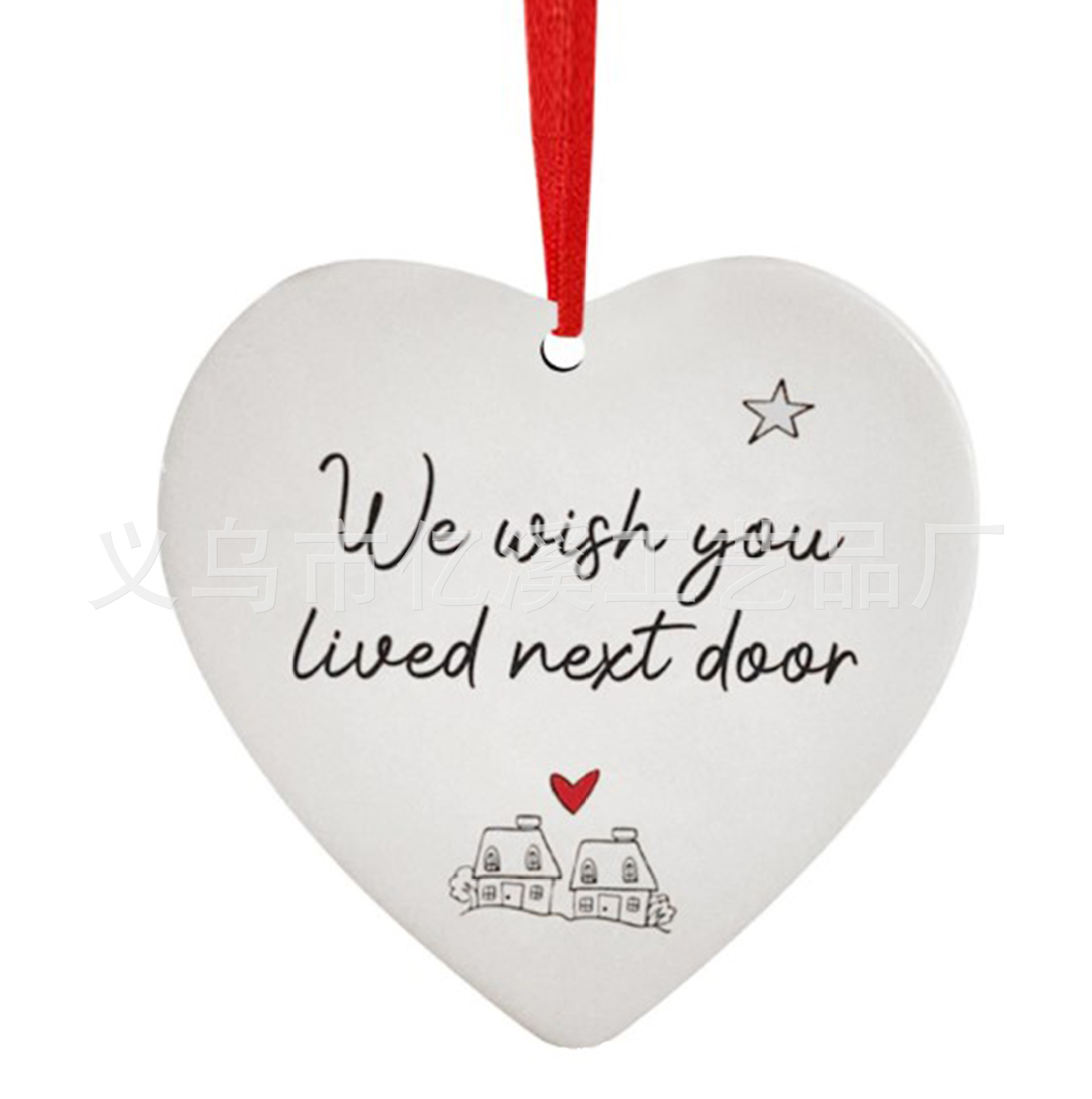 跨境新品货源陶瓷工艺品挂件爱心挂饰I Wish You Lived Next Door
