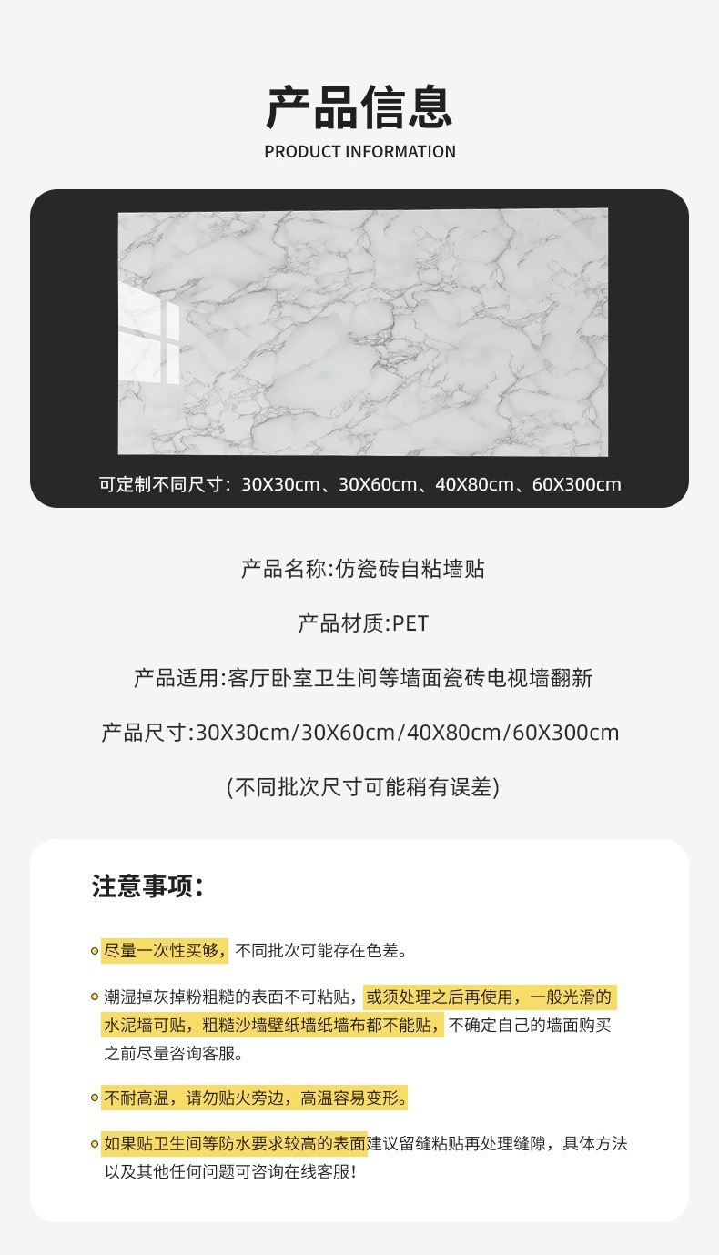 仿真瓷砖墙贴自粘装饰遮丑防水防潮自粘墙纸客厅厨房卫生间自装贴