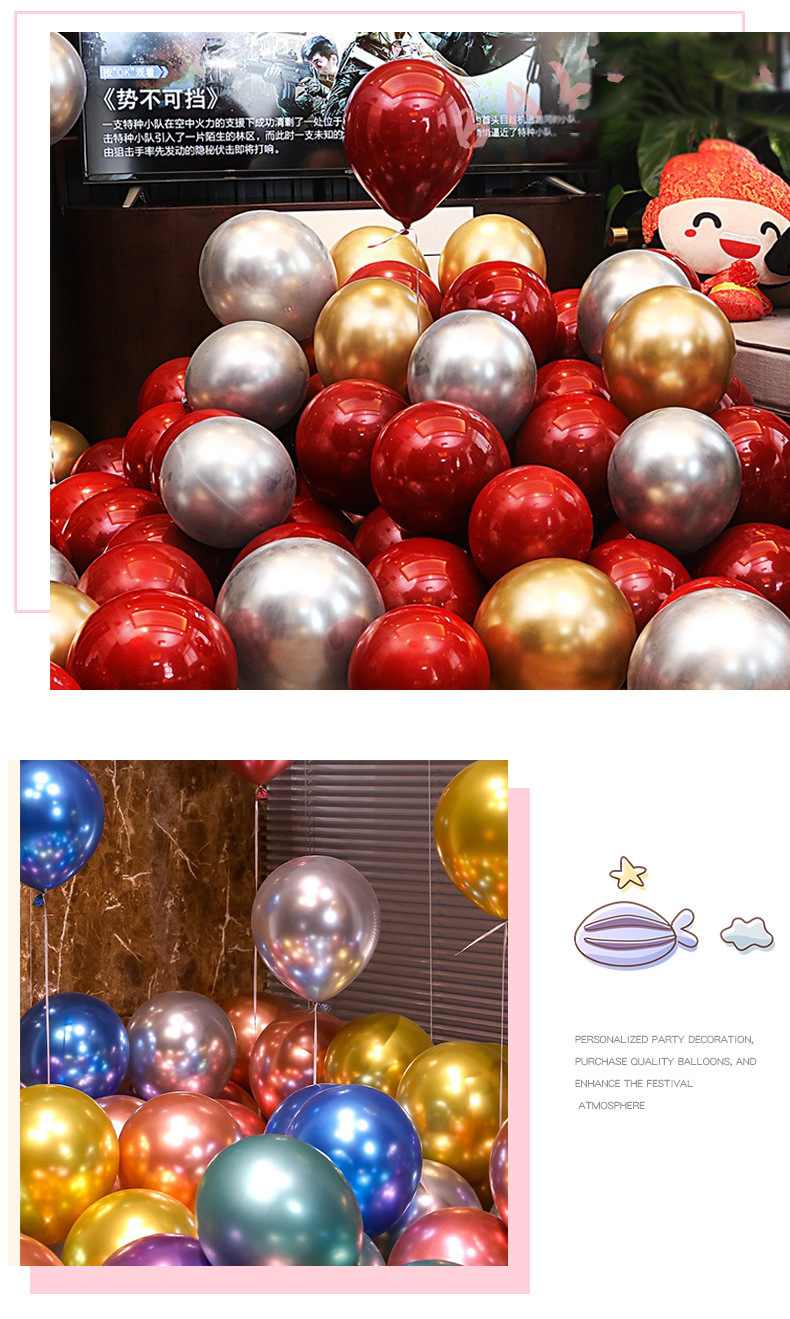 10寸金属气球生日派对婚庆装饰气球加厚乳胶新年气球金属色气球