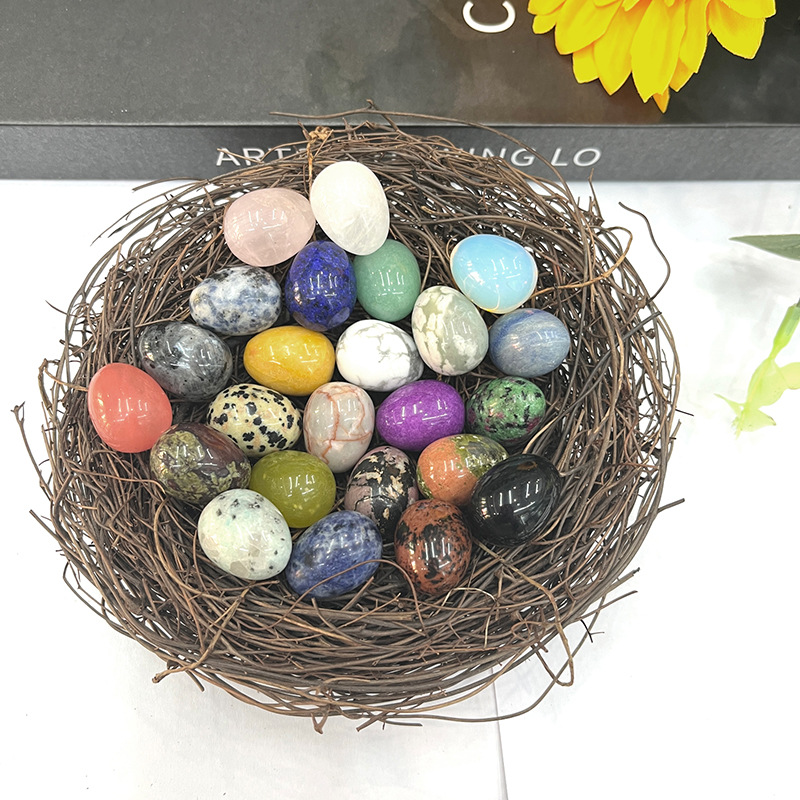 跨境天然水晶迷你2cm鸟蛋摆件 玛瑙玉石淘矿鸡蛋 复活节彩蛋装饰