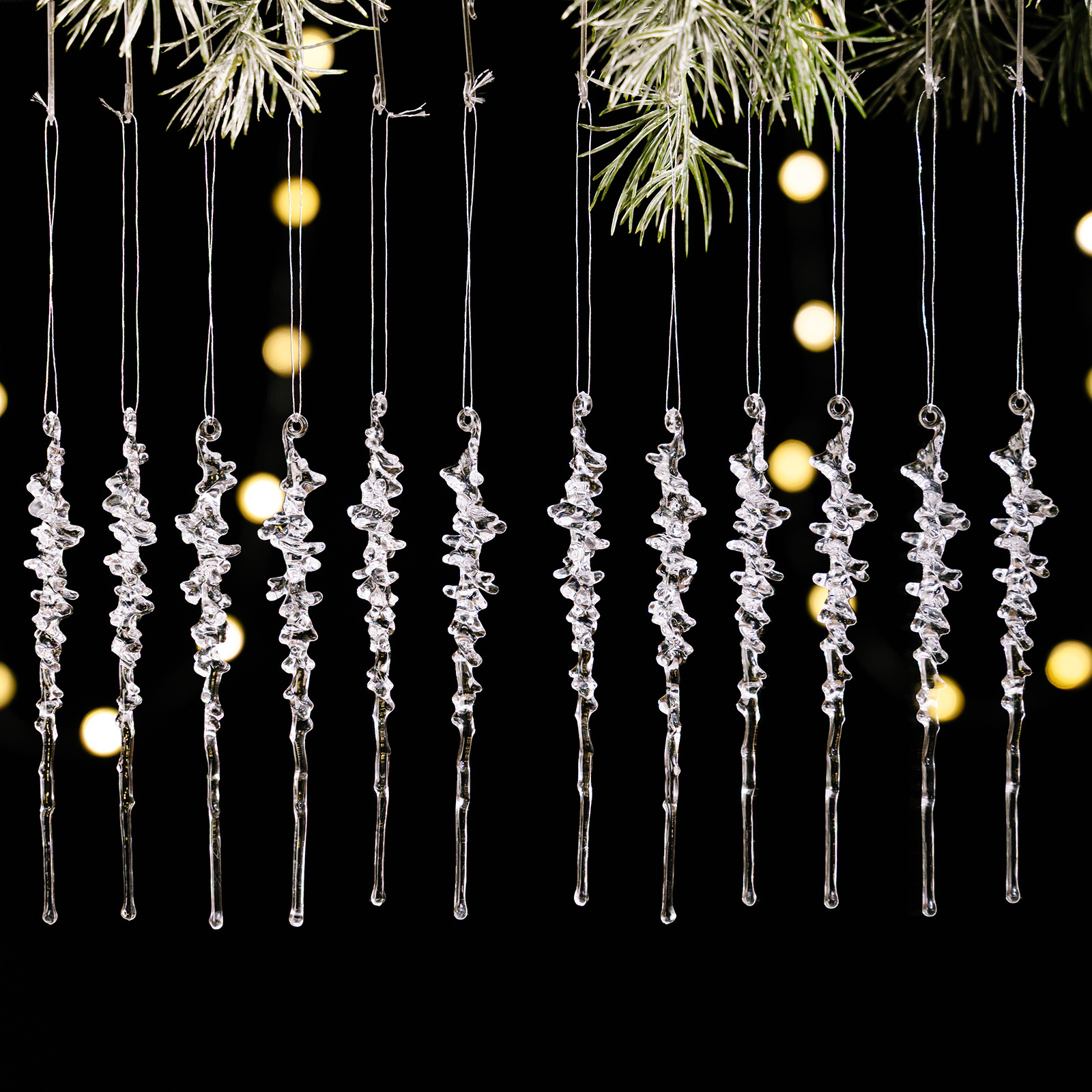 豪贝 新款冰凌挂件12PCS 圣诞节装饰亚克力仿真冰条挂饰气氛布置