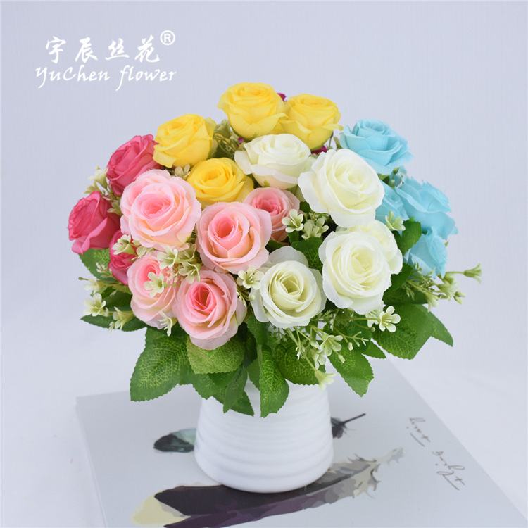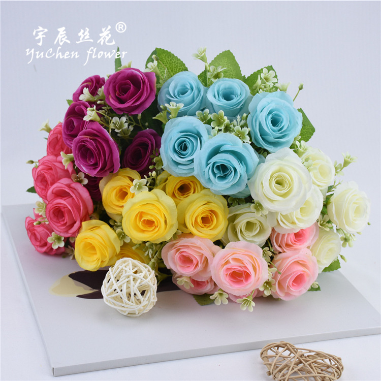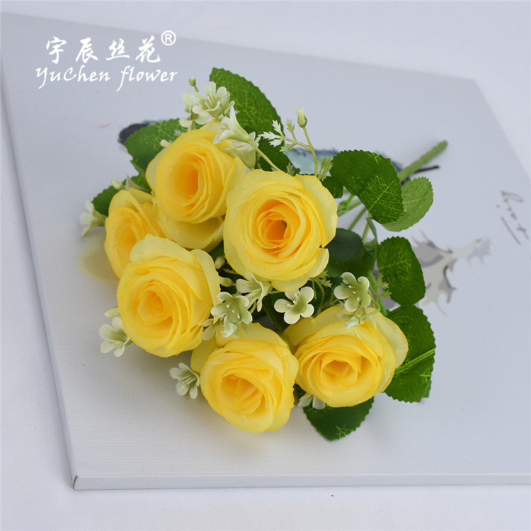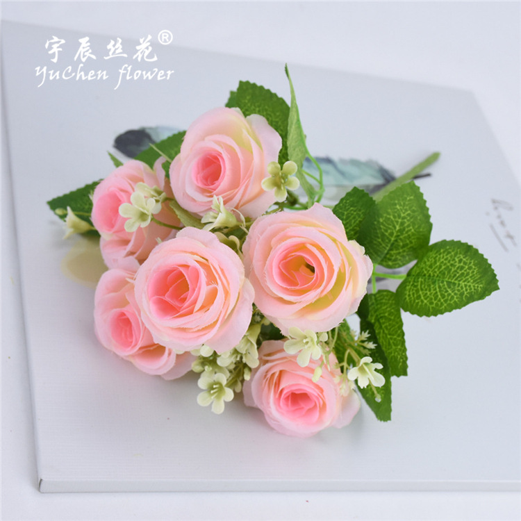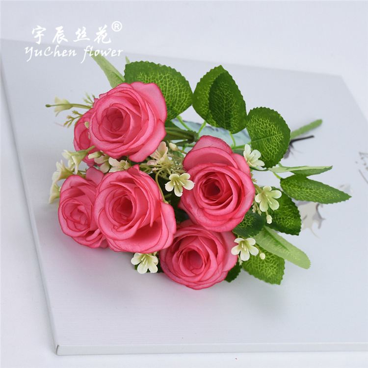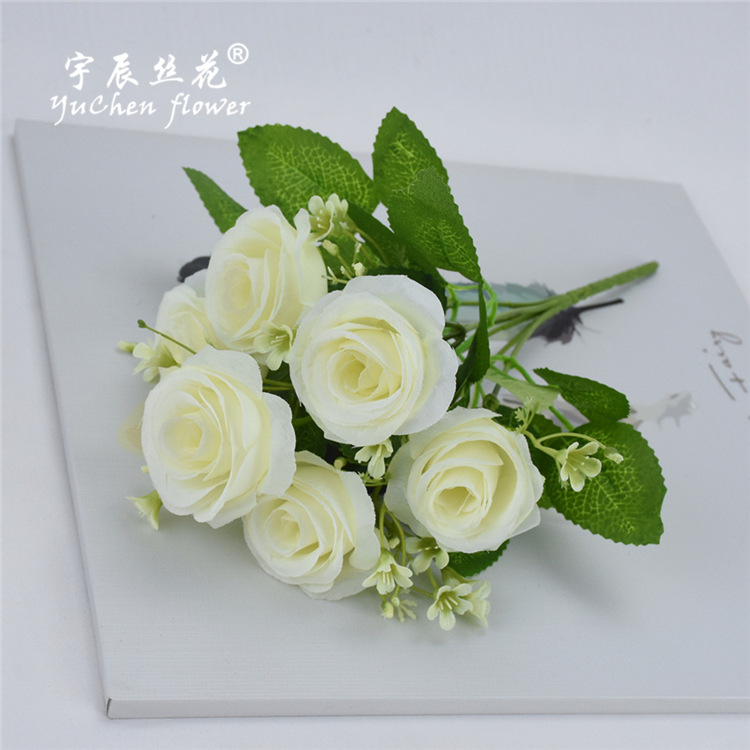 6头君子玫瑰仿真花婚庆节日用品娟布假花家居装饰植物工艺装饰品