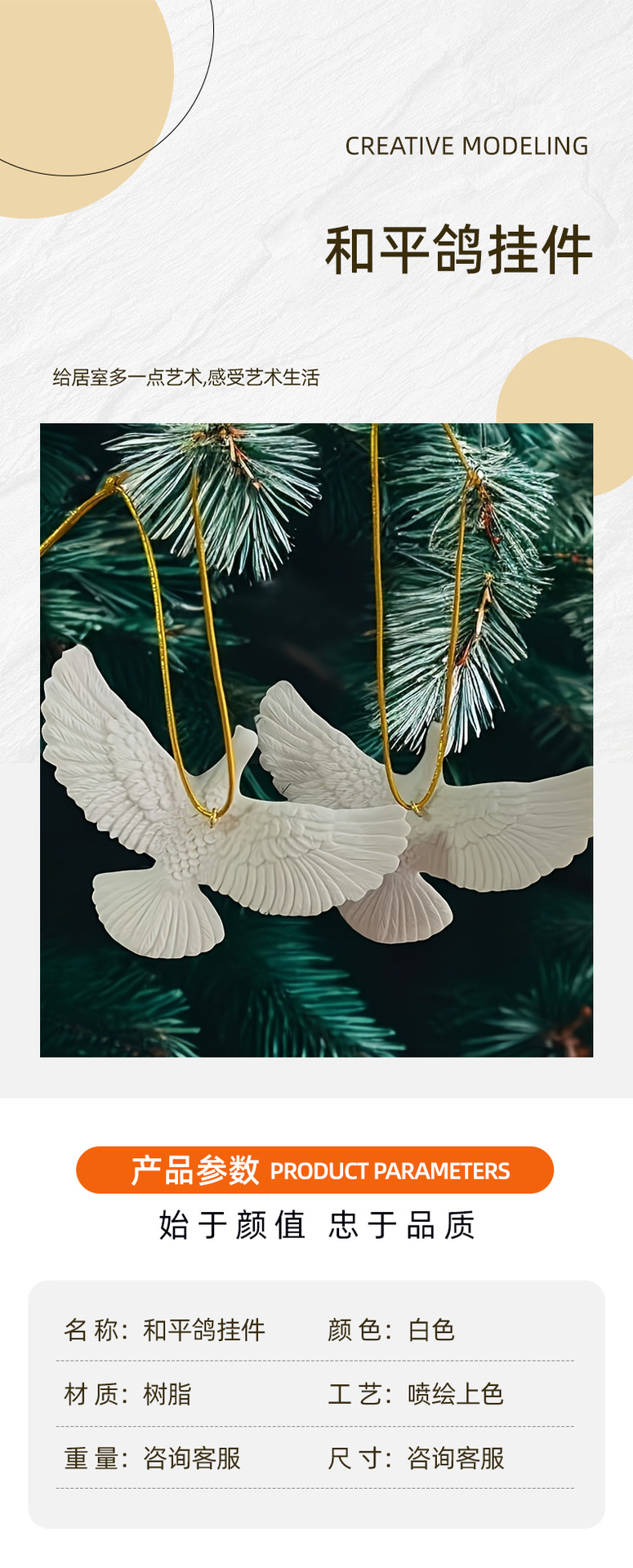 跨境热销鸽子雕像吊饰创意家居节日树脂挂件户外庭院和平鸽装饰品