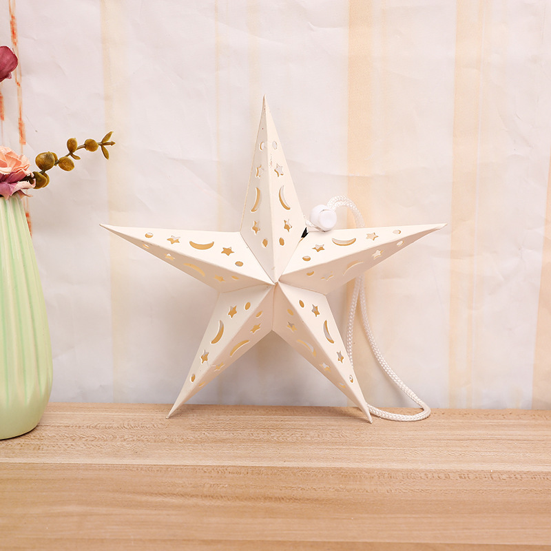 新款圣诞节装饰品20cm印刷五角星 商场橱窗装饰纸质五角星挂件