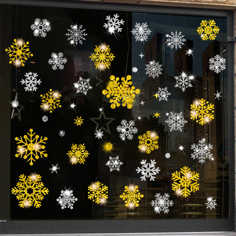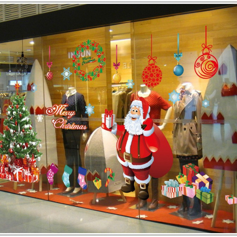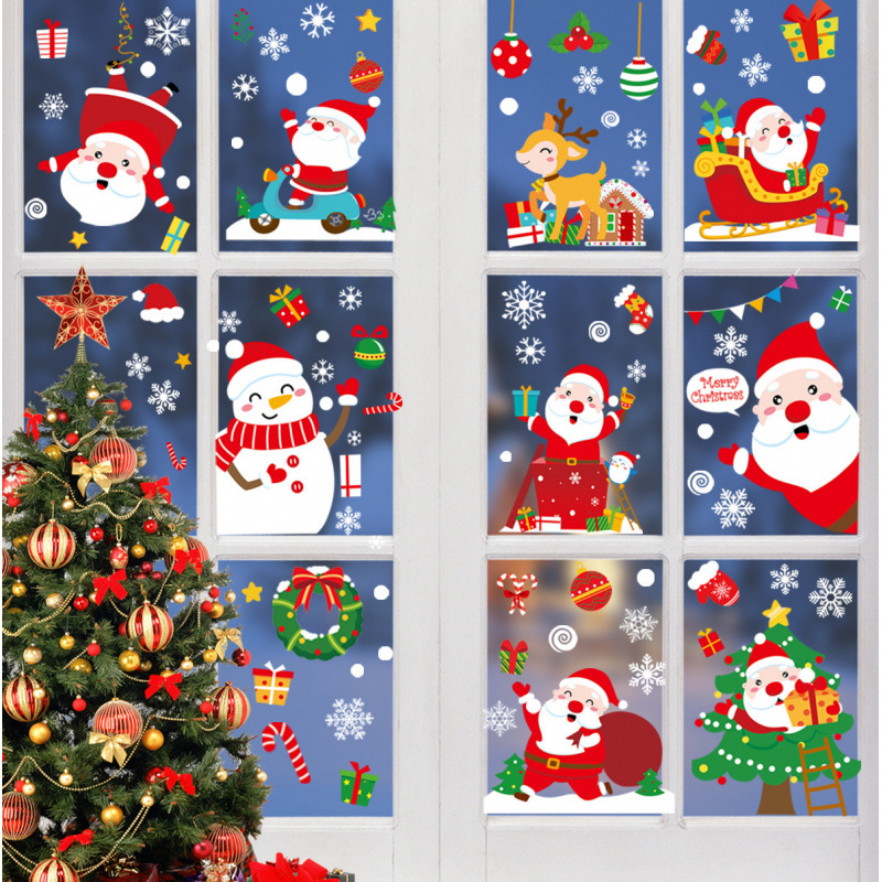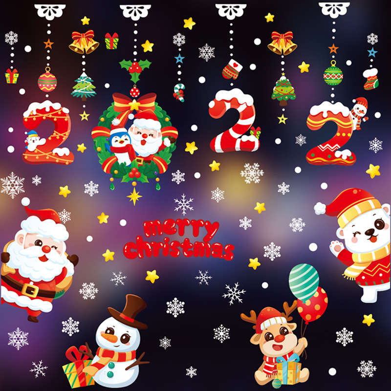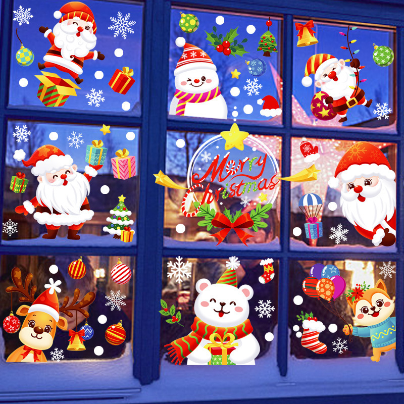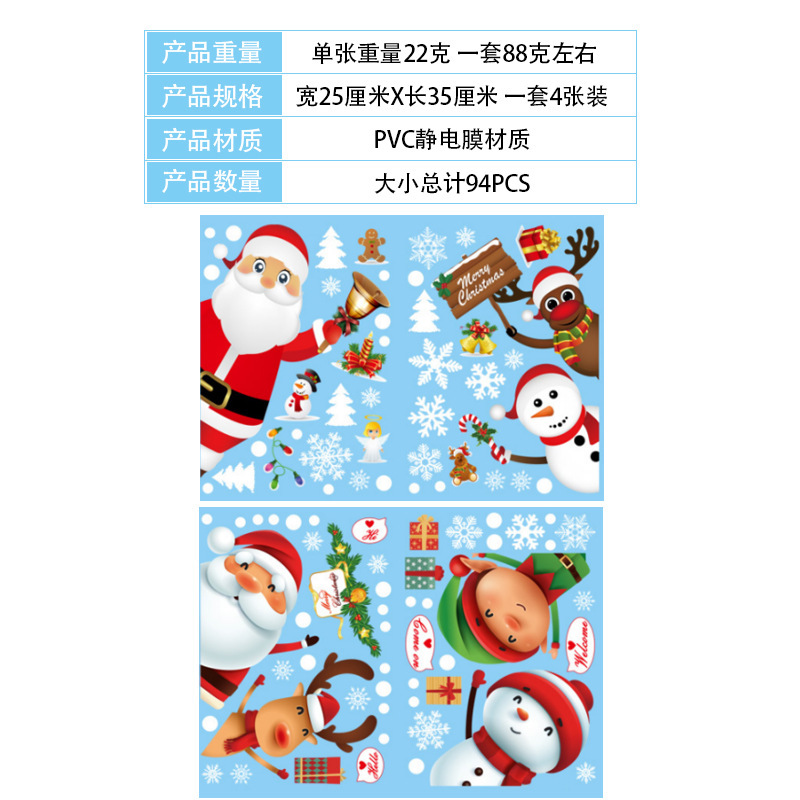 圣诞窗贴2025年新款静电橱窗玻璃贴画墙贴雪花老人可爱圣诞节贴纸