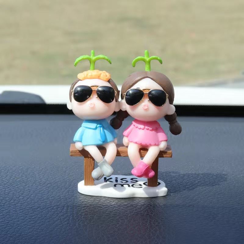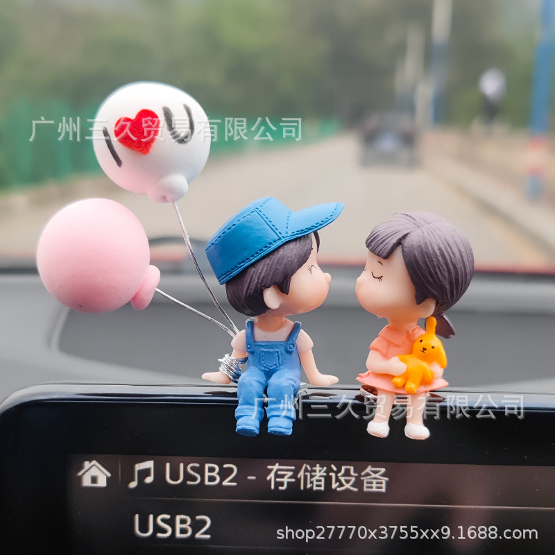 汽车仪表台摆件车载车内情侣可爱卡通摆件情侣蛋糕创意办工桌摆设