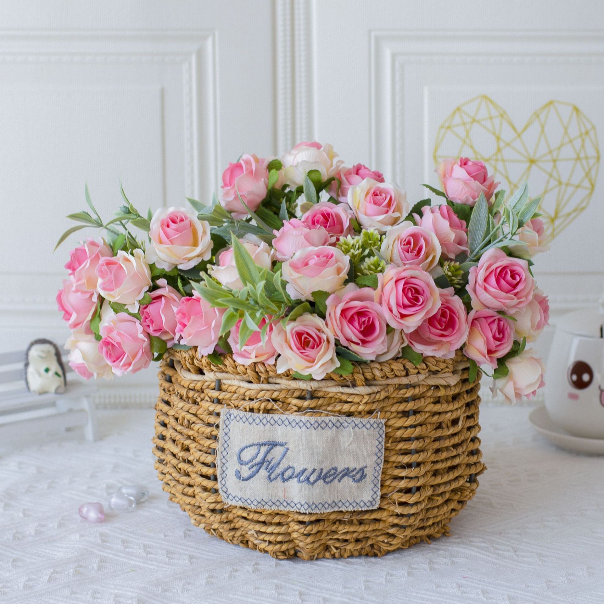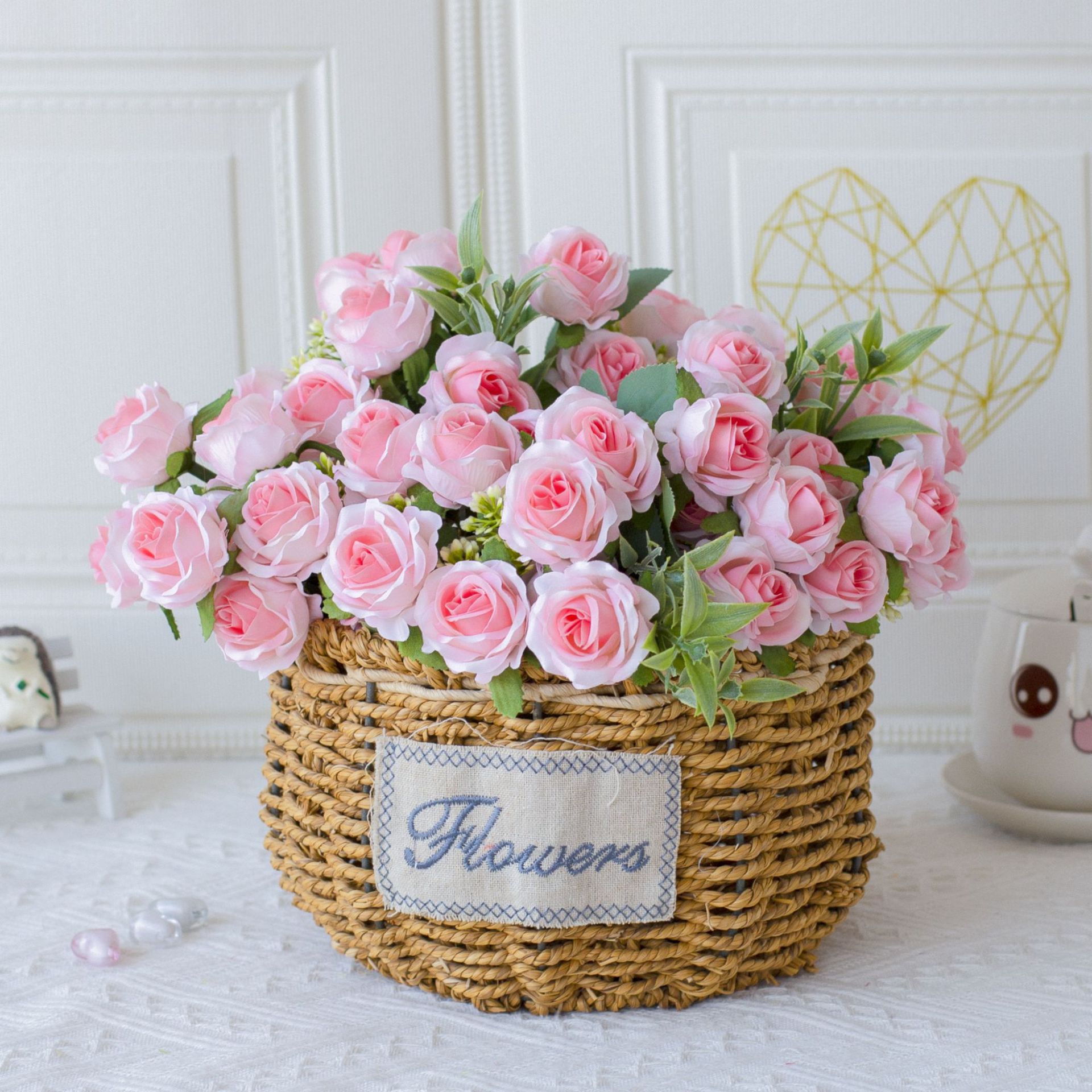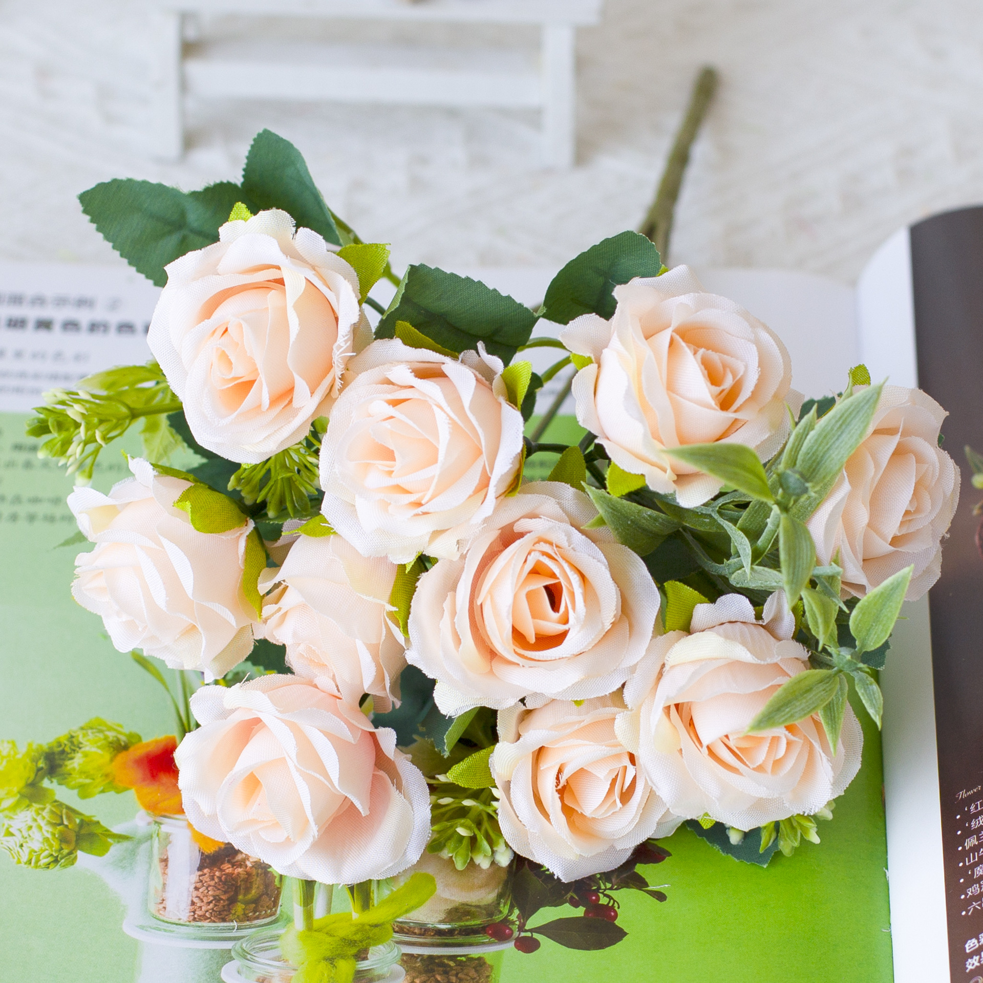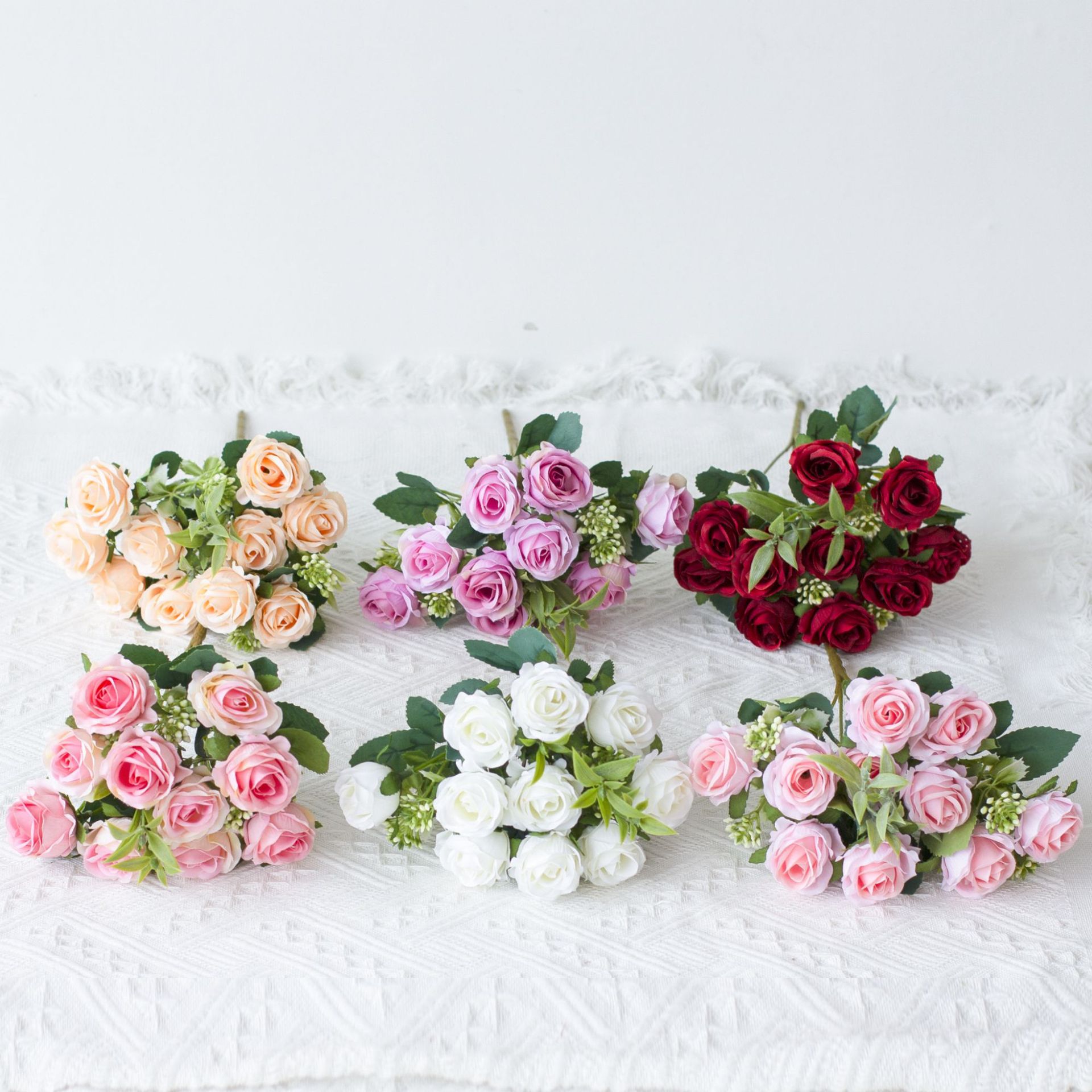 10头小玫瑰花束新娘手捧花 家居客厅餐桌装饰绢花 塑料花户小玫瑰