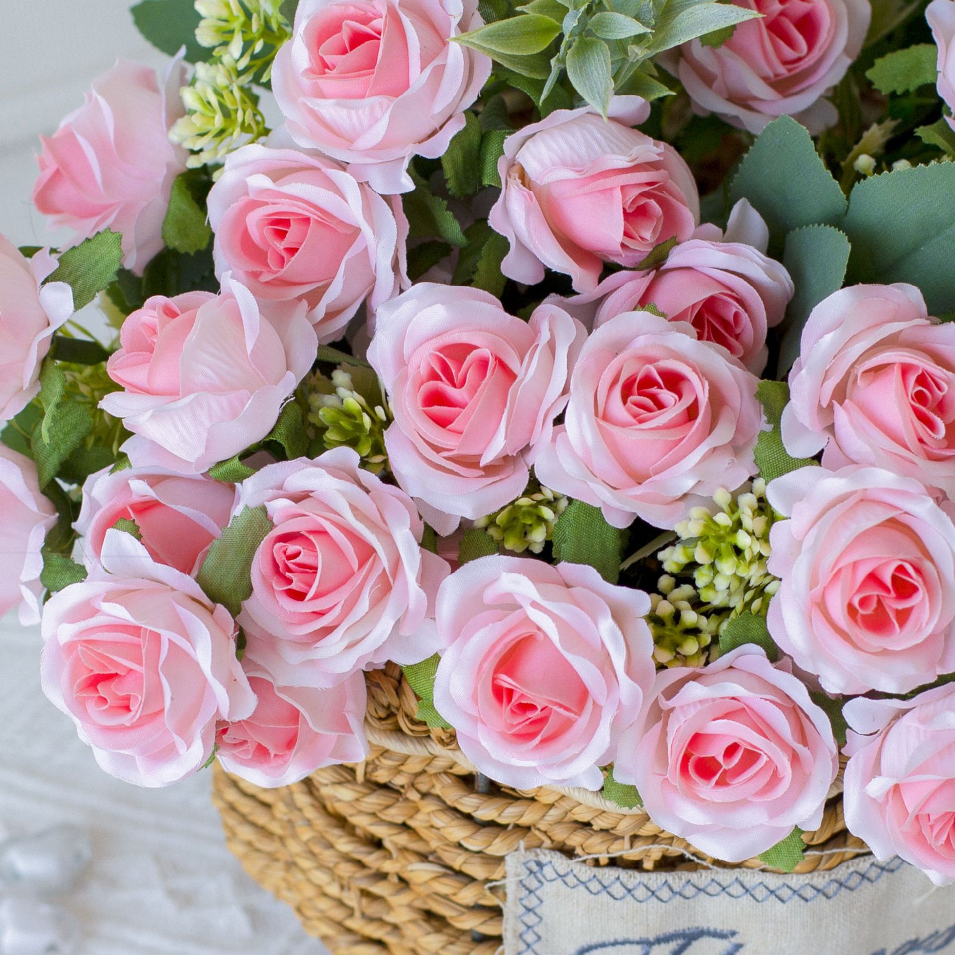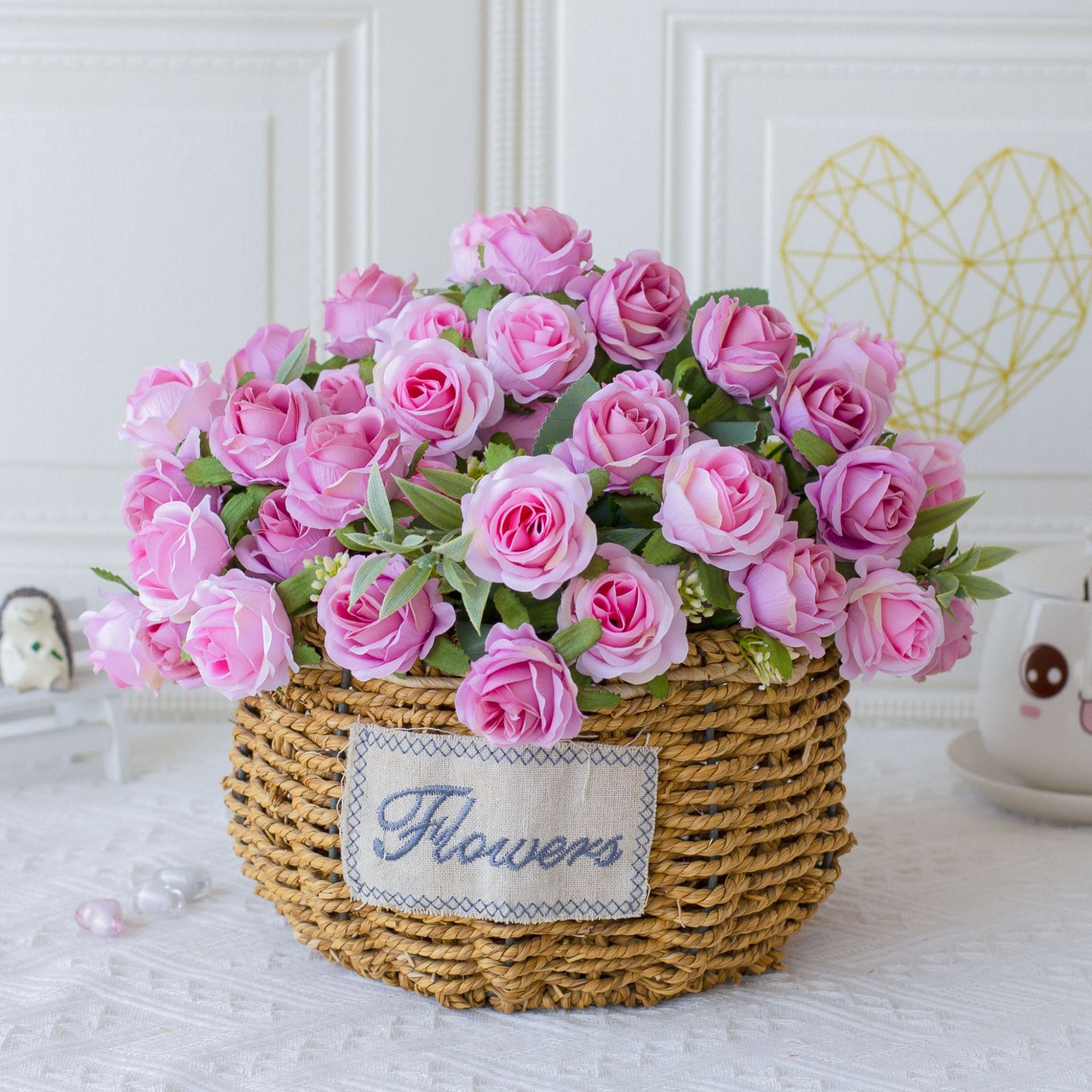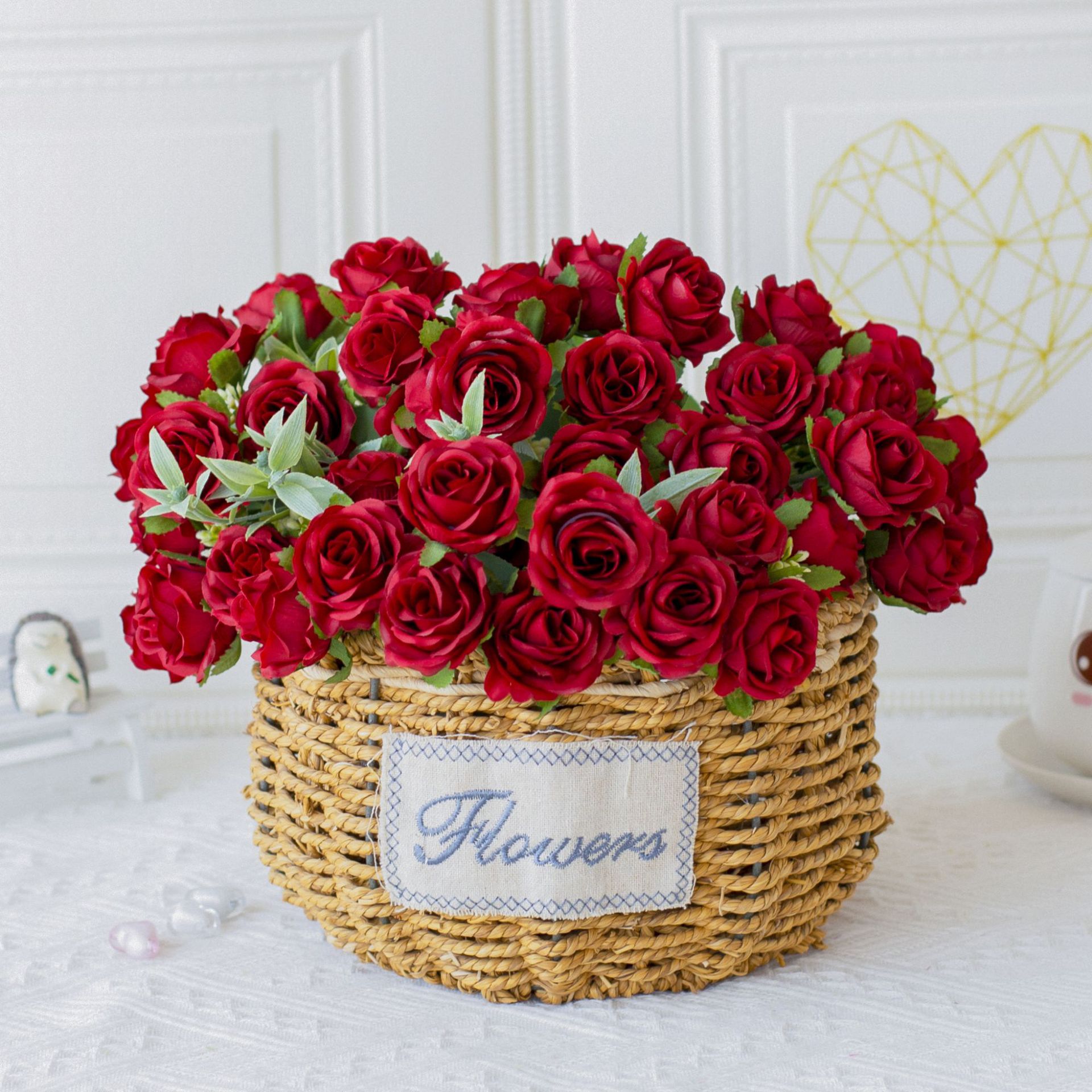 10头小玫瑰花束新娘手捧花 家居客厅餐桌装饰绢花 塑料花户小玫瑰