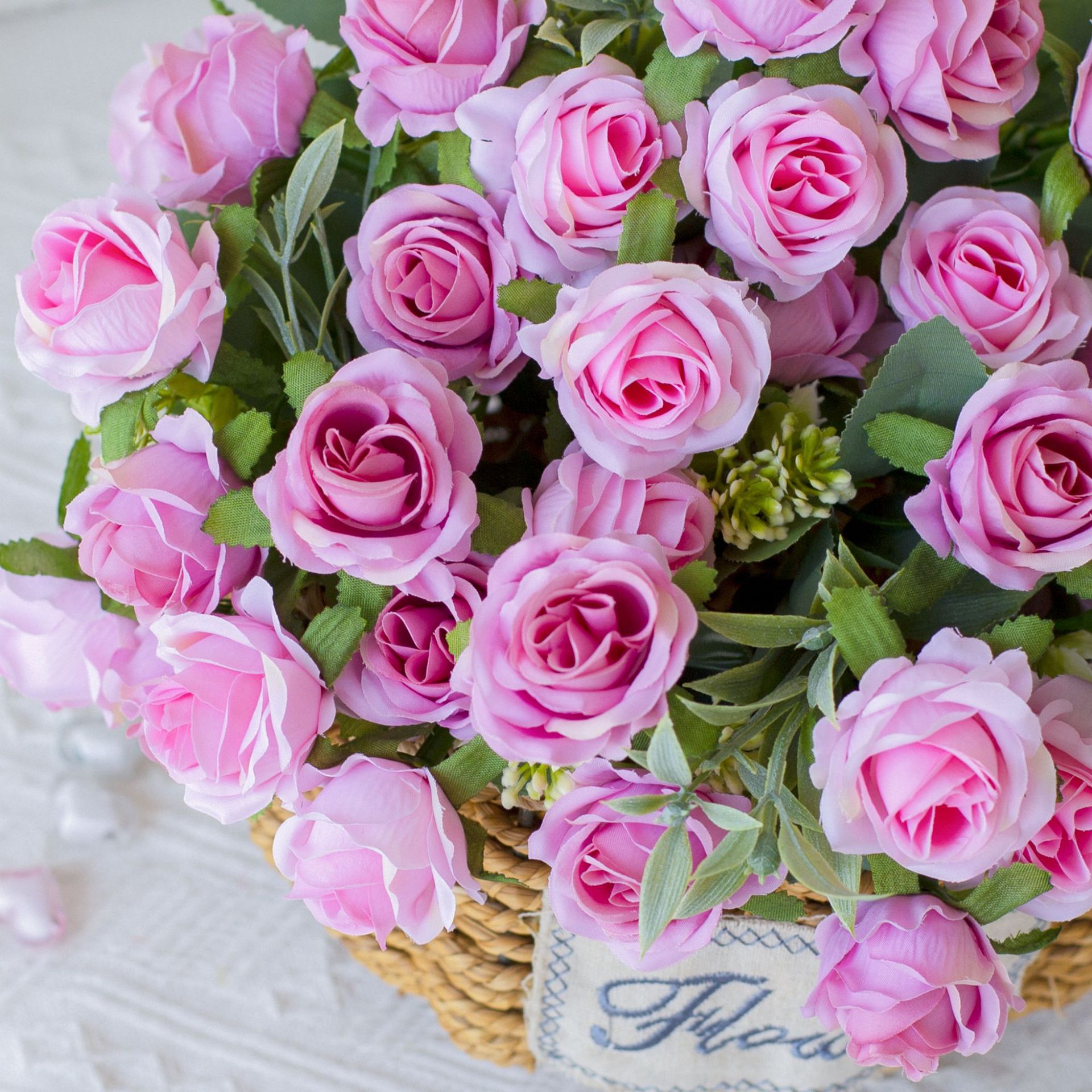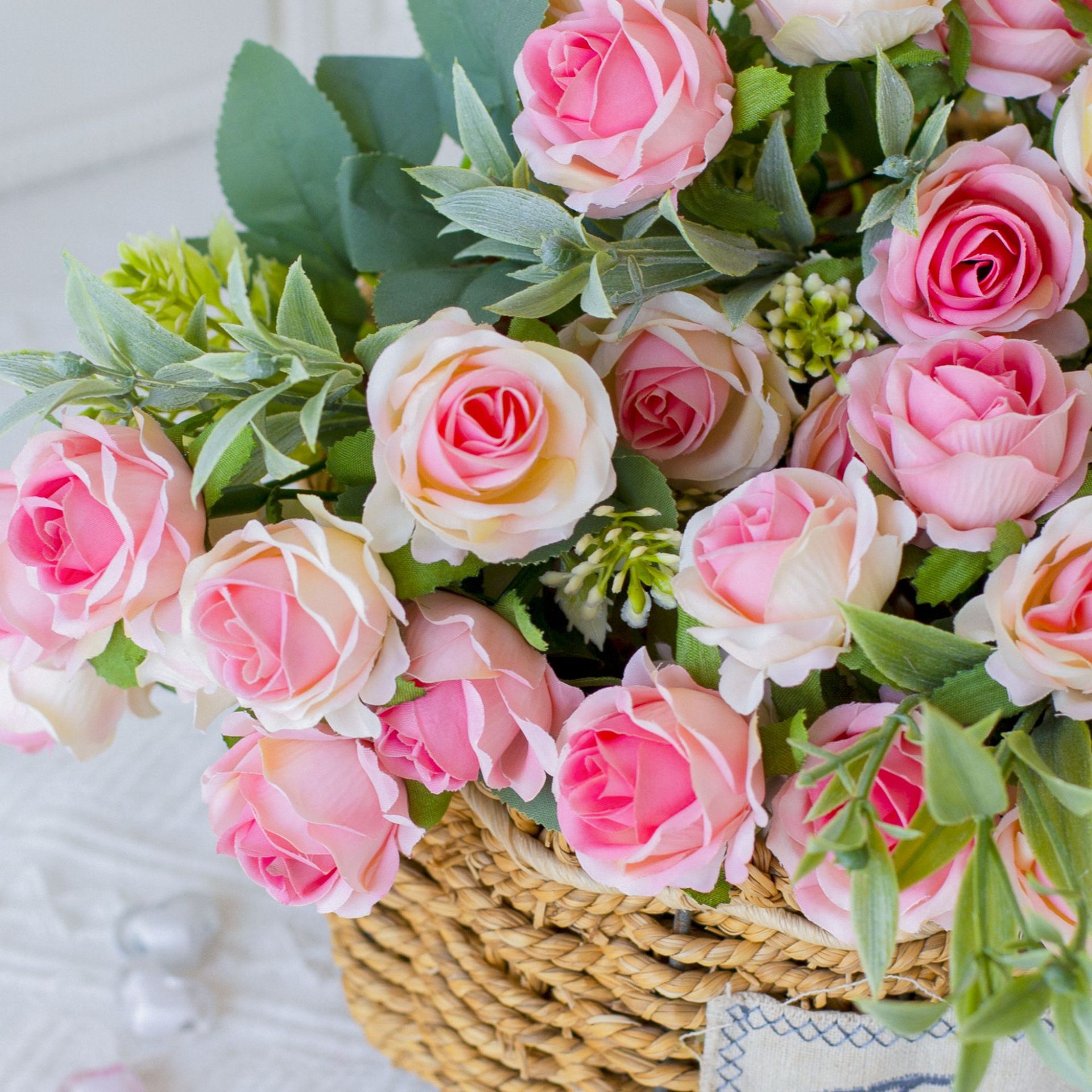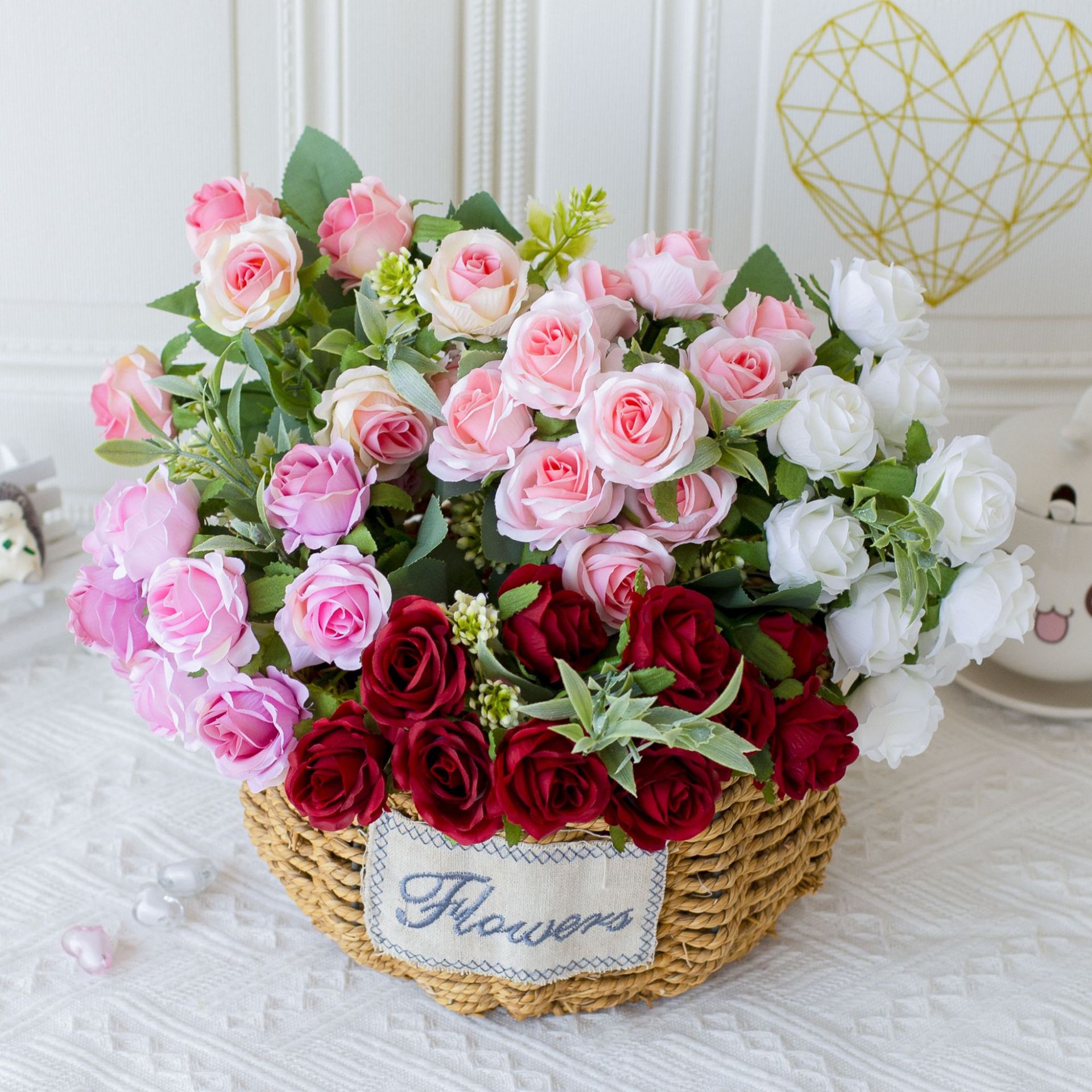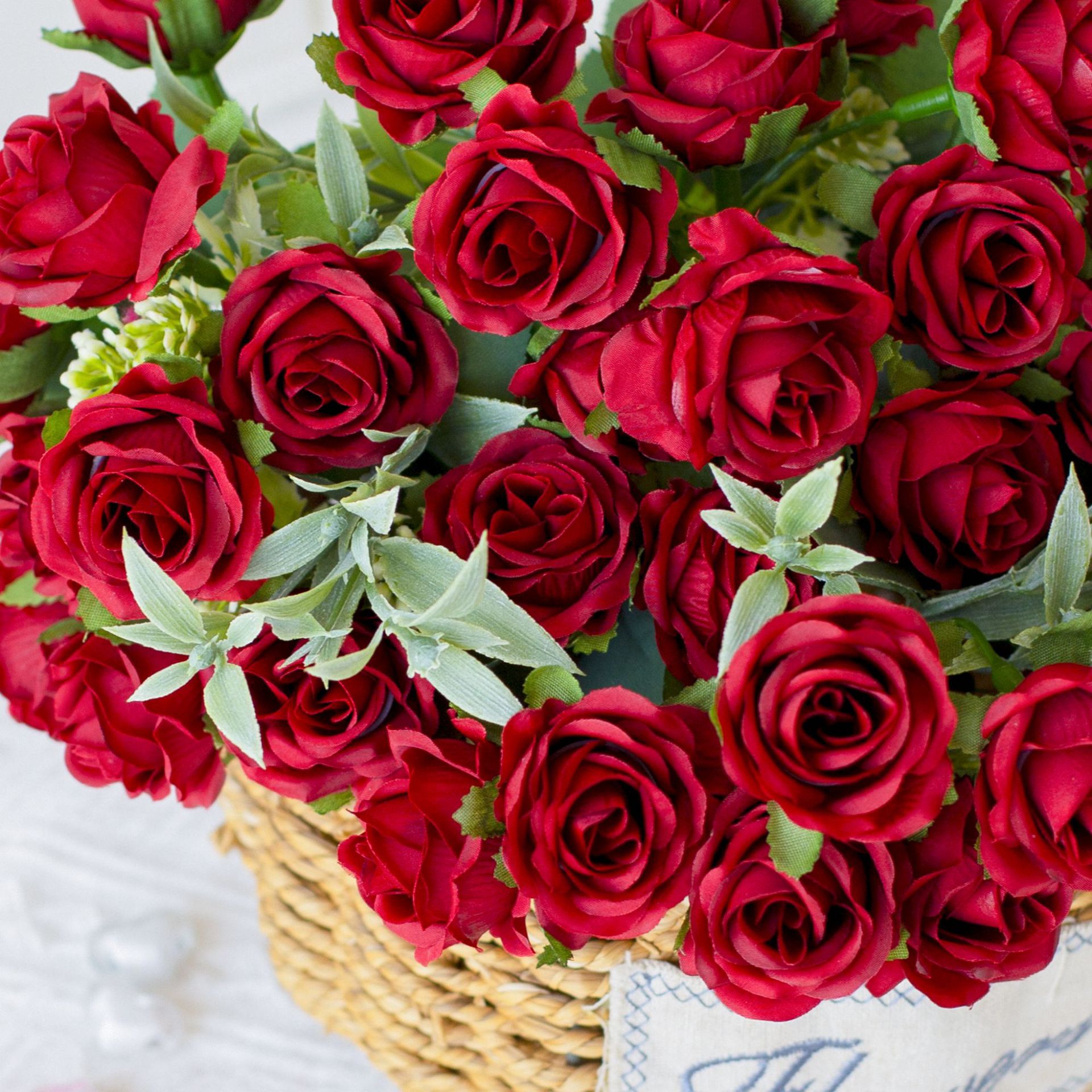10头小玫瑰花束新娘手捧花 家居客厅餐桌装饰绢花 塑料花户小玫瑰