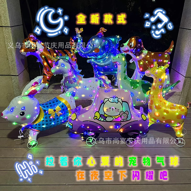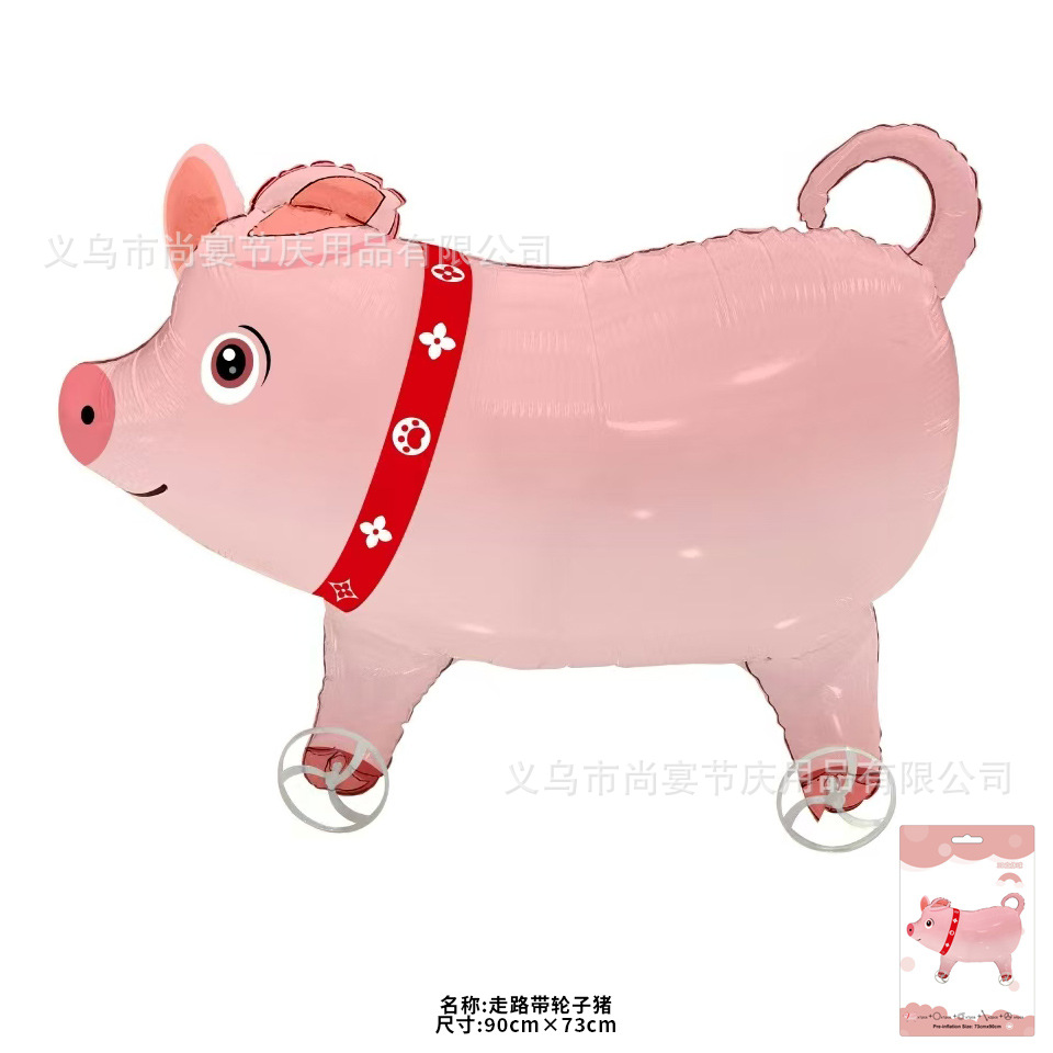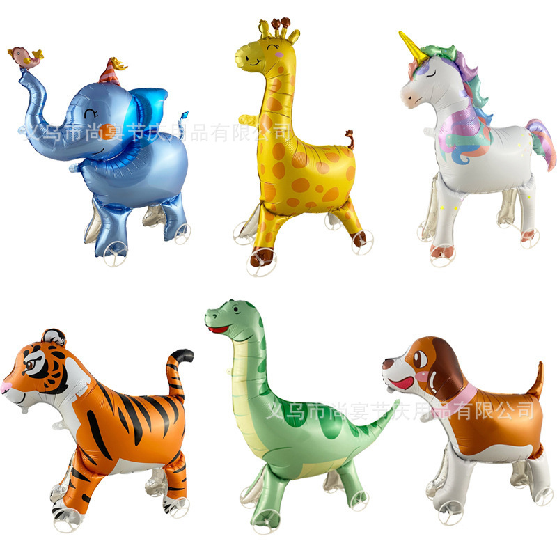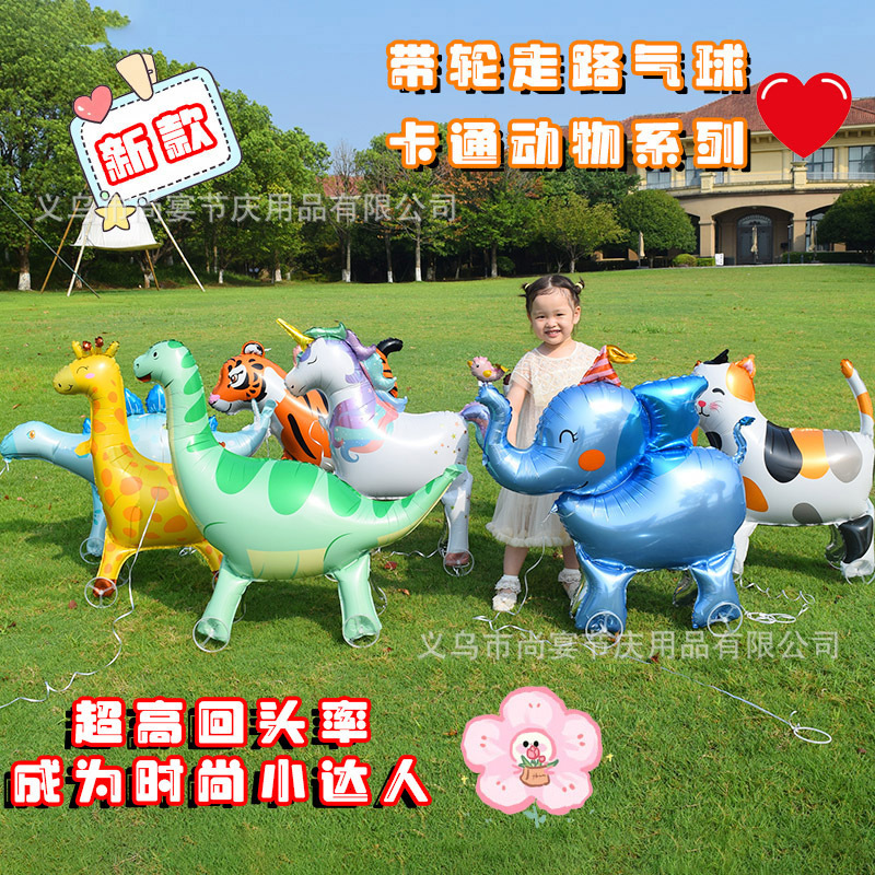 新款儿童宝宝生日带轮卡通走路动物气球装饰场景布置网红摆摊商品